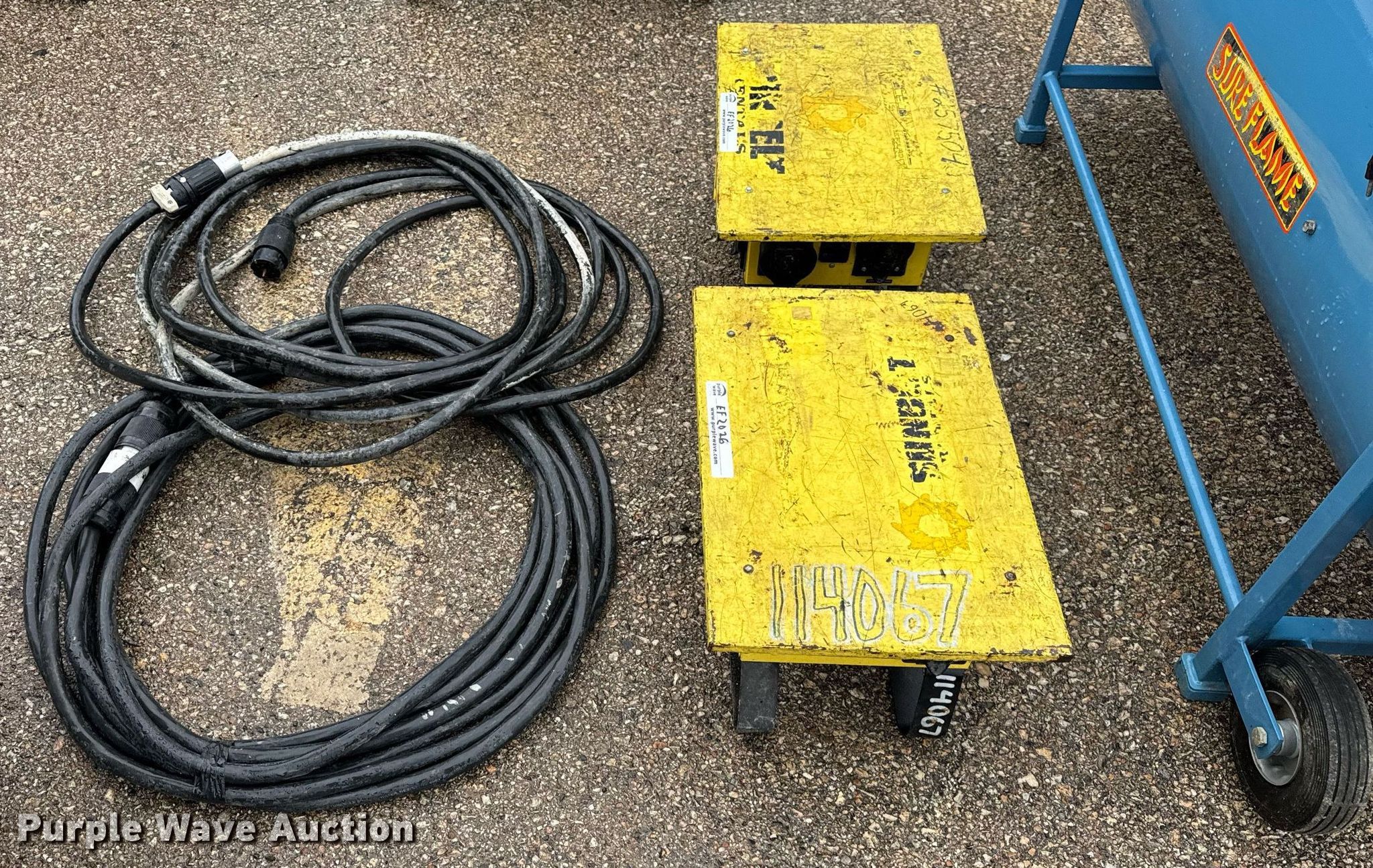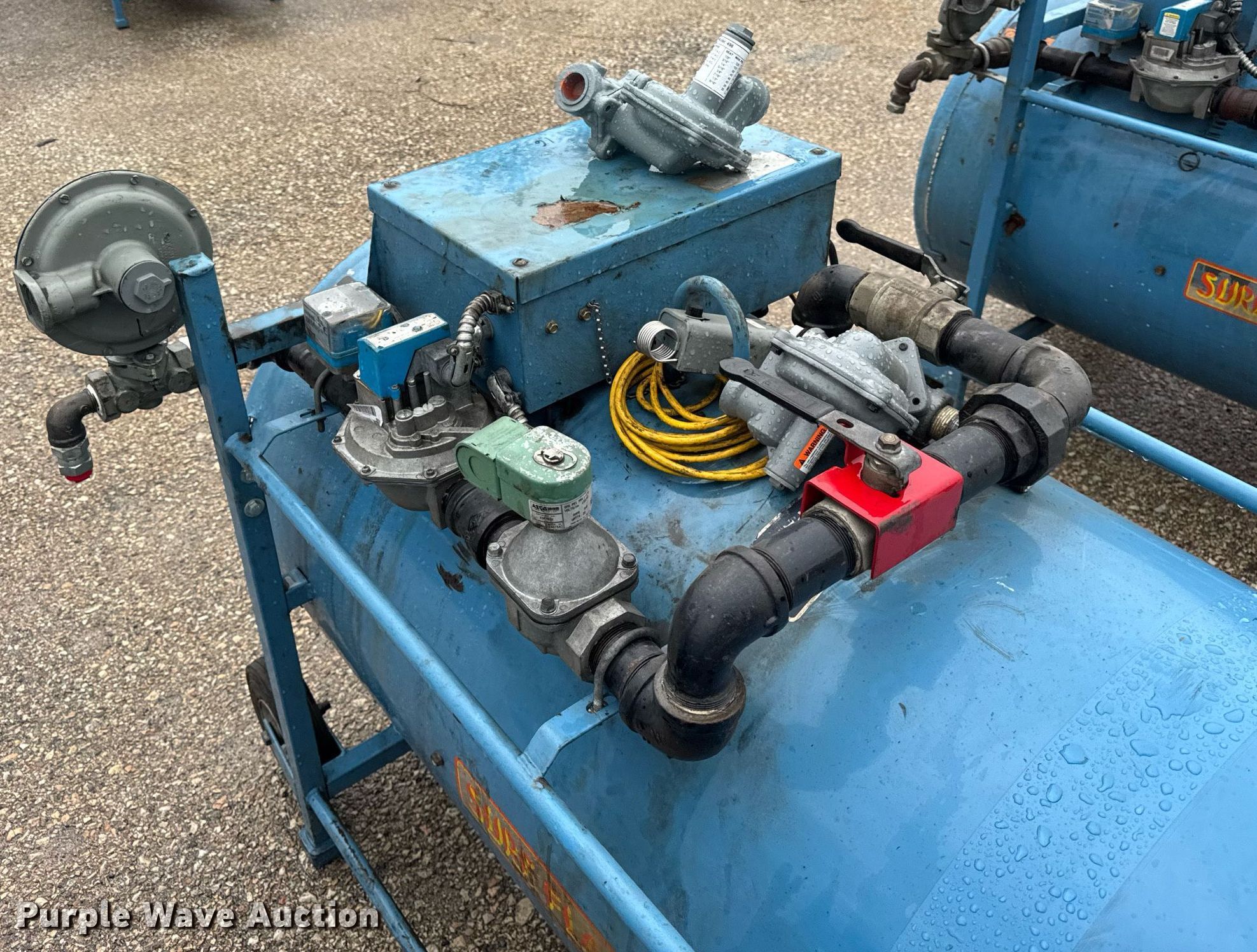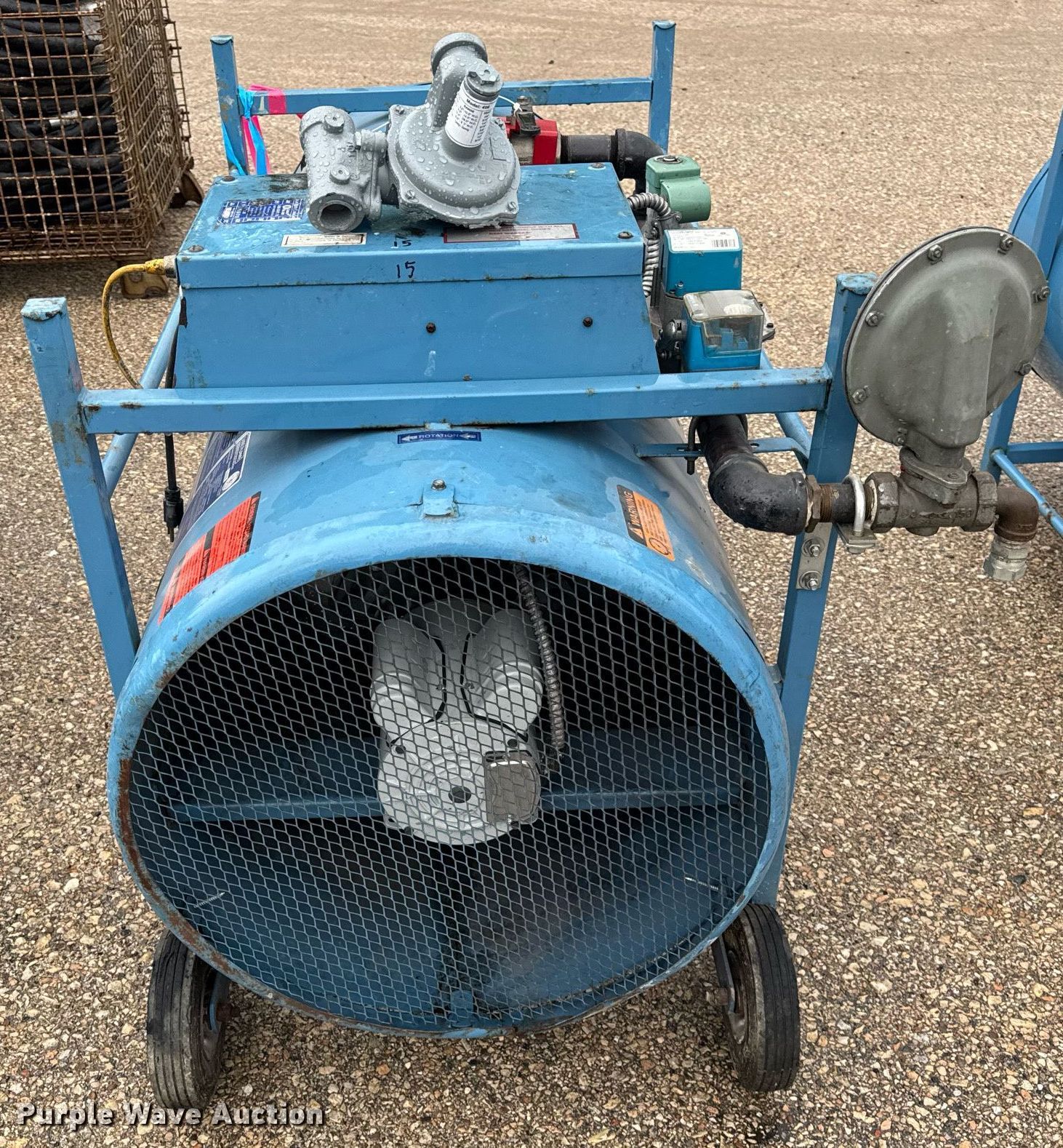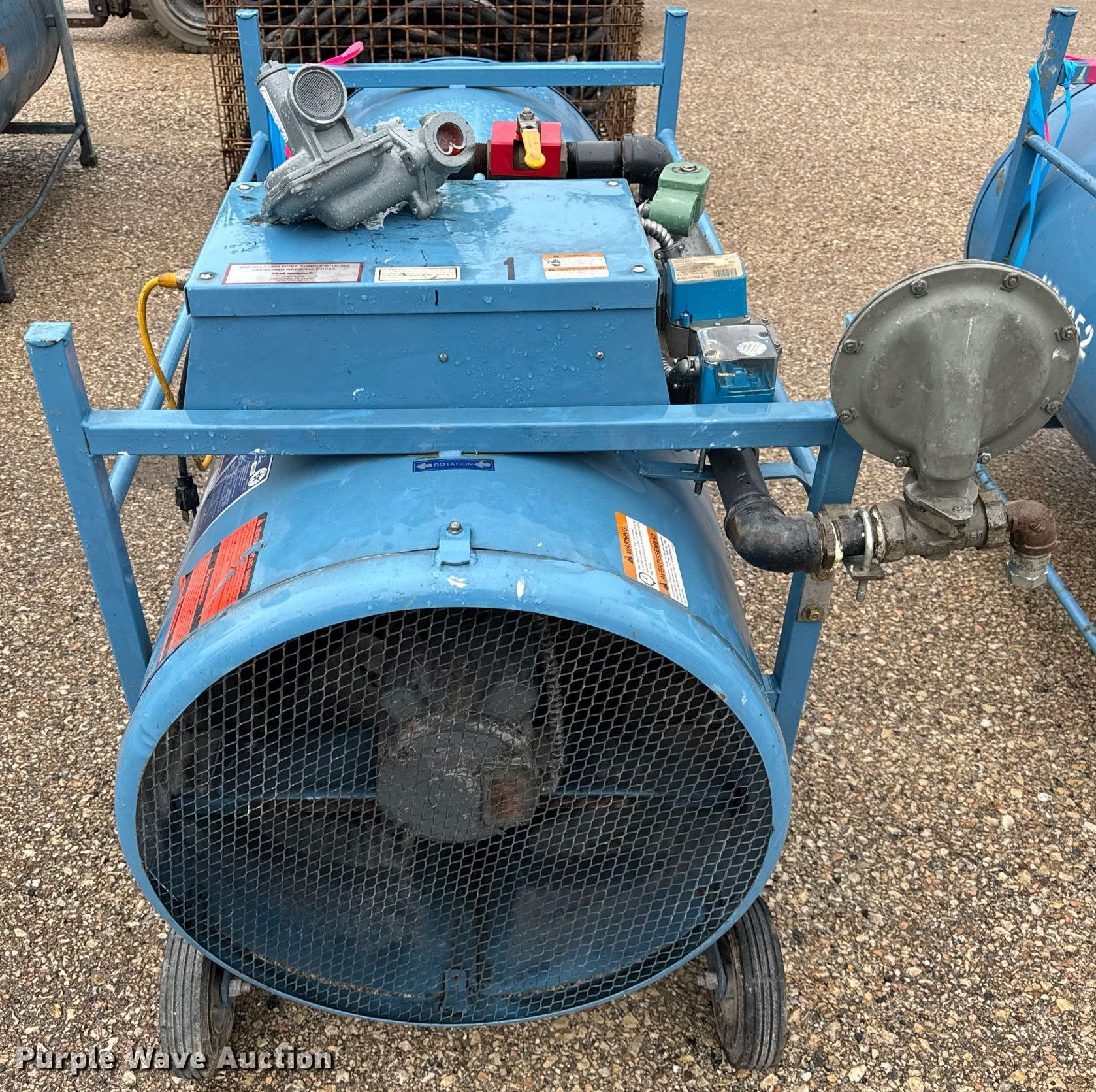 Purple Wave is selling a used Portable Heater or Fan in Illinois. This item is a (8) Sure Flame S1505B heaters with the following: BTU: 1,500,000 BTU, Fuel types:, CNG, LPG, Additional regulators, Fuel hose length: 1,000', (2) hoses, Lengths:, 300', Diameter: 3/4", 700', Diameter" 1",, (2) electric junction boxes, (2) electric cords
