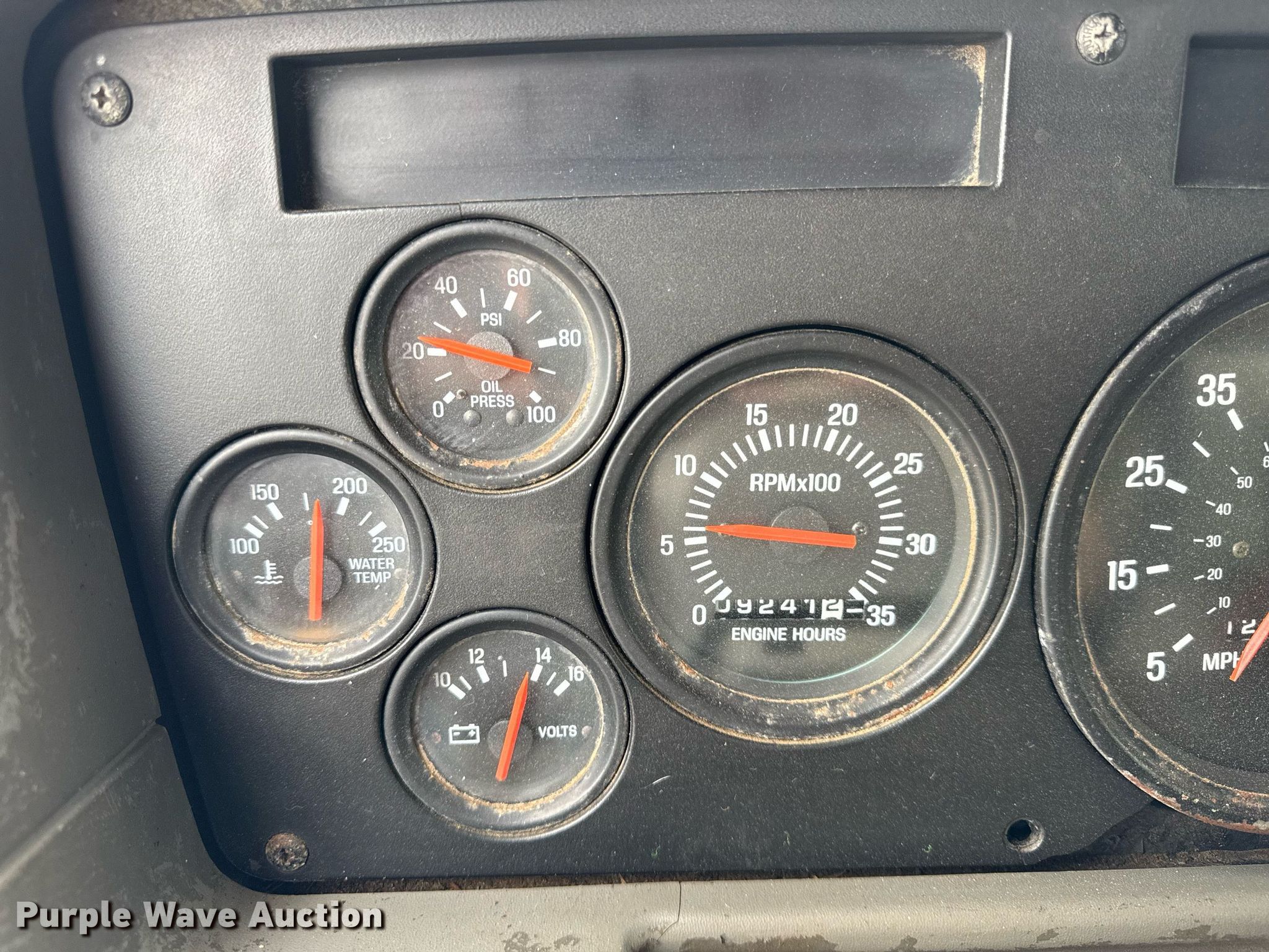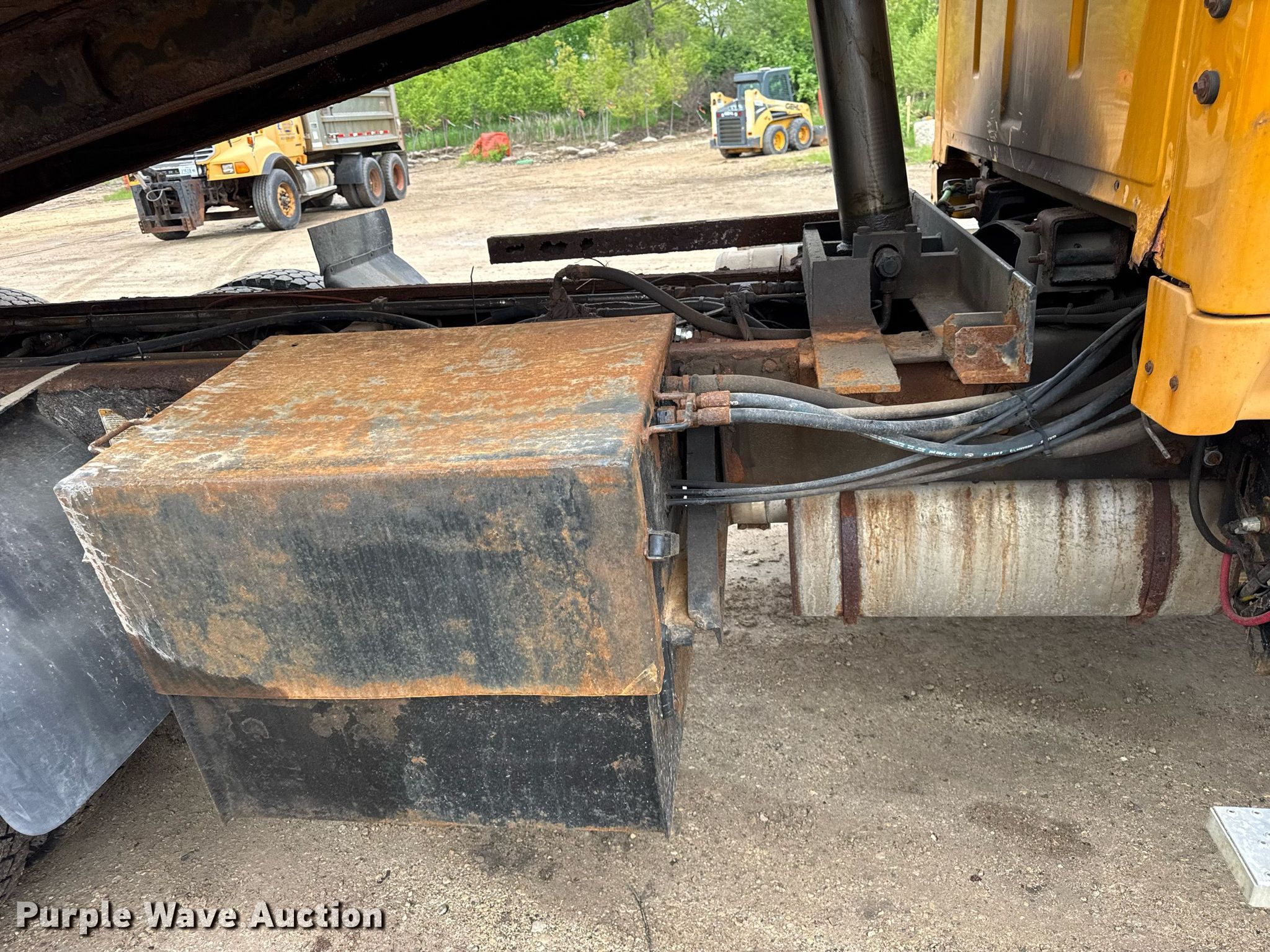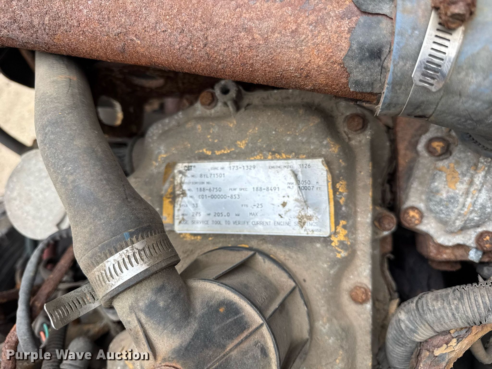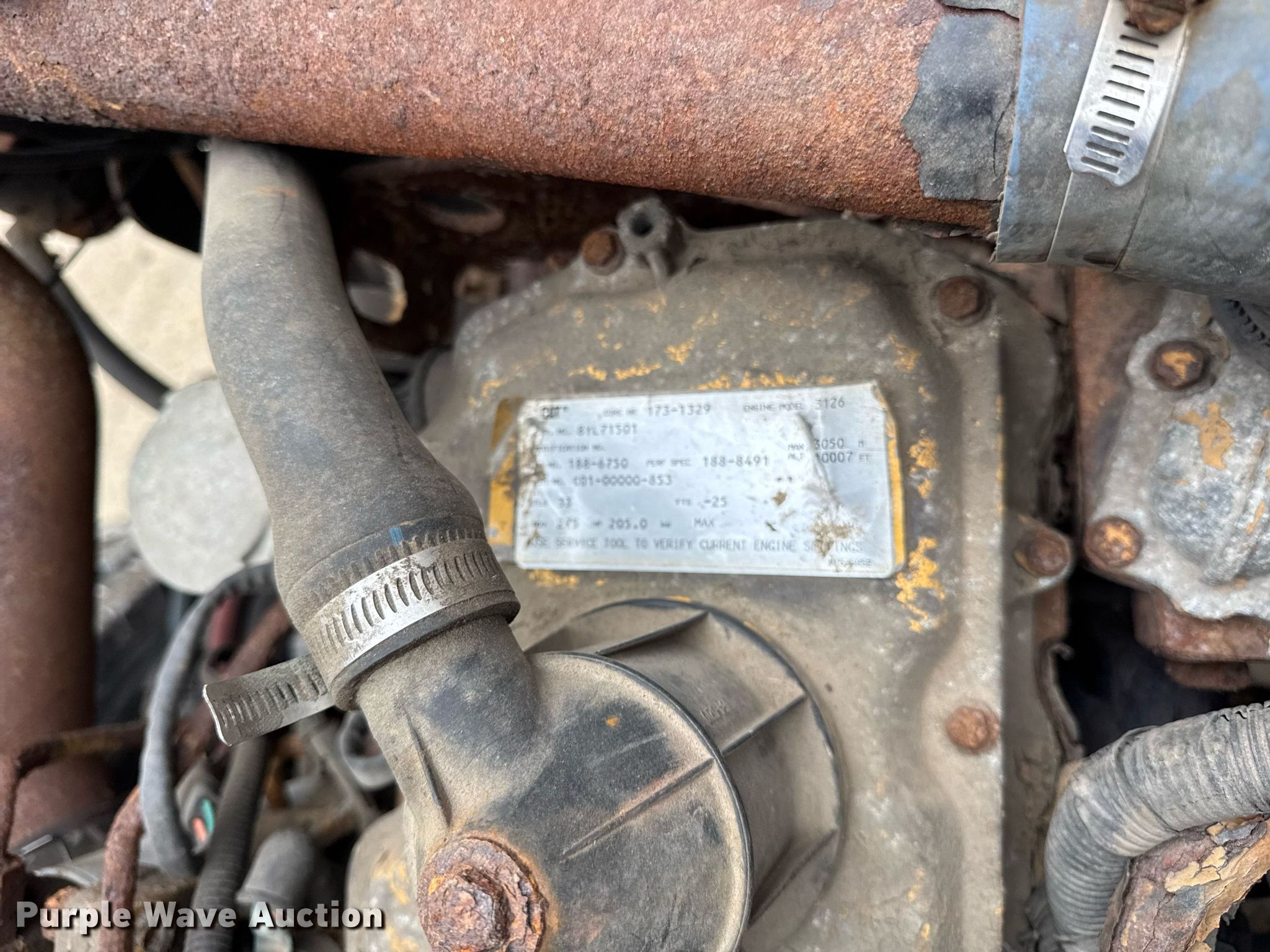 2001 Sterling LT8500 dump truck. Miles: 122,296 on odometer, Hours: 9,241 on meter, VIN: 2FZHAWAK71AH78066. Engine Caterpillar 3126, Displacement: 7.2L, Cylinders: 6, Fuel type: Diesel. Transmission Automatic. Chassis Double frame, Axles: Tandem, Differential lock: Inter-axle, Suspension: Spring over walking beam, Brakes: Air, PTO, GVWR: 58,740 lbs FAWR: 18,740 lbs, IAWR: 20,000 lbs, RAWR: 20,000 lbs. Interior Heat, Heated mirrors. Features Dump bed Henderson XDx14x44x304ss, 14' L x 96" W, Side height: 53", Ram: Single, End gate: Air operated, Spreader. Tires Front: 385/65R22.5, Rear: 11R22.5. Notes Tailgate removed but included, Dash warning indicator: ABS. Title distribution may be delayed up to 14 days from verification of funds. The Langton Group. Woodstock, IL 60098