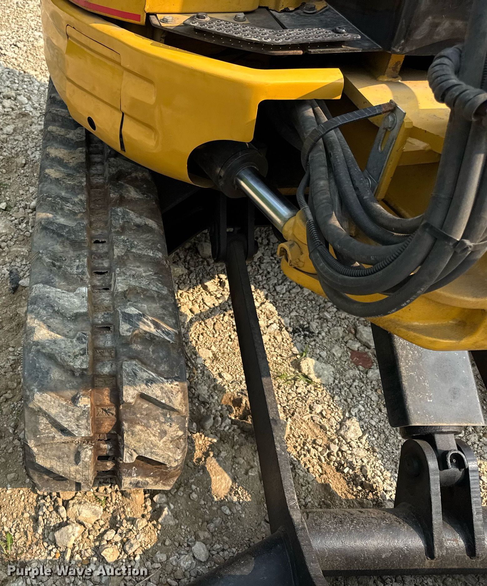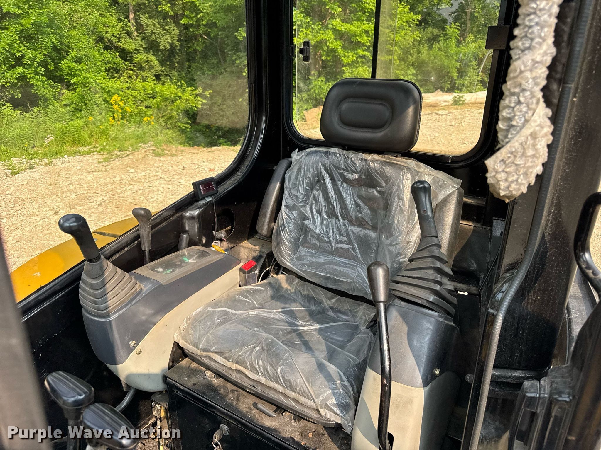 2006 Caterpillar 303CR mini excavator. Hours: Unknown, Serial: CAT00303VDMA05228. Engine Mitsubishi S3L, Cylinders: 3, Fuel type: Diesel. Transmission Hydrostatic, Two speed travel. Operators station Enclosed cab. Features Auxiliary hydraulics, Backfill blade Width: 60", Boom Swing, Stick Stick length: 4' 2", Thumb: Hydraulic, Bucket Width: 21", Teeth: 4. Tracks Width: 12", Rubber. Notes Non-operational hour meter. B & B Operations. Brimfield, IL 61517