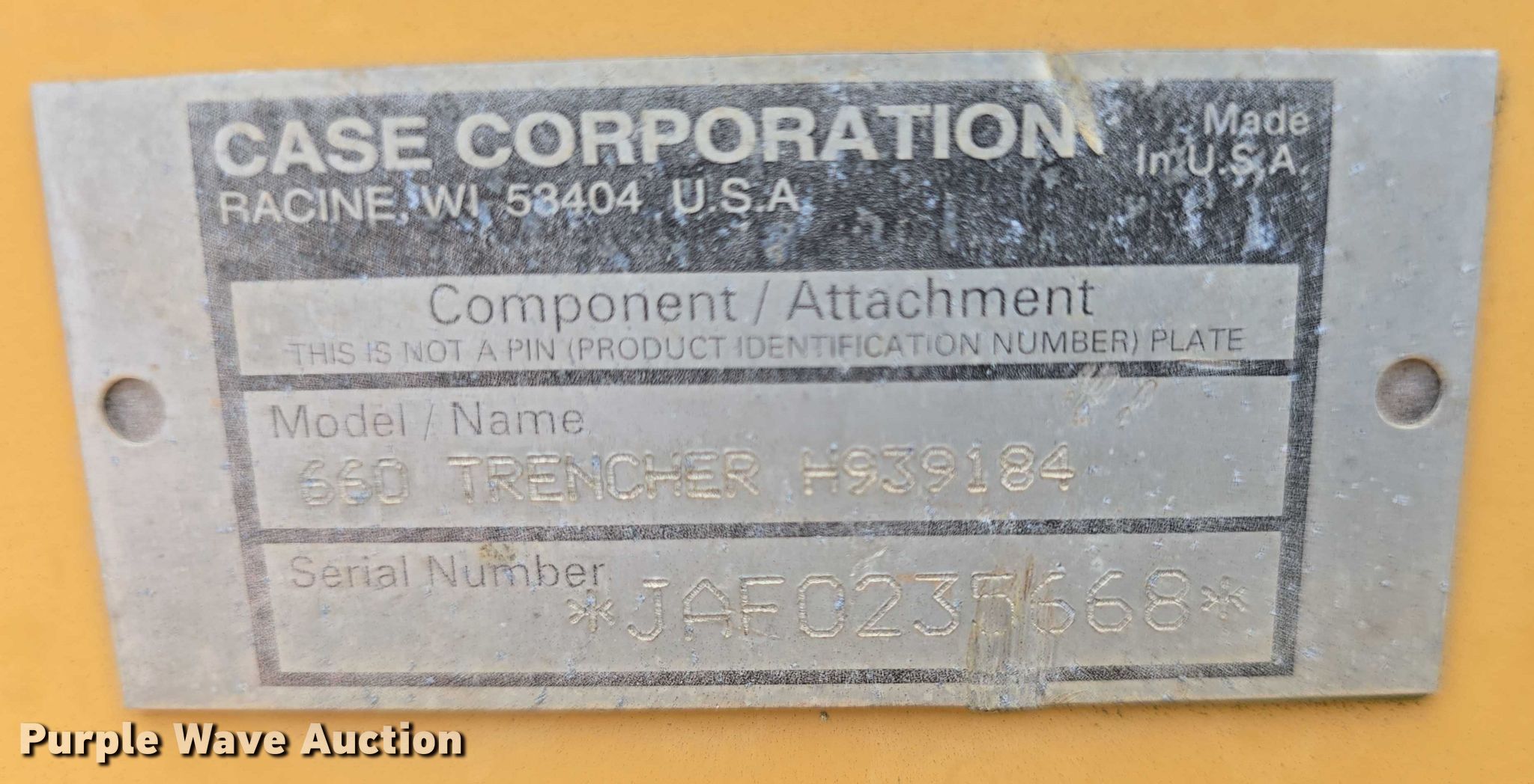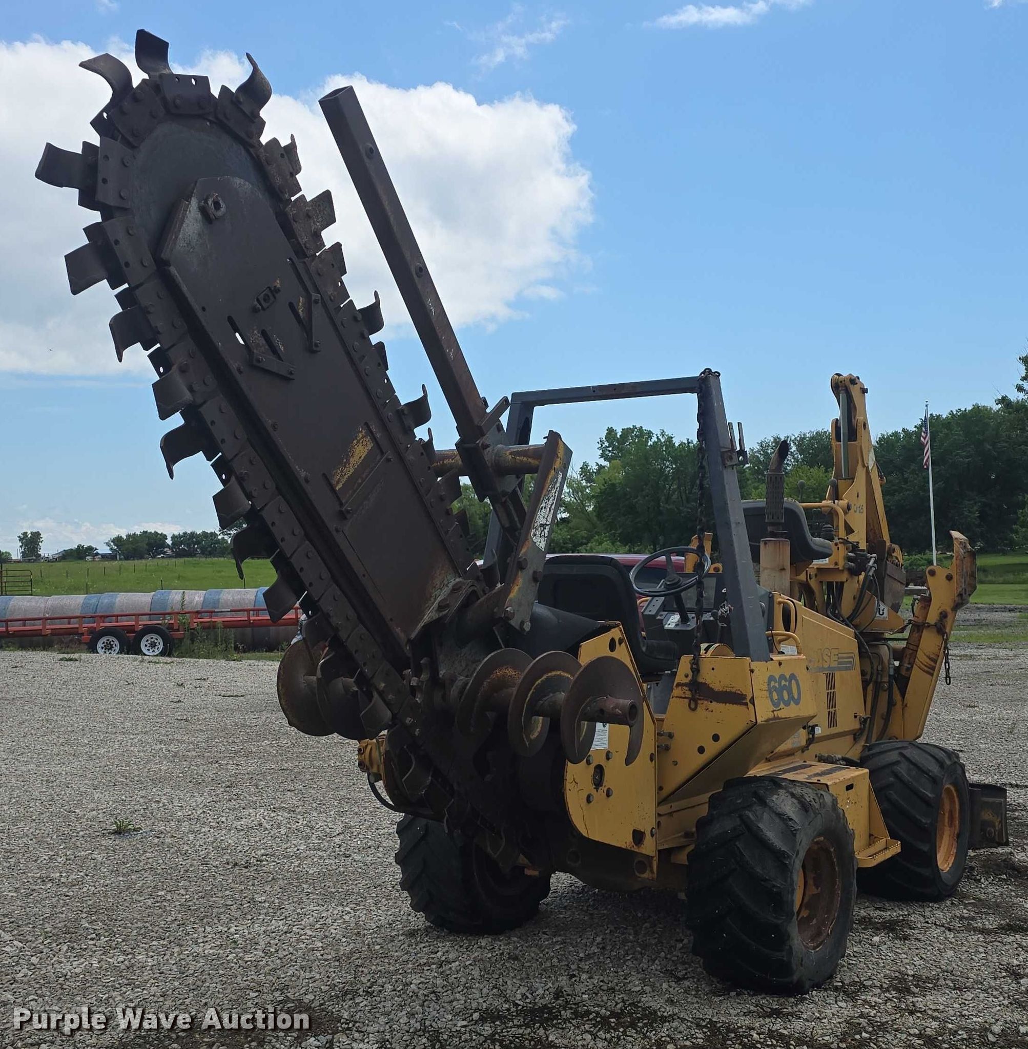 Purple Wave is selling a used Trencher or Rock Saw in Kansas. This item is a 1998 Case 660 trencher with the following: Hours: 2,398 on meter, Serial: JAF0225965