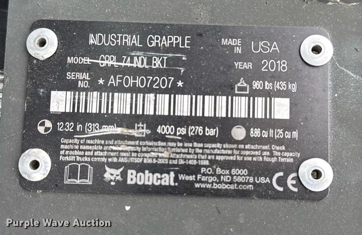 - 2018 Bobcat grapple bucket