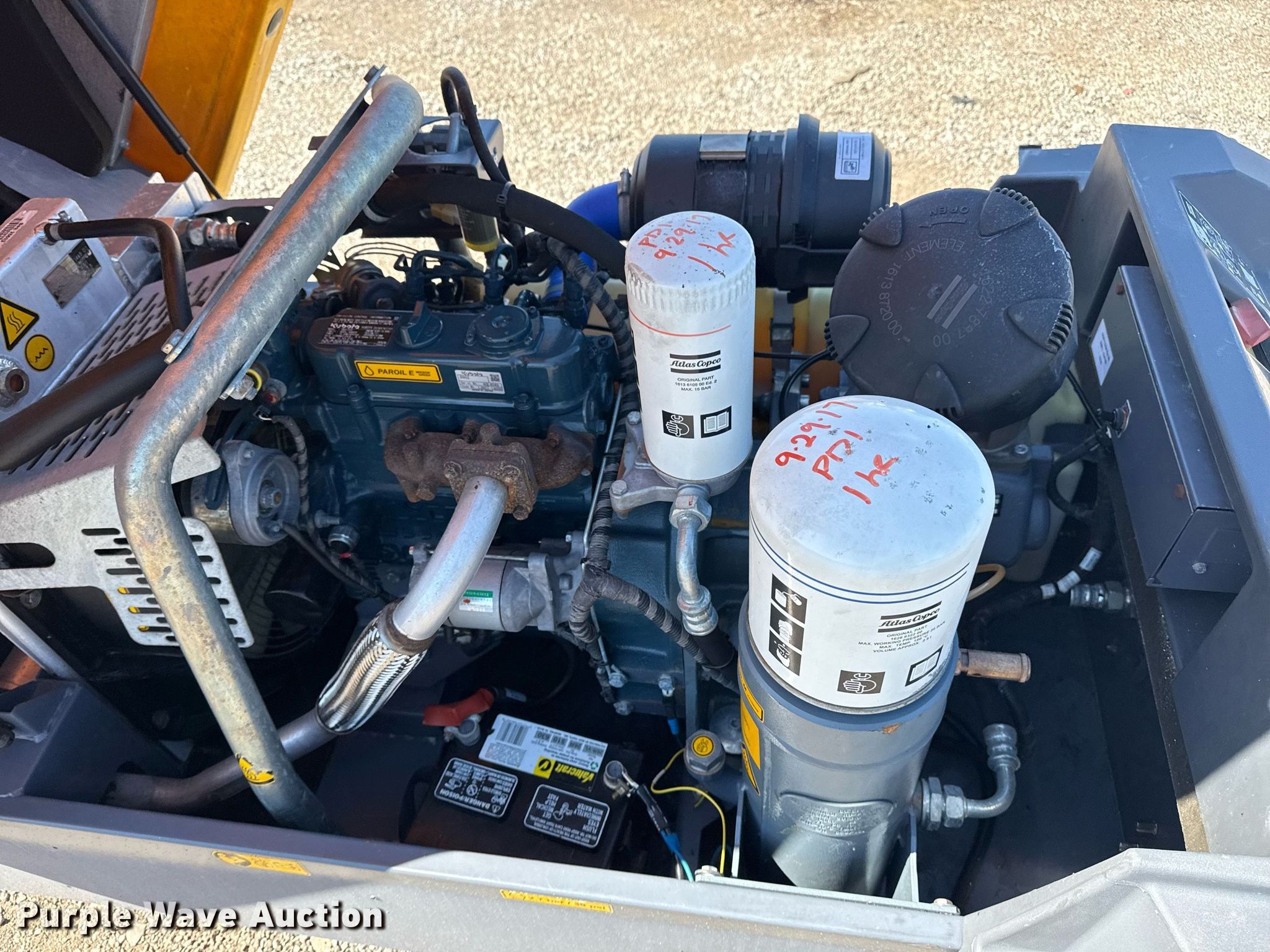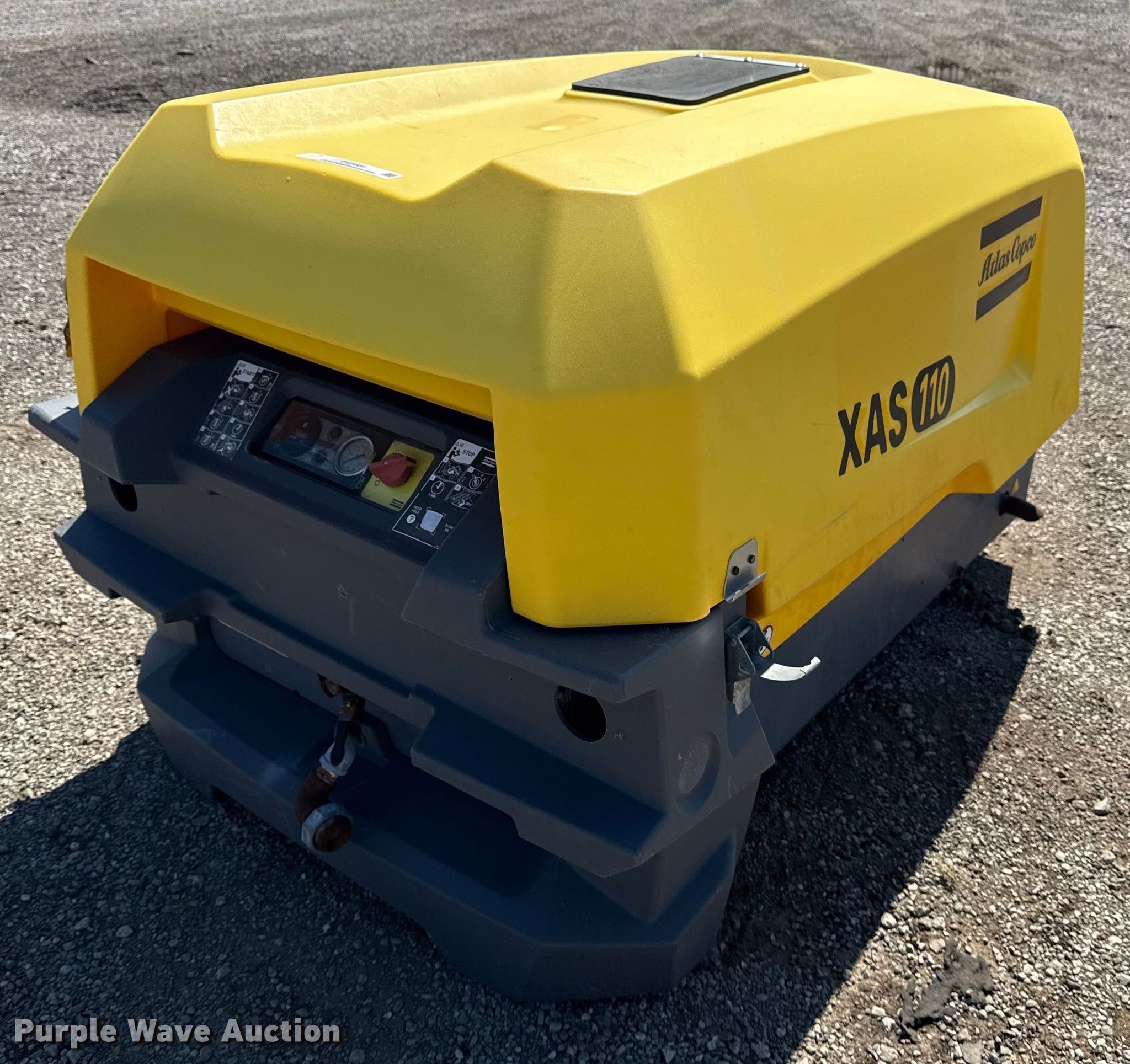 Purple Wave is selling a used Air Compressor in Oklahoma. This item is a 2016 Atlas Copco XAS110 air compressor with the following: Hours: 501 on meter, Serial: APP429336