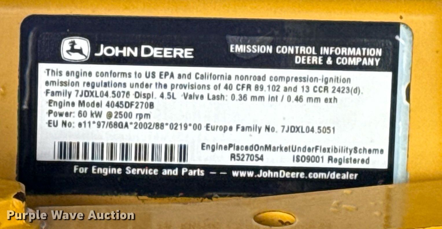 2009 Sullivan Palatek D2100H1OJD air compressor. Hours: 1,069 on meter, Serial: 29081. Engine John Deere 4045DF, Serial: PE4045D735217, Displacement: 4.5L, Cylinders: 4, Fuel type: Diesel, kW: 60. Collinsville, OK 74021