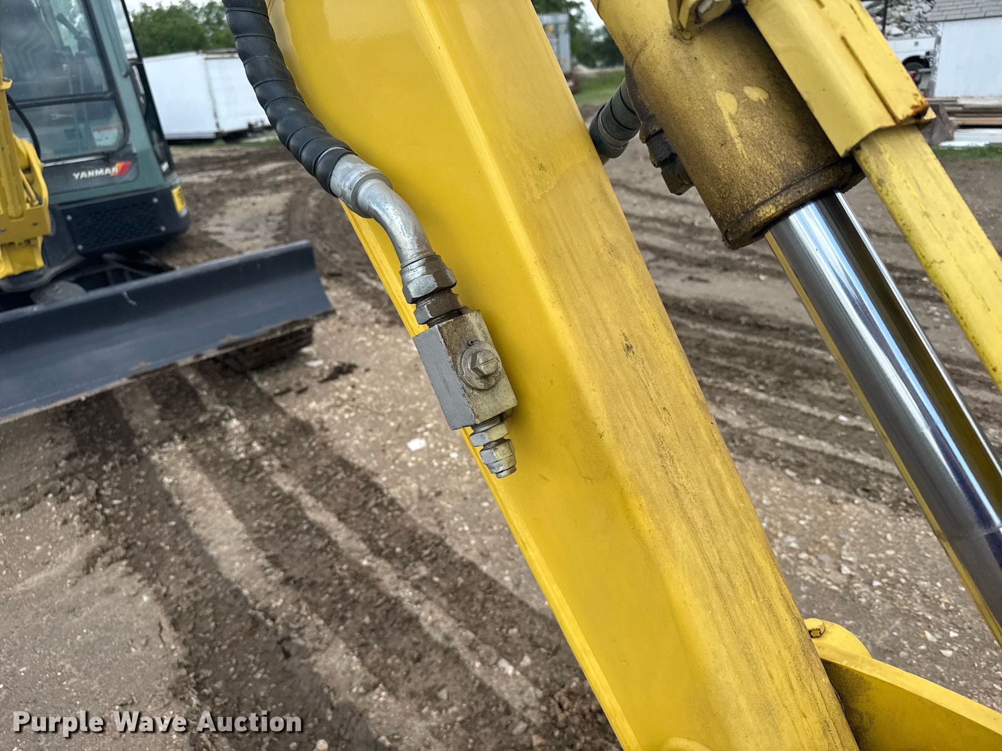 2005 Yanmar ViO55-5A mini excavator. Hours: 2,677 on meter, Serial: 51108B. Engine Yanmar 3NNPE, Serial: YD2201DNMDEC, Displacement: 2.190L, Cylinders: 4, Fuel type: Diesel. Transmission Hydrostatic. Operators station Enclosed cab, AC, Heat. Features Auxiliary hydraulics, Counter weights, Backfill blade Width: 77", Boom Standard, Stick Stick length: 7', Quick coupler: Mechanical, Bucket Width: 24", Teeth: 4. Tracks Width: 16", Steel, Grouser pads: Triple. B&M Construction LLC. Beloit, KS 67420