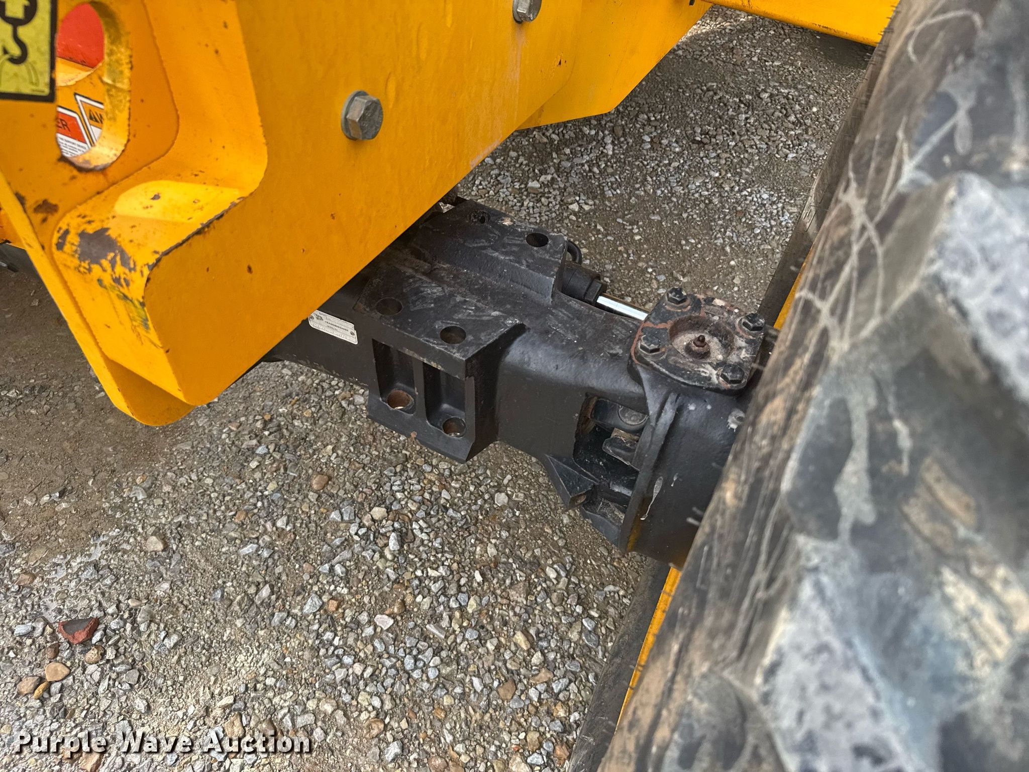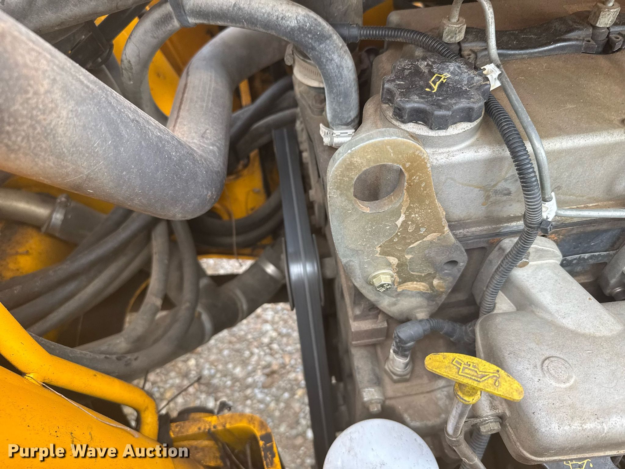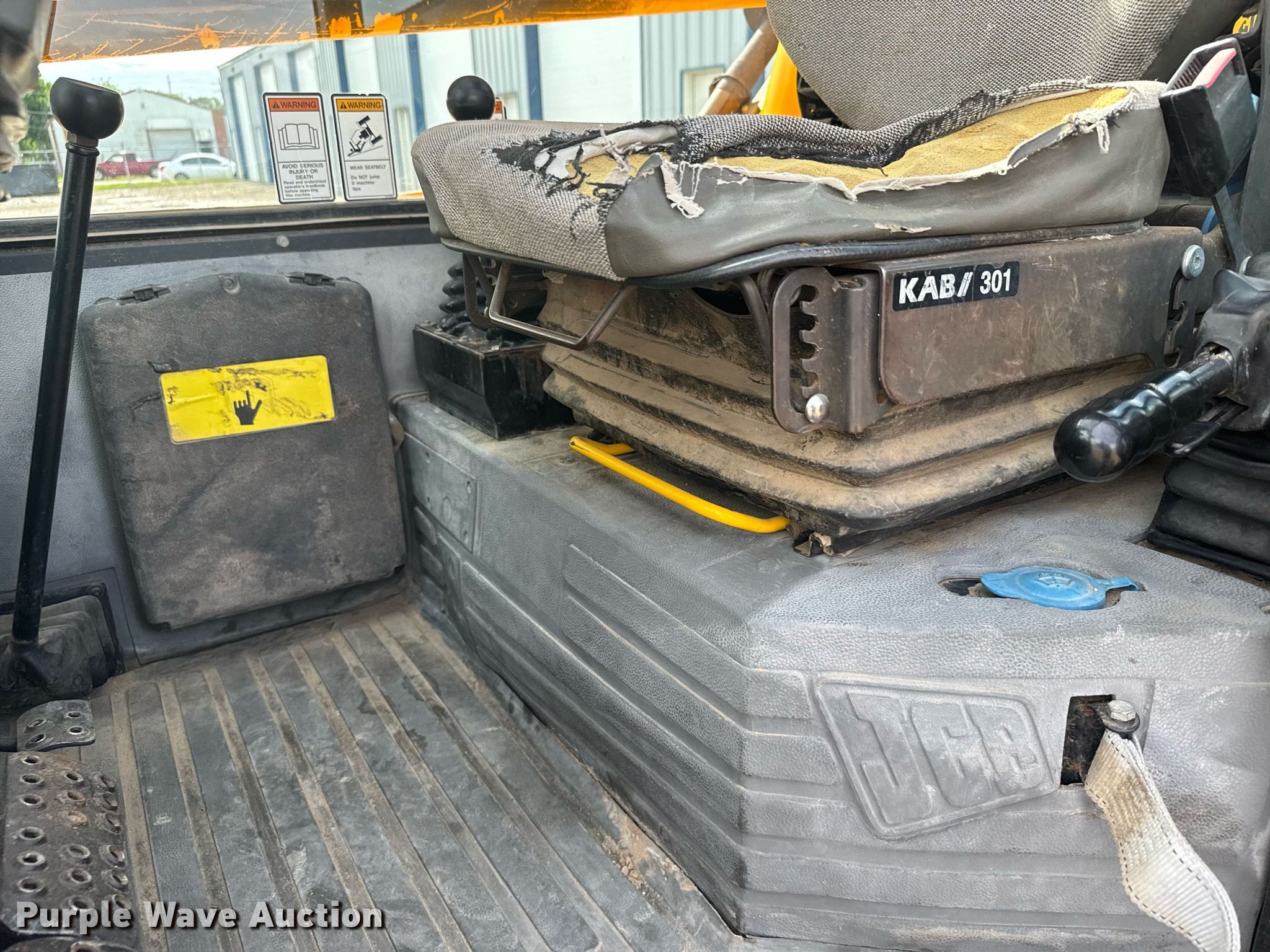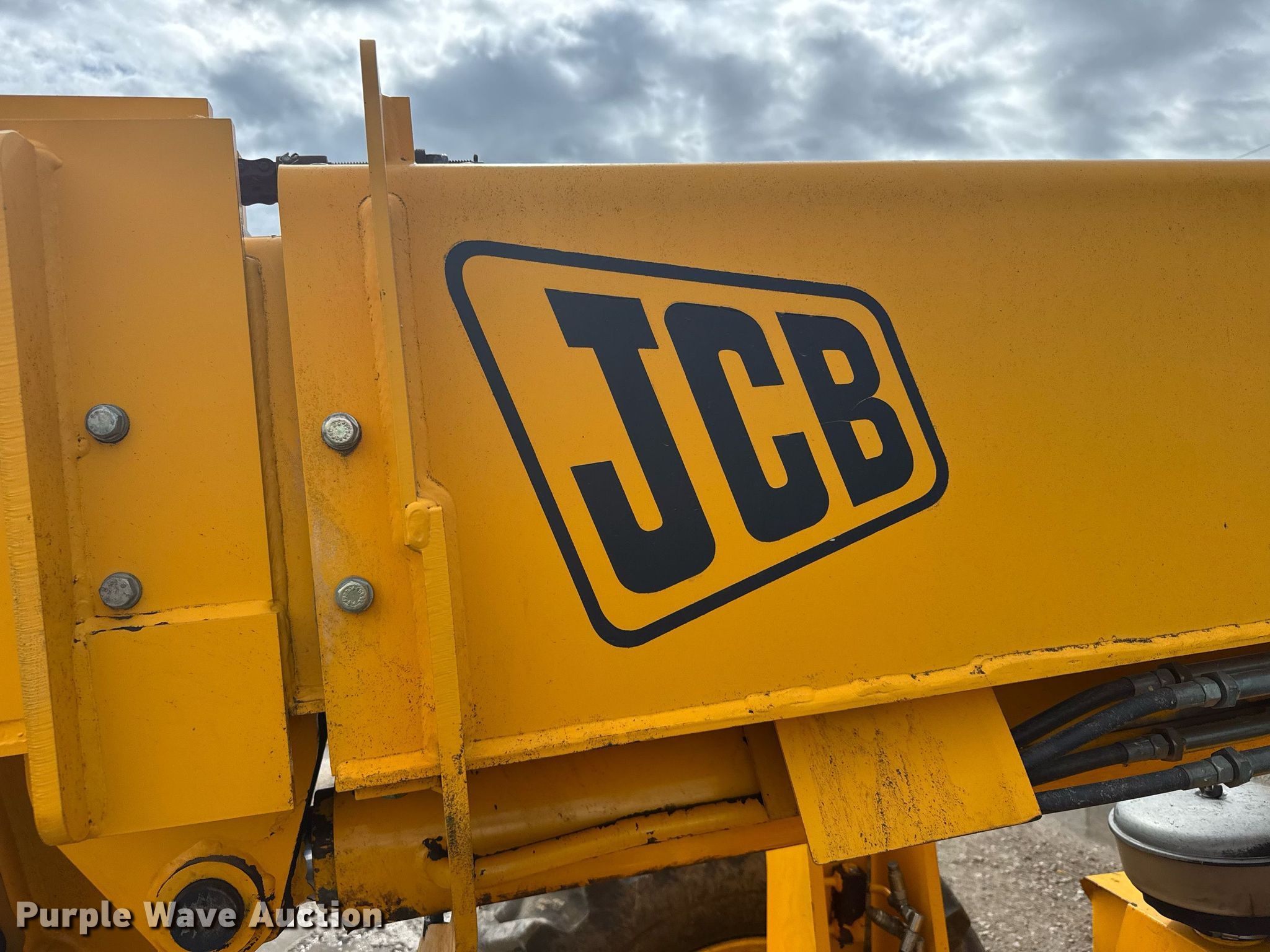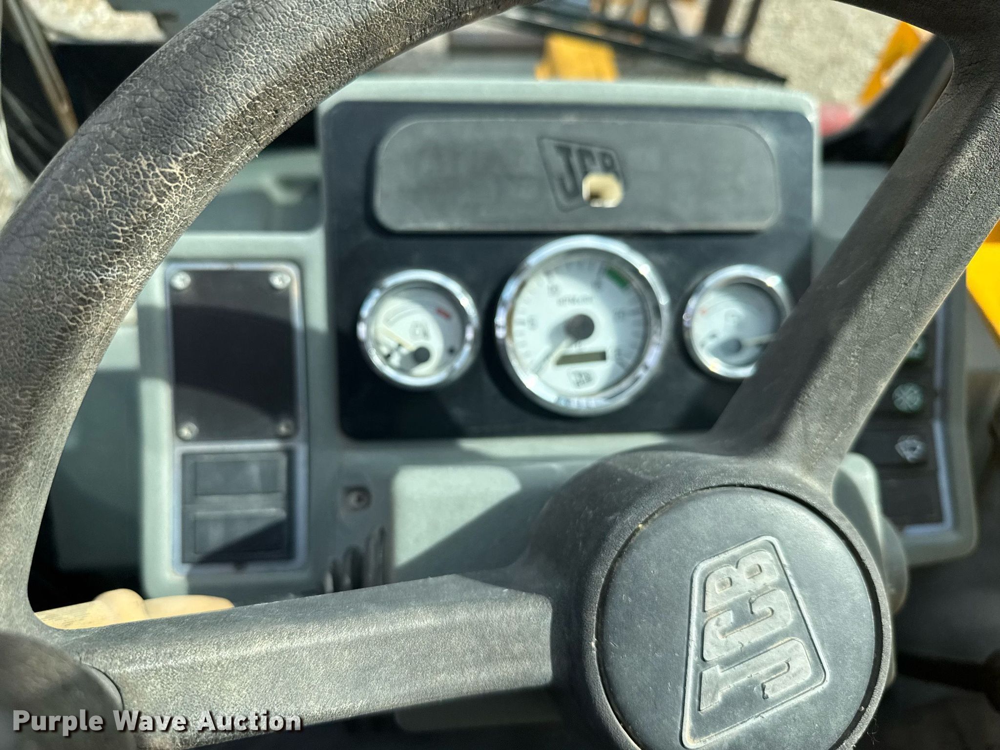 2008 JCB 506C telehandler. Hours: Unknown, Serial: SLP5CCJA7U1290401. Engine JCB, Serial: SA32040075U1106707, Cylinders: 4, Fuel type: Diesel. Transmission Shuttle shift, 4F - 4R, Four wheel drive. Operators station Enclosed cab, Steering: Crab, Four wheel. Features Maximum lift capacity: 6,000 lbs, Maximum lift height: 42', Boom stages: 2, Fork length: 47", Auxiliary hydraulics, Hydraulic leveling, Quick attach: Manual. Tires Size: 13.00-24. Ryan Roofing. Salina, KS 67401