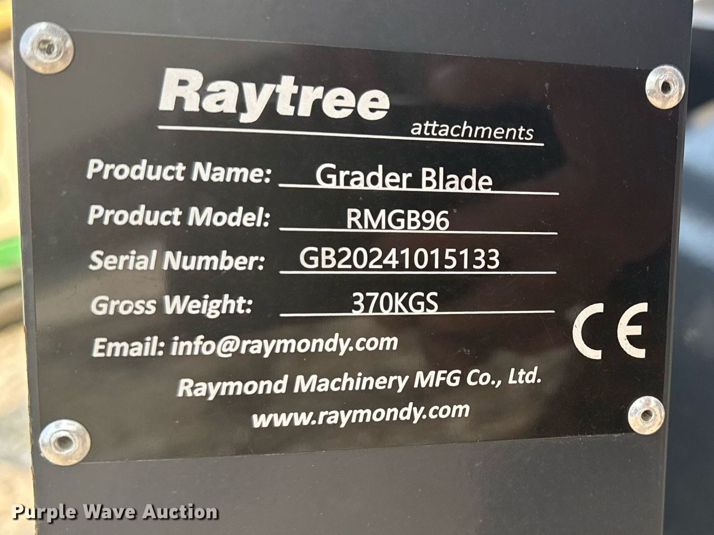 Purple Wave is selling a used Skid Steer Attach. in Oklahoma. This item is a Raytree RMGB96 skid steer grader with the following: 95" L x 96" W x 38" H, Serial: GB2024101533