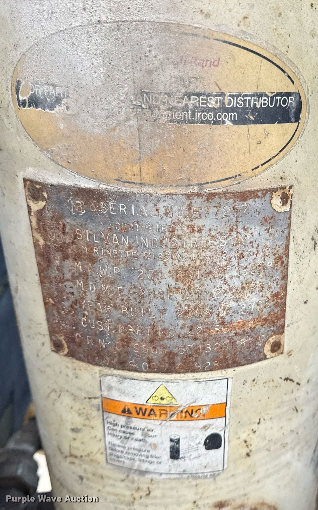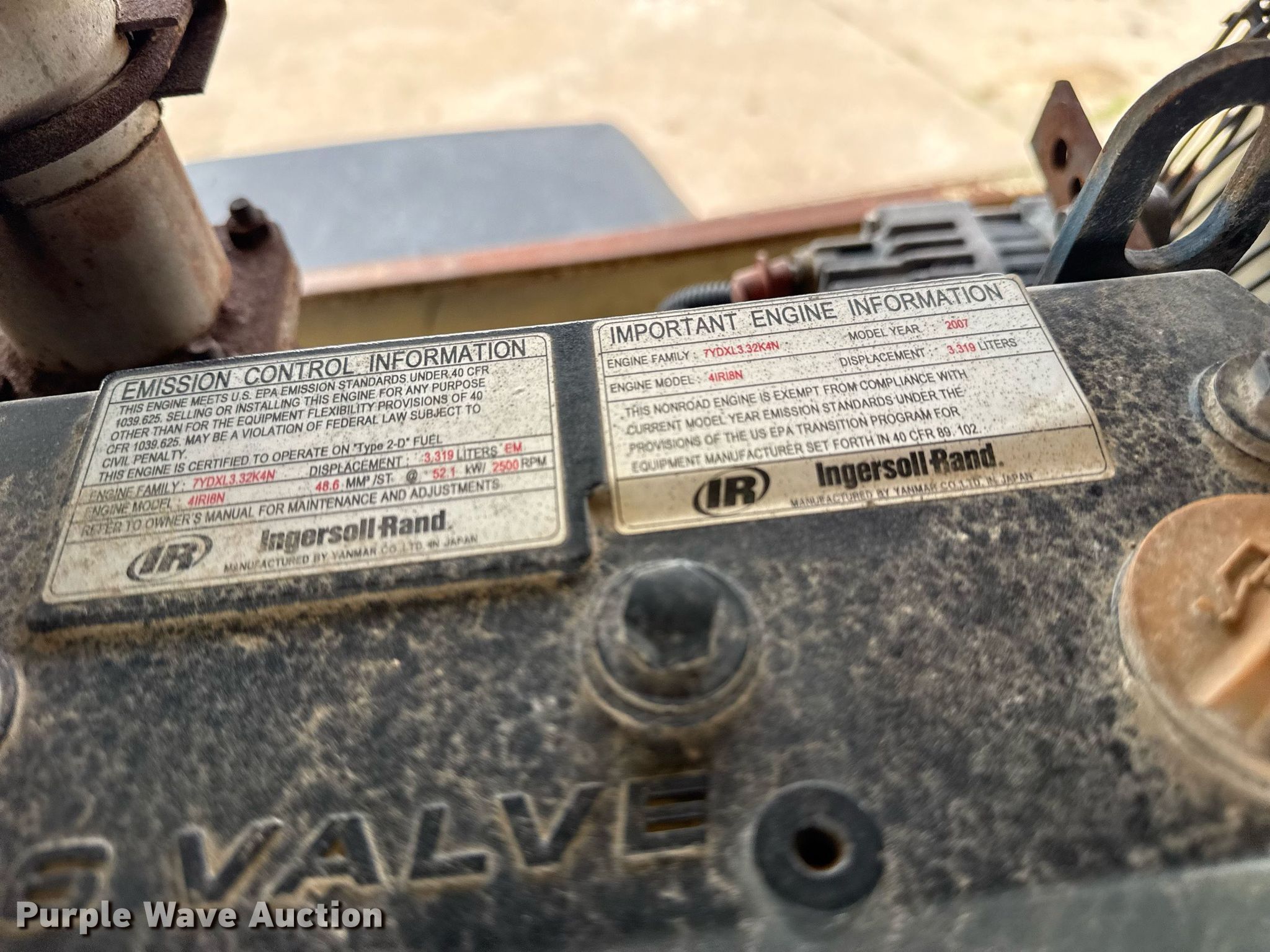 Purple Wave is selling a used Air Compressor in Oklahoma. This item is a 2008 Ingersoll Rand P185WIR air compressor with the following: Hours: 2,010 on meter, Serial: 405121UUSD07