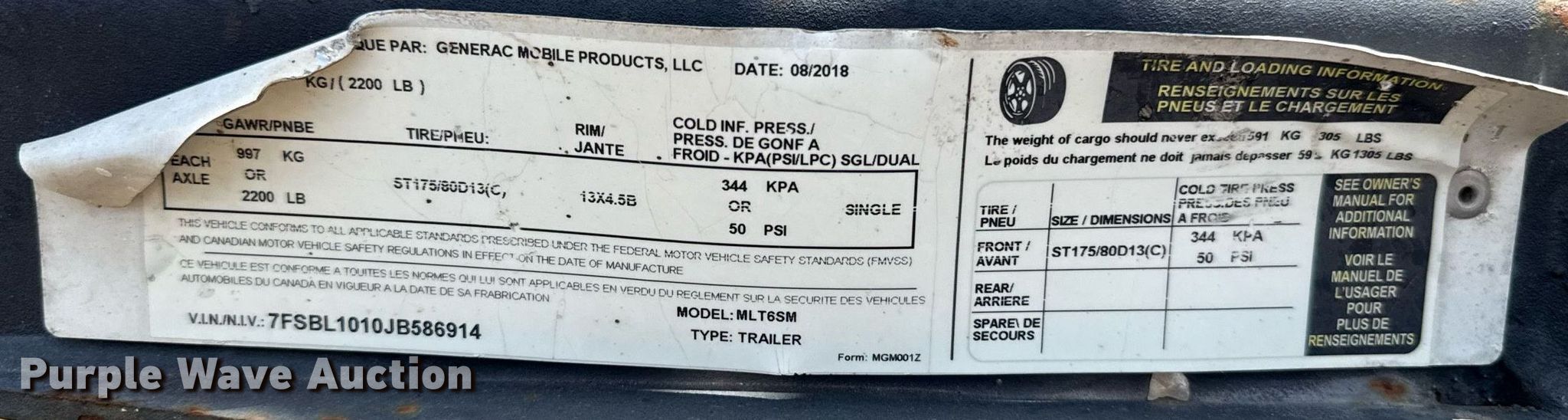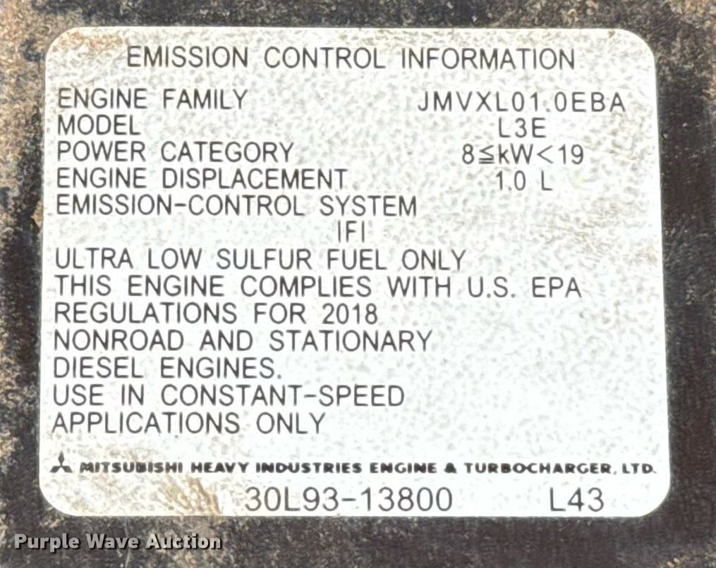 2018 Generac Magnum light plant. Hours: 8,912 on meter, VIN: 7FSBL1010JB586914. Engine Mitsubishi L3E, Serial: A52443, Displacement: 1.0L, Cylinders: 3, Fuel type: Diesel. Features Light plant Bulbs: 4, Watts: 1,100, Hoist: Manual, Stabilizers. Trailer 10' L x 58" W, Ball hitch size: 2", Suspension: Spring, Axles: Single, Tire size: ST175/80D13, GVWR: 2,200 lbs, GAWR: 2,200 lbs. Notes Dead battery, Engine issues, smokes. This is worksite support equipment and will not come with a title. Transfer of ownership documentation will be a bill of sale. Redlands Contracting. El Reno, OK 73036