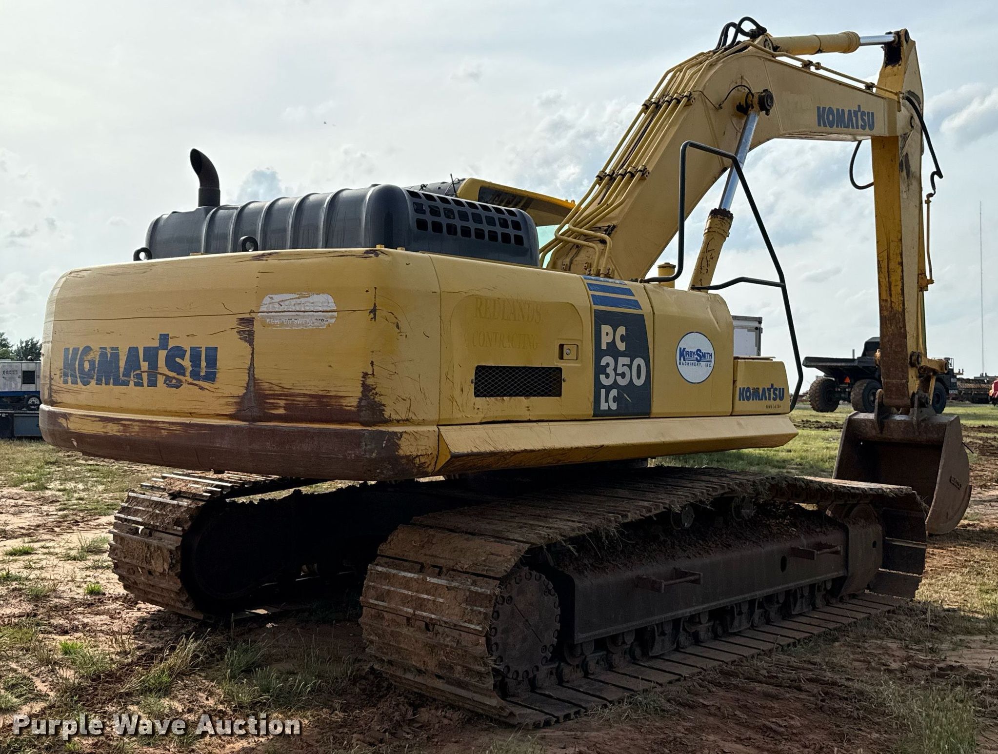 2011 Komatsu PC350LC-8 excavator. Hours: 13,546 on meter, Serial: KMTPC191J54A10473. Engine Komatsu SAA6D114E-3ESN, Displacement: 8.3L, Cylinders: 6, Fuel type: Diesel, HP: 260, kW: 194. Transmission Hydrostatic, Three speed travel. Operators station Enclosed cab, AC, Heat, Pattern changer. Features Counter weights, Boom Standard, Stick Stick length: 10' 6", Bucket Esco PC300/350/360-3/10, Capacity: 2 cu.yd., Width: 48", Teeth: 5. Tracks Width: 34", Steel, Grouser pads: Triple. Redlands Contracting. El Reno, OK 73036