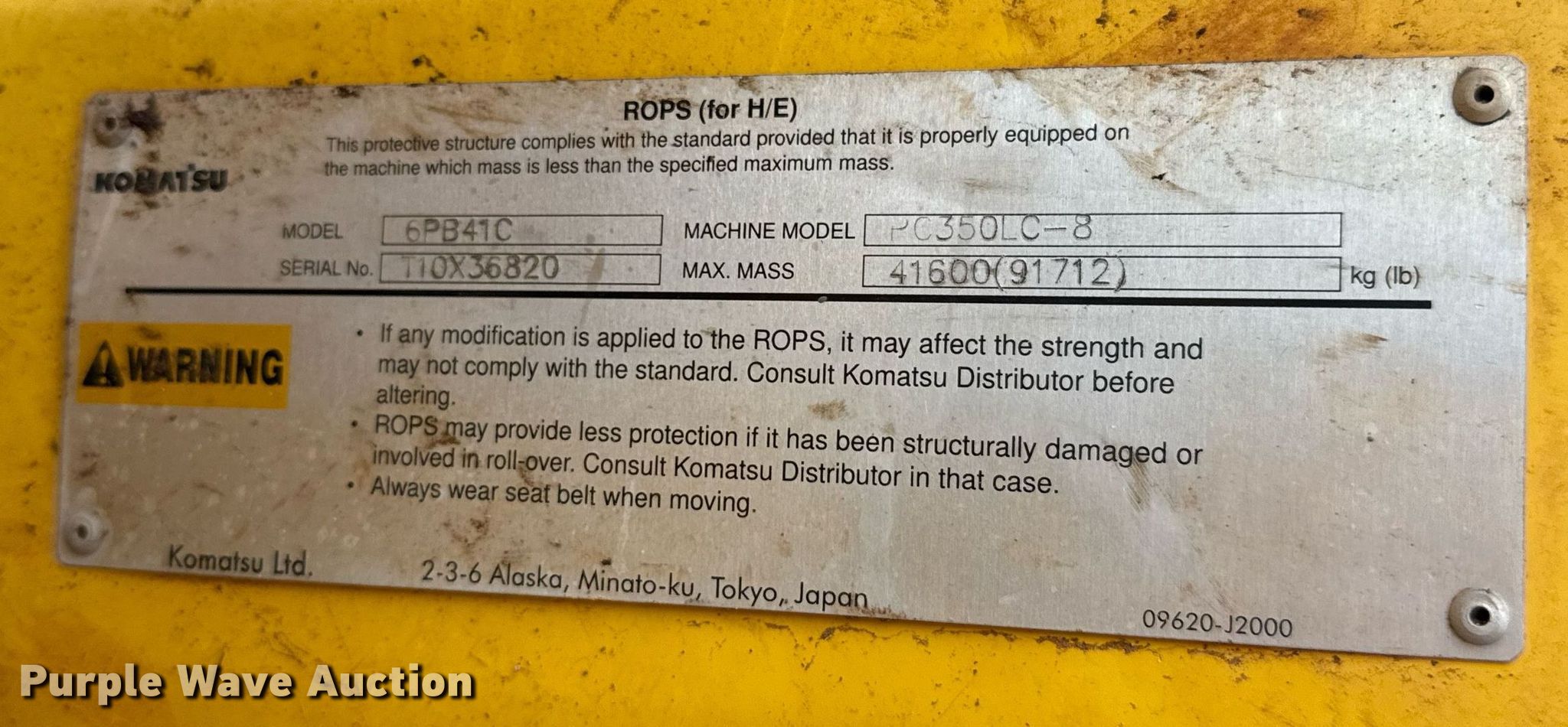 Purple Wave is selling a used Hydraulic Excavator in Oklahoma. This item is a 2011 Komatsu PC350LC-8 excavator with the following: Hours: 13,546 on meter, Serial: KMTPC191J54A10473