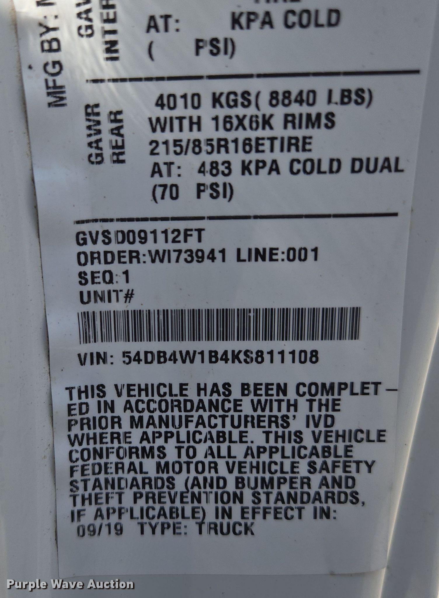 - VIN: 54DB4W1B4KS811108