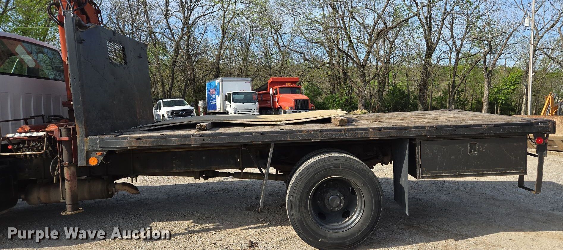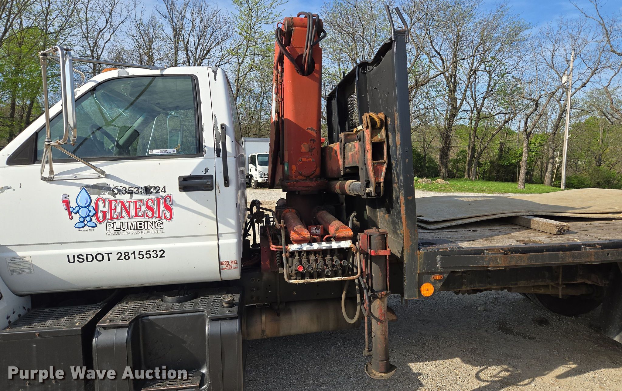 1997 GMC C7500 crane truck. Miles: 90,784 on odometer, VIN: 1GDM7H1J5VJ500591. Engine Caterpillar 3116, Displacement: 6.6L, Cylinders: 6, Fuel type: Diesel. Transmission Manual, Speed: 5. Chassis Axles: Single, Suspension: Spring, Brakes: Air, PTO, GVWR: 33,000 lbs. Interior Heat. Features Flatbed 16' L x 92" W, Crane HAB, Knuckle. Tires Size: 11R22.5. Notes Dash warning indicator: ABS, Dead battery. Missouri title. Title has a lien that will be released following the close of the auction. Title distribution may be delayed up to 30 days from verification of funds. Raytown, MO 64133