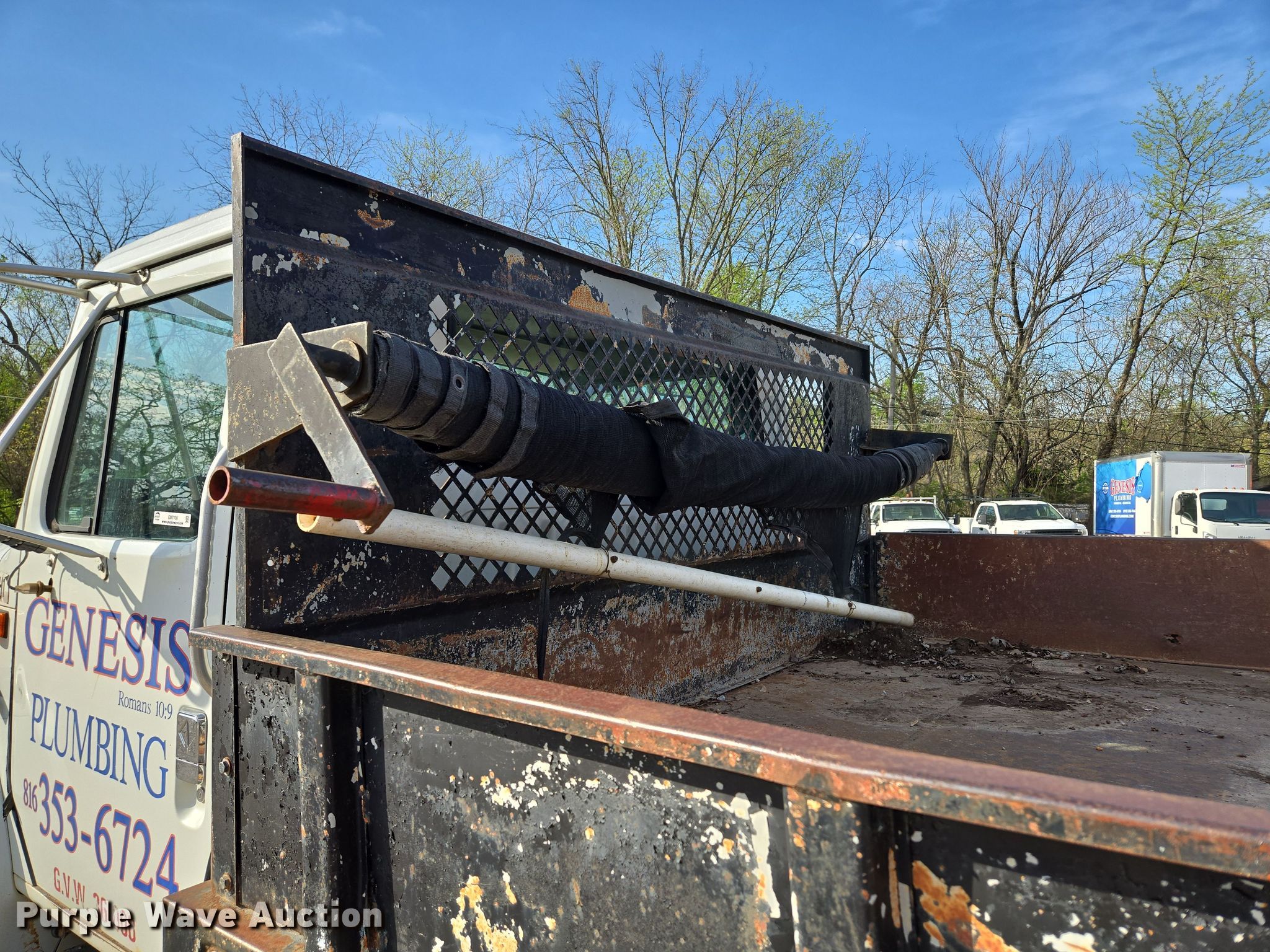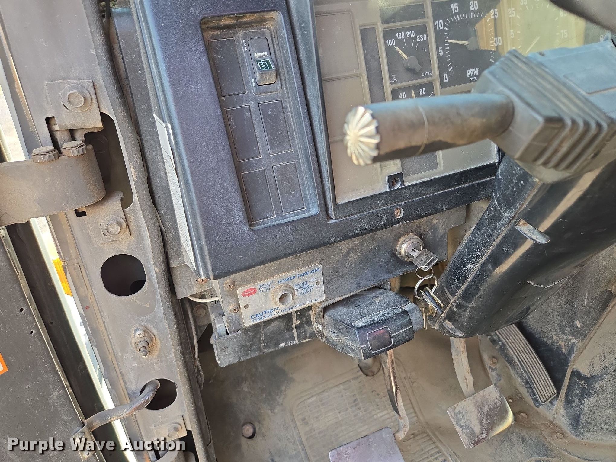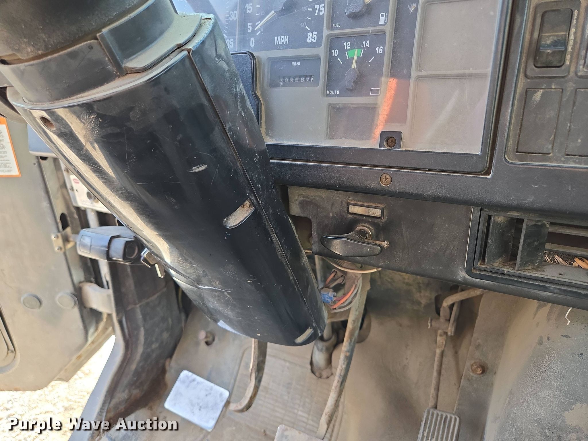 1995 International 4700 DT466 dump flatbed truck. Miles: 303,588 on odometer, VIN: 1HTSCAAMXSH682514. Engine International DT466, Displacement: 7.6L, Cylinders: 6, Fuel type: Diesel. Transmission Manual. Chassis Axles: Single, Suspension: Spring, Brakes: Hydraulic. Interior Heat. Features Dump flatbed Knapheide, Serial: 947227, 14' L x 92" W, Ram: Single, Removable sides, Roll tarp. Tires Size: 10R22.5. Notes Windshield chipped or cracked. Missouri title. Title has a lien that will be released following the close of the auction. Title distribution may be delayed up to 30 days from verification of funds. Raytown, MO 64133