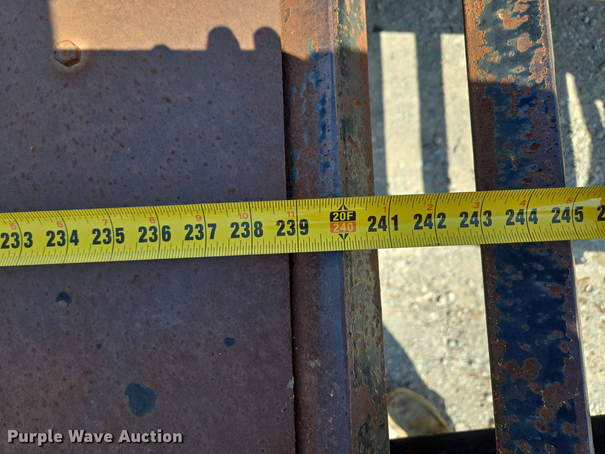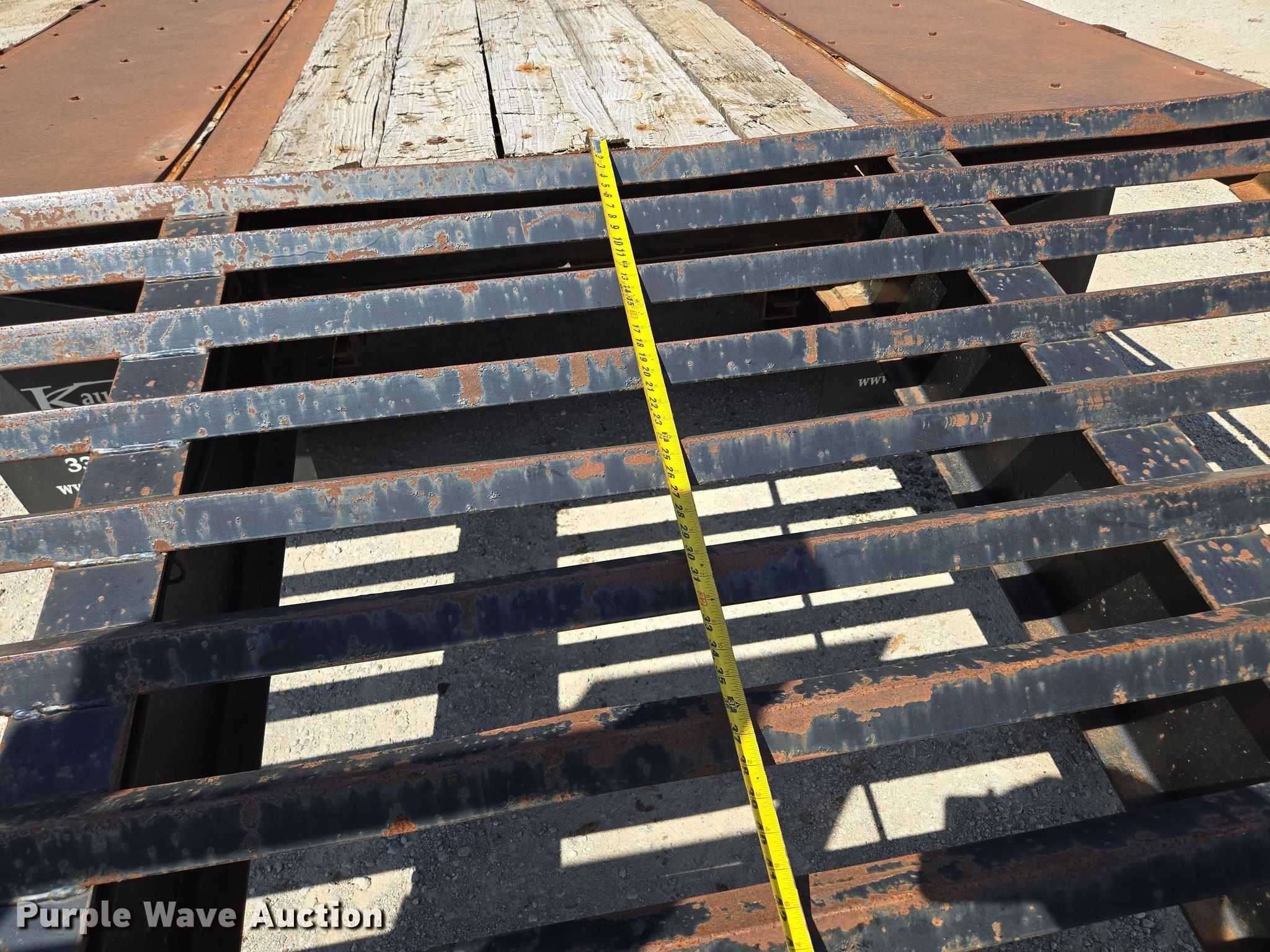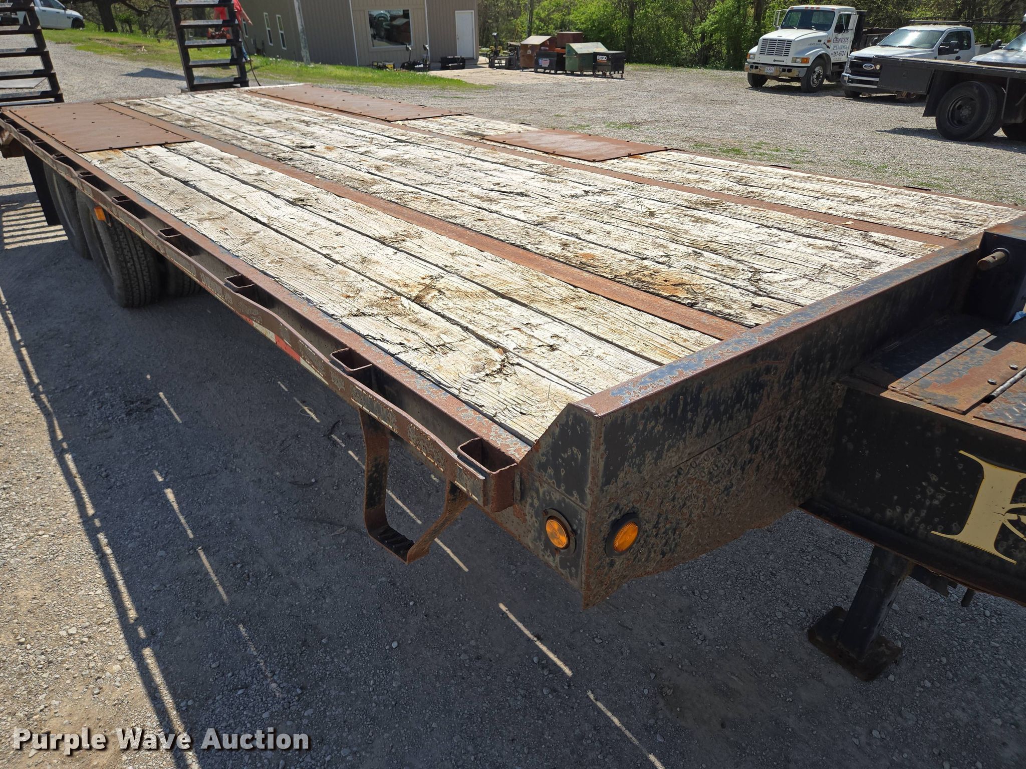 2014 Kaufman equipment trailer. VIN: 5SHFH2520EB000153. Dimensions Overall: 30' 6" L x 96" W, Deck: 20' L x 96" W, Tail length: 5', Ramps: Manual Length: 5'. Features Deck type: Wood. Chassis Hitch: Pintle, Landing gear: Single, Suspension: Spring, Brakes: Electric, Axles: Tandem, GVWR: 25,900 lbs. Tires Steel wheels, Size: 235/80R16. Notes Toolbox contents not included, Tongue damaged, bent. Missouri title. Title has a lien that will be released following the close of the auction. Title distribution may be delayed up to 30 days from verification of funds. Raytown, MO 64133