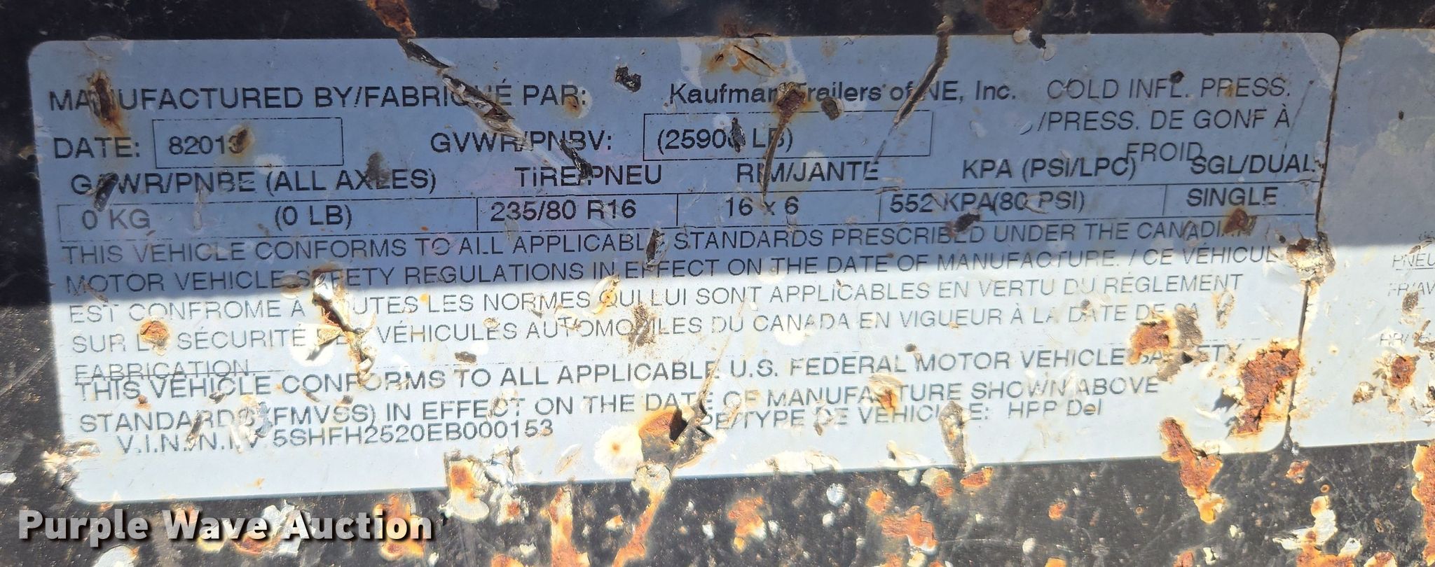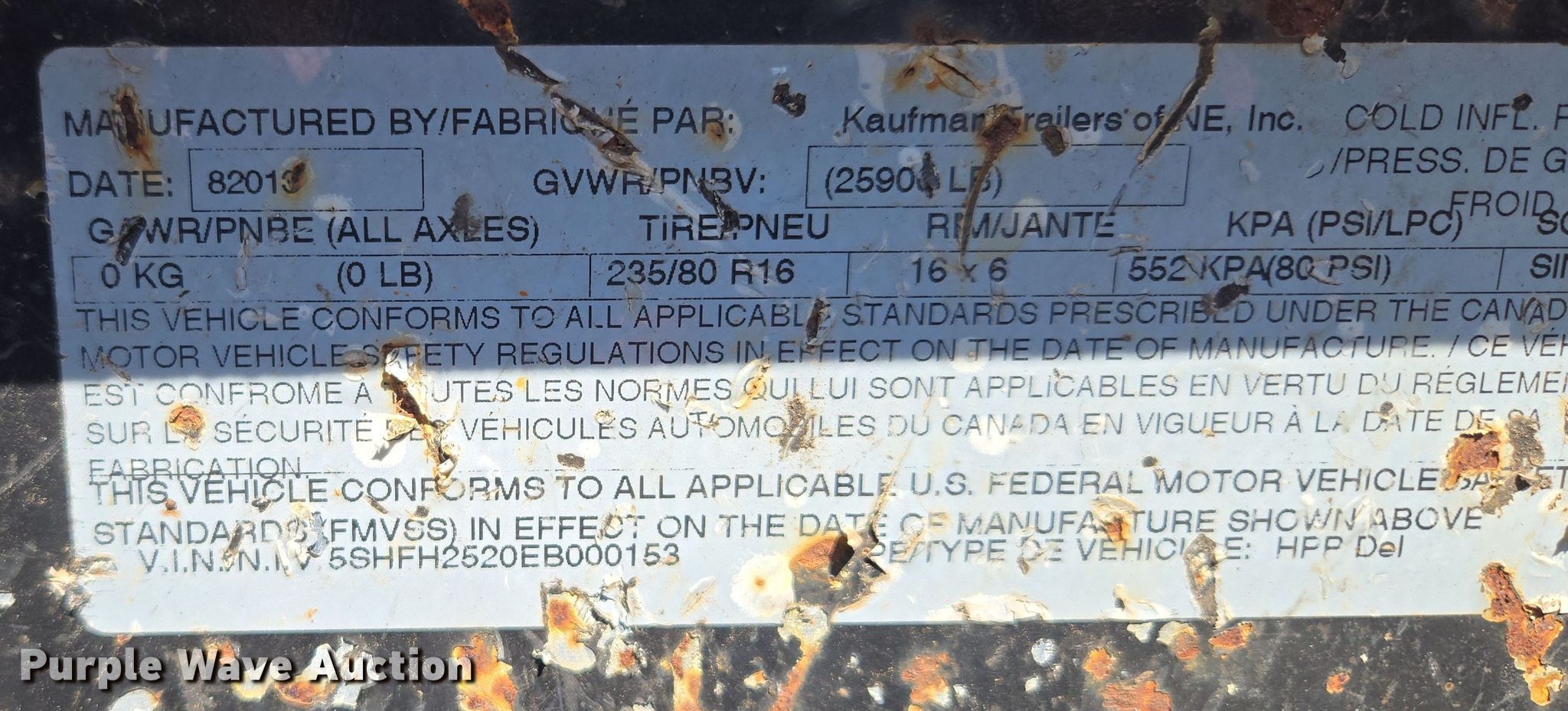 Purple Wave is selling a used Equip. Trailer in Missouri. This item is a 2014 Kaufman equipment trailer with the following: VIN: 5SHFH2520EB000153