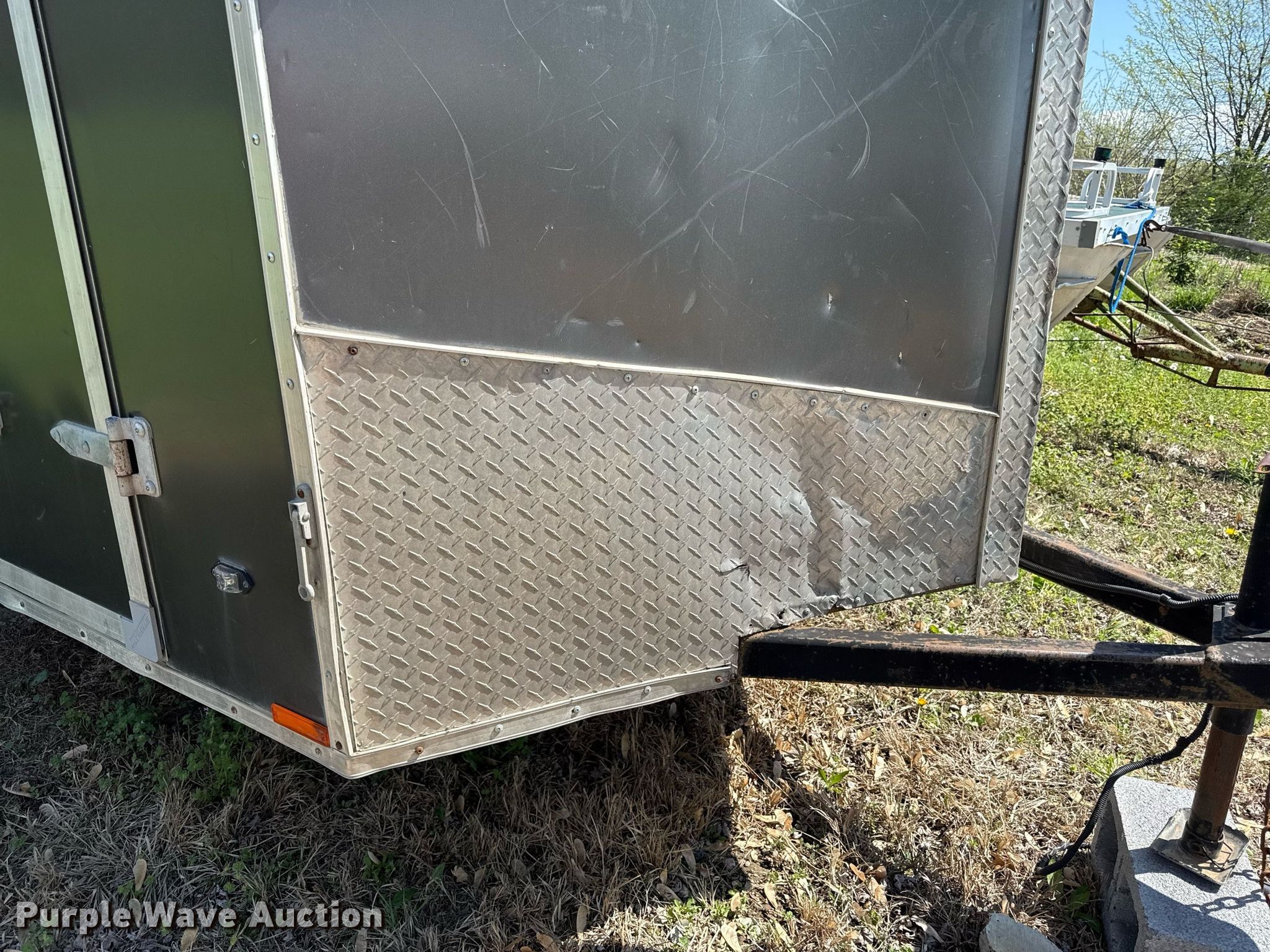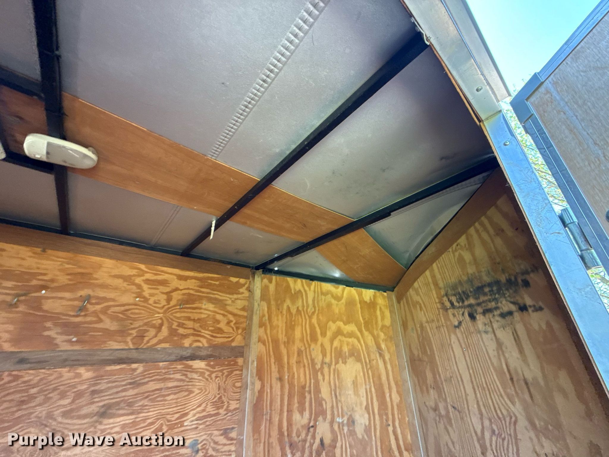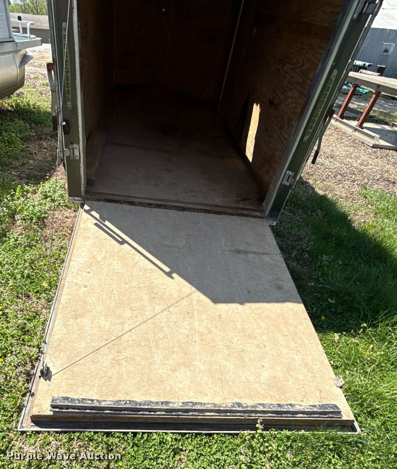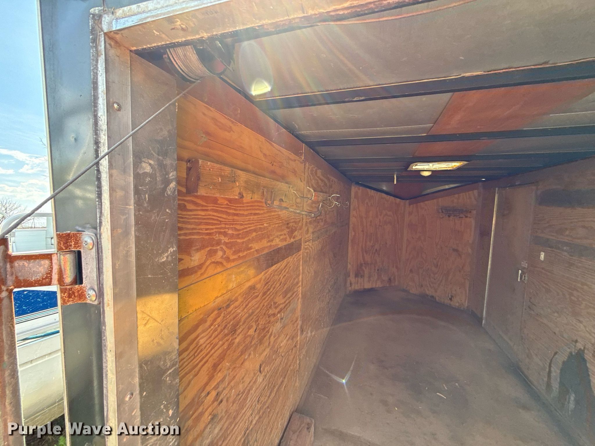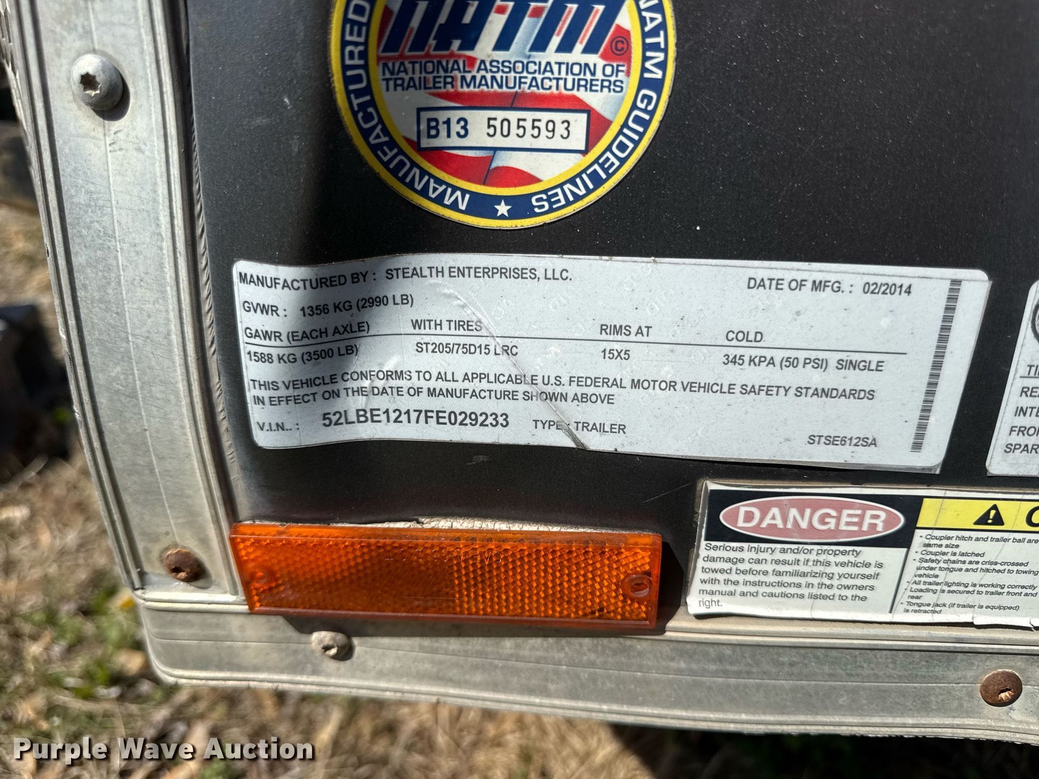 Stealth enclosed cargo trailer. VIN: 52LBE1217FE029233. Dimensions Overall: 16' L x 96" W, Body: 14' L x 76" W, Rear door / ramp 69" L x 69" W. Features Deck type: Wood. Chassis Landing gear: Single, Suspension: Spring. Tires Steel wheels, Size: 205/75R15. Notes Roof vent damaged. Missouri title. Title has a lien that will be released following the close of the auction. Title distribution may be delayed up to 30 days from verification of funds. Raytown, MO 64133