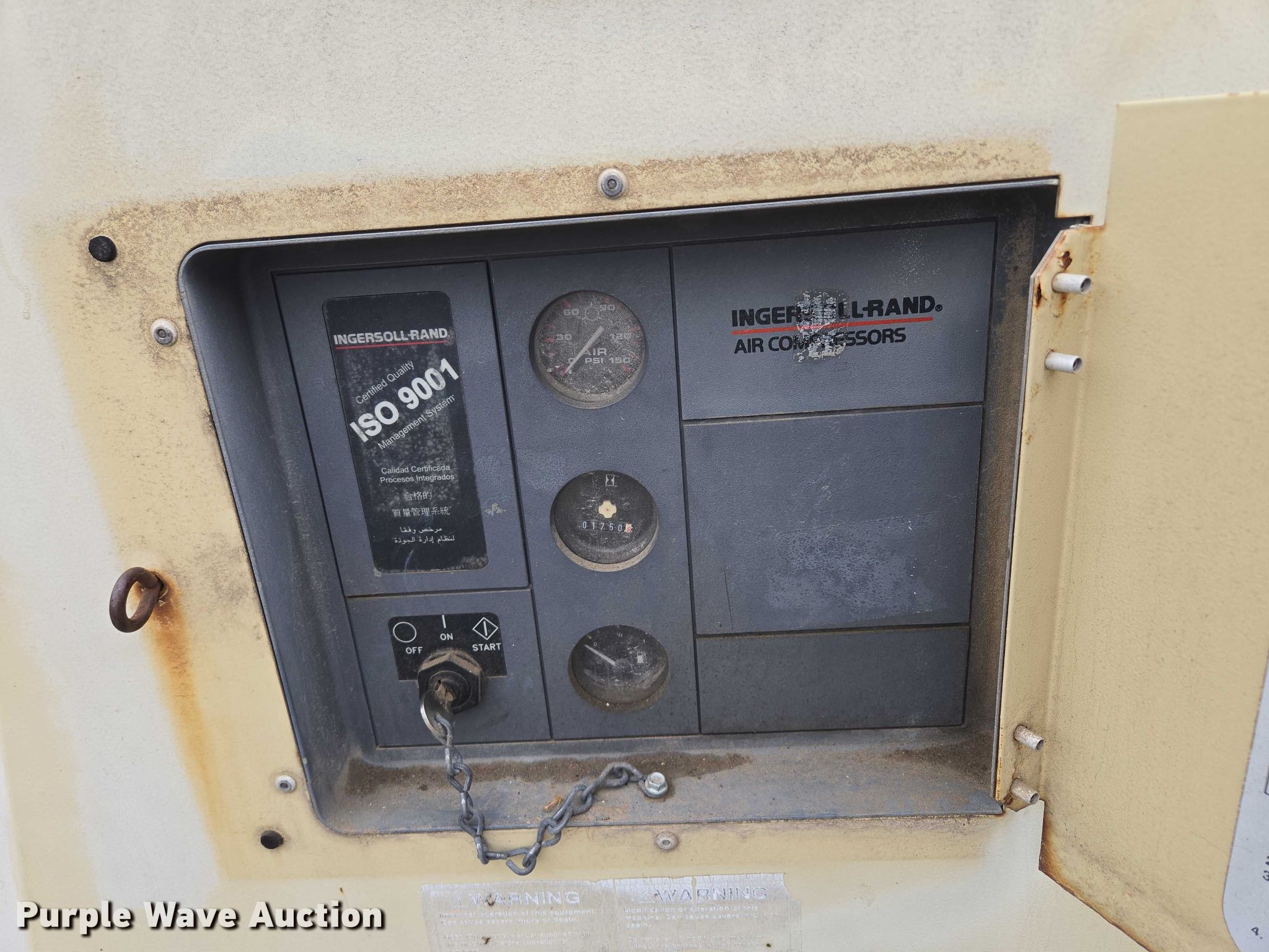 Purple Wave is selling a used Air Compressor in Missouri. This item is a Ingersoll Rand P100WJD air compressor with the following: Hours: 1,751 on meter