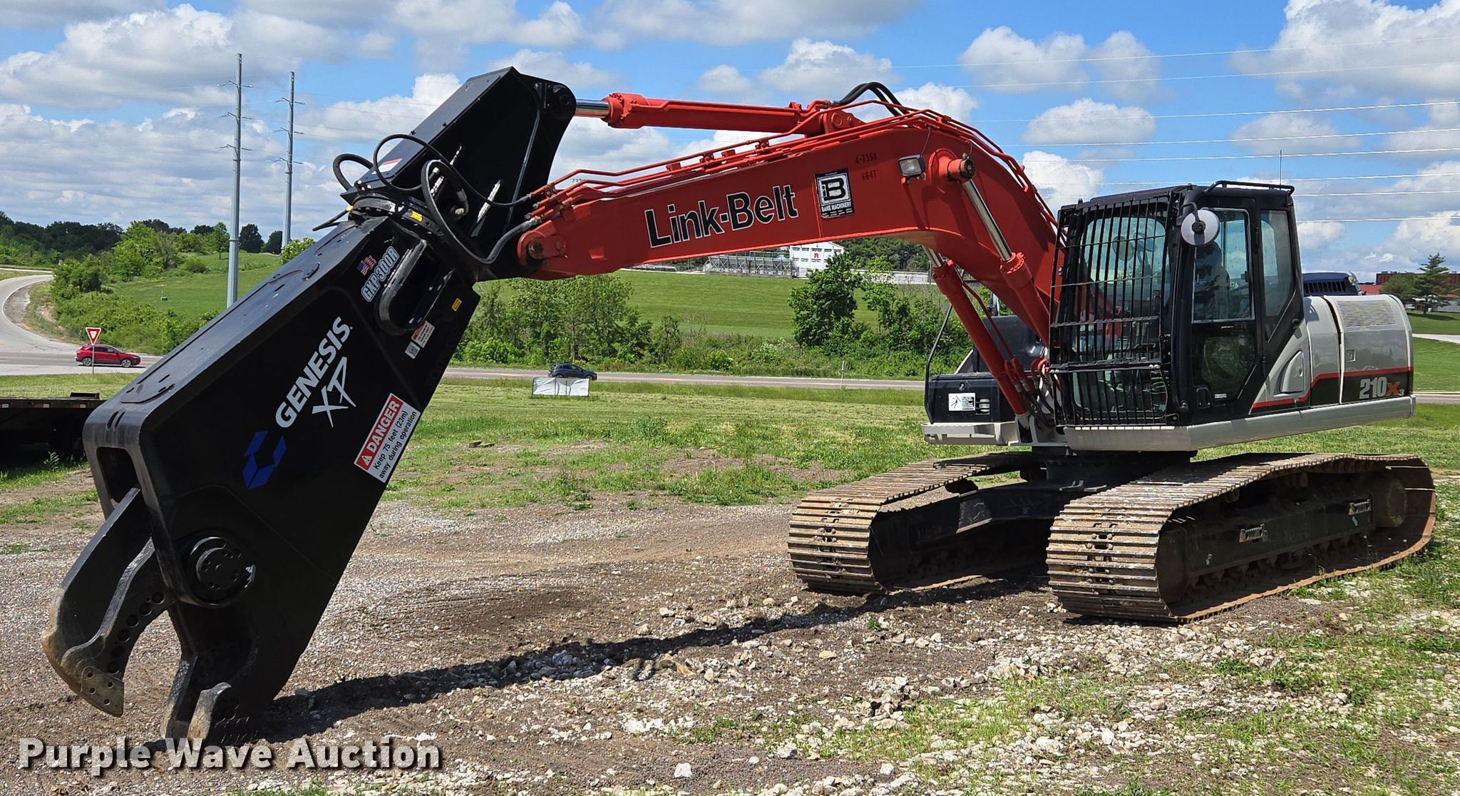 2014 Link-Belt 210X3 excavator. Hours: 2,318 on meter, Serial: EHDK4-7350. Engine Isuzu AM-4HK1X, Displacement: 5.193L, Cylinders: 4, Fuel type: Diesel. Transmission Hydrostatic, Two speed travel. Operators station Enclosed cab, AC, Heat, Backup camera. Features Auxiliary hydraulics, Boom Standard, Shear Genesis GXP300R, Serial: 300469R. Tracks Width: 31.5", Steel, Grouser pads: Triple. Midwest MO Contractors. Richmond, MO 64085