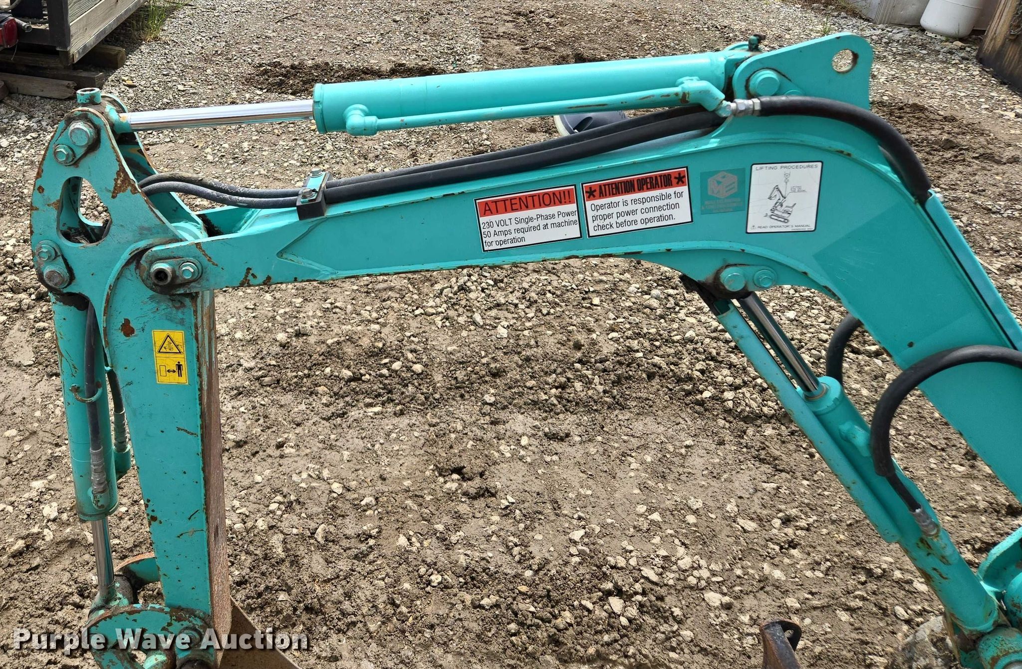 IHI 9VX mini excavator. Hours: 660 on meter, Serial: WB003266. Electric motor Approx. 300' of electrical cable. Transmission Hydrostatic. Operators station OROPS. Features Backfill blade Width: 27.5", Boom Swing, Stick Stick length: 28", Bucket W3, Width: 13", Cutting edge: Weld-on, Teeth: 3. Tracks Width: 7", Rubber. Muse Excavation & Construction. Elwood, KS 66090
