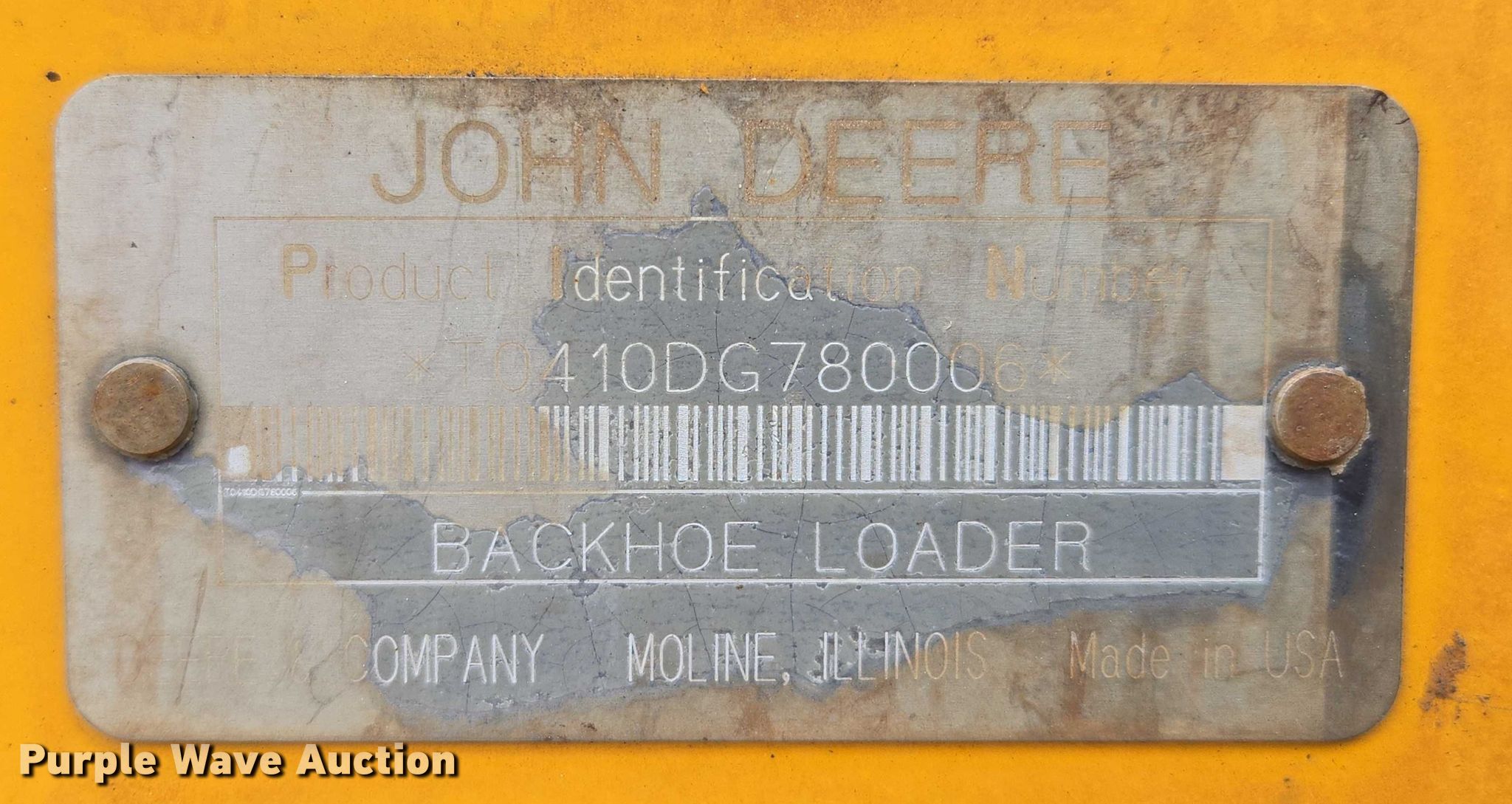 Purple Wave is selling a used Tractor Loader Backhoe in Missouri. This item is a 1991 John Deere 410D backhoe with the following: Hours: 713 on meter, Actual hours unknown, Serial: T0410DG780006