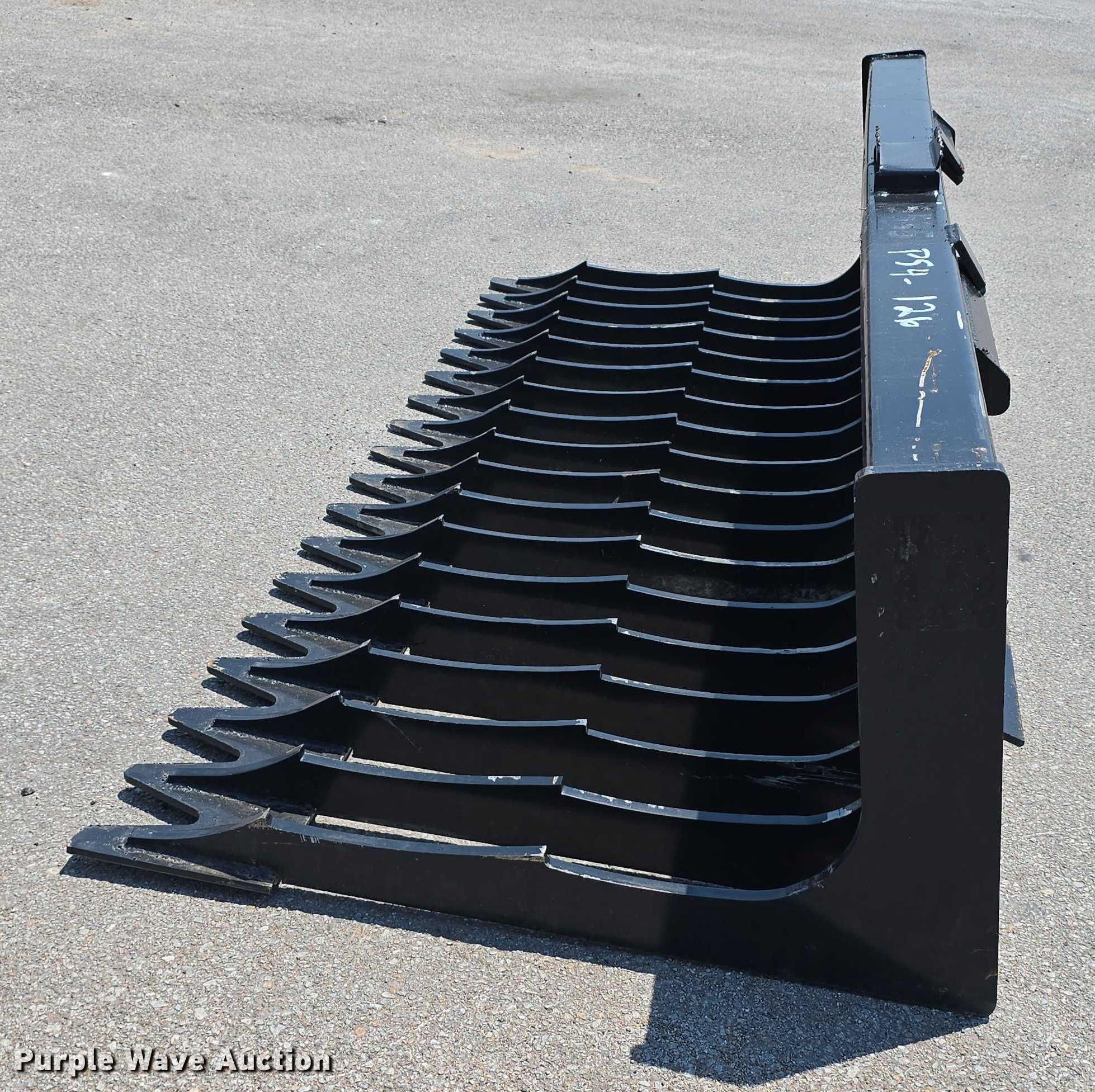 Purple Wave is selling a used Skid Steer Attach. in Nebraska. This item is a 76" W skid steer rock bucket with the following: Unused