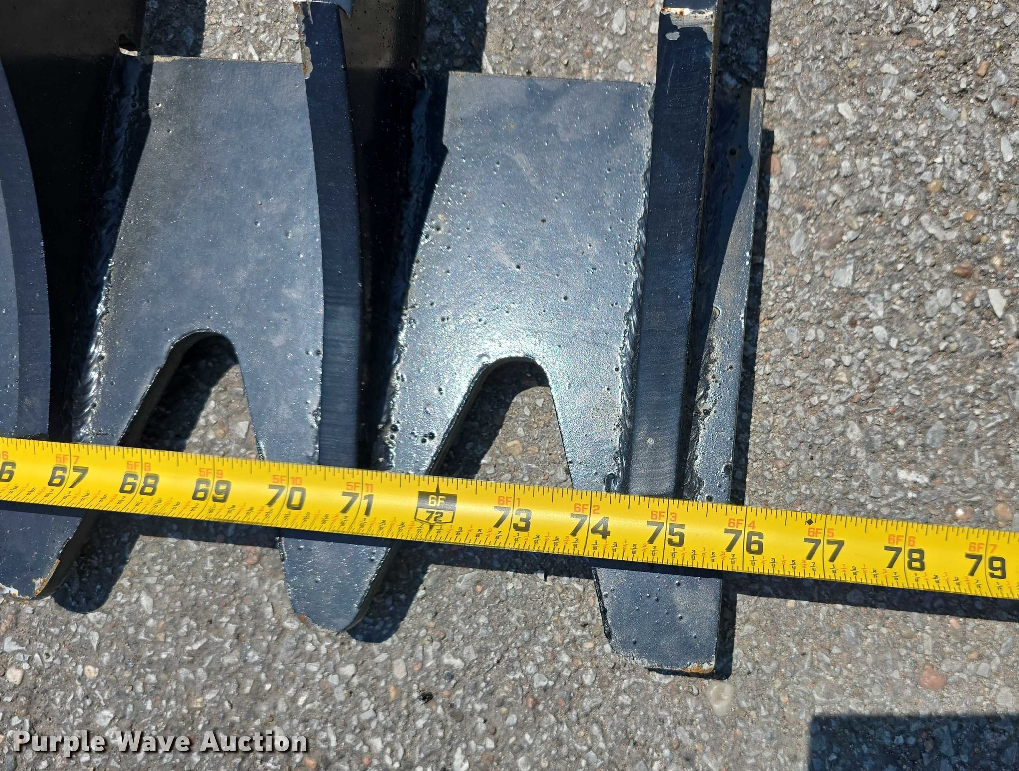 This 76" W skid steer rock bucket will sell to the highest bidder regardless of price.