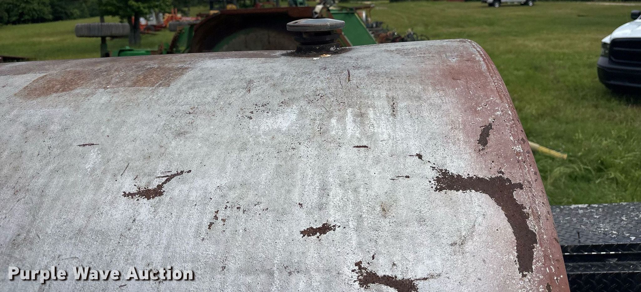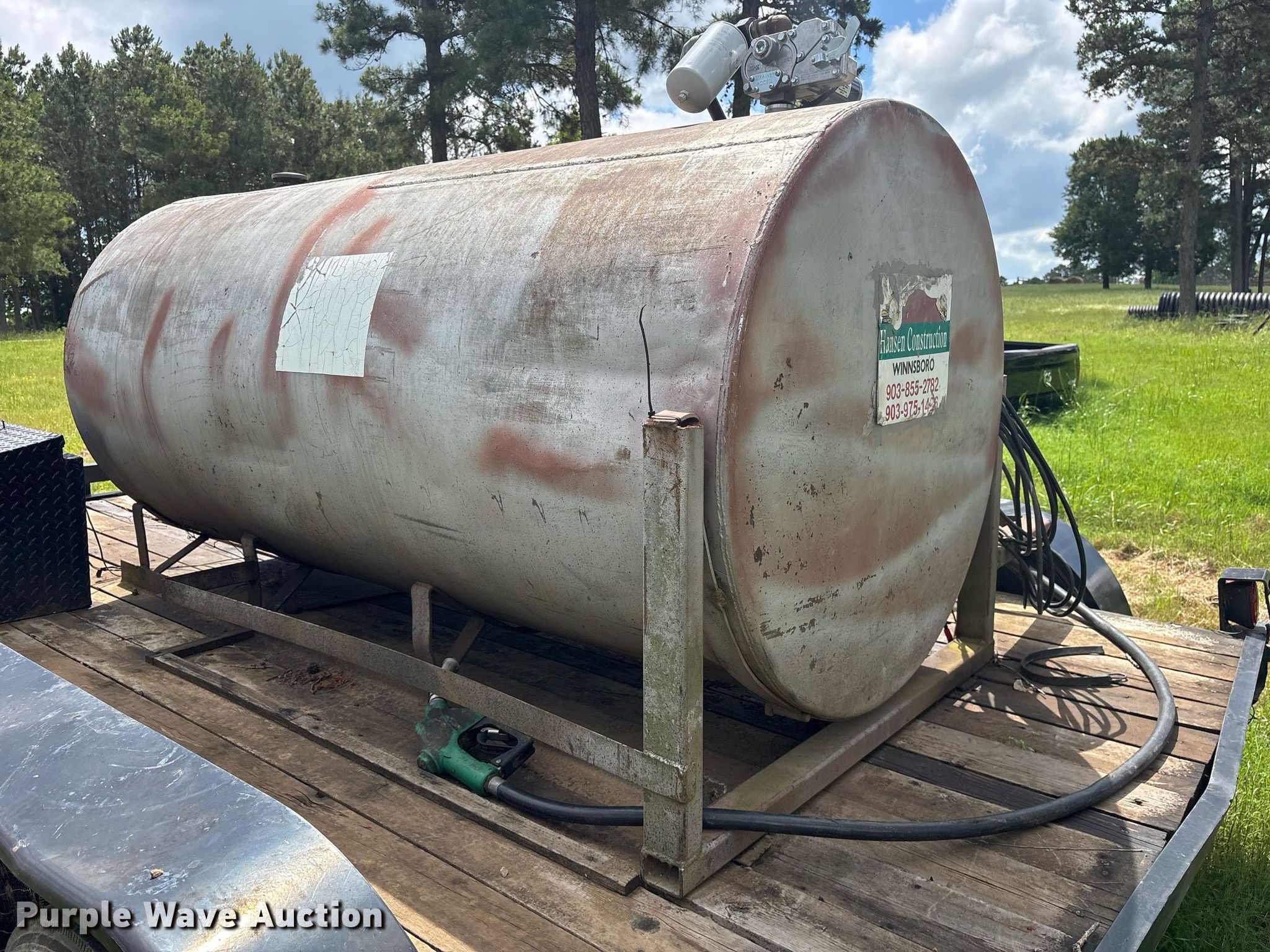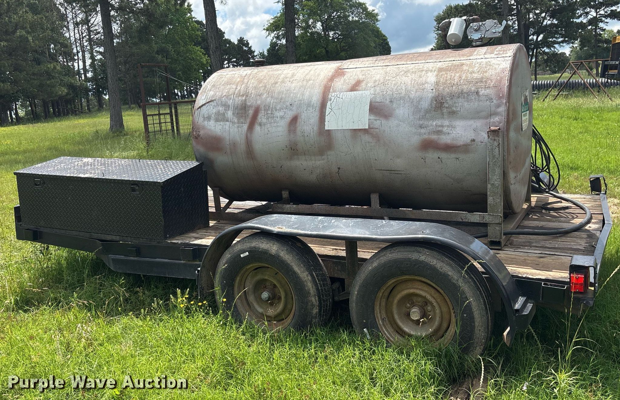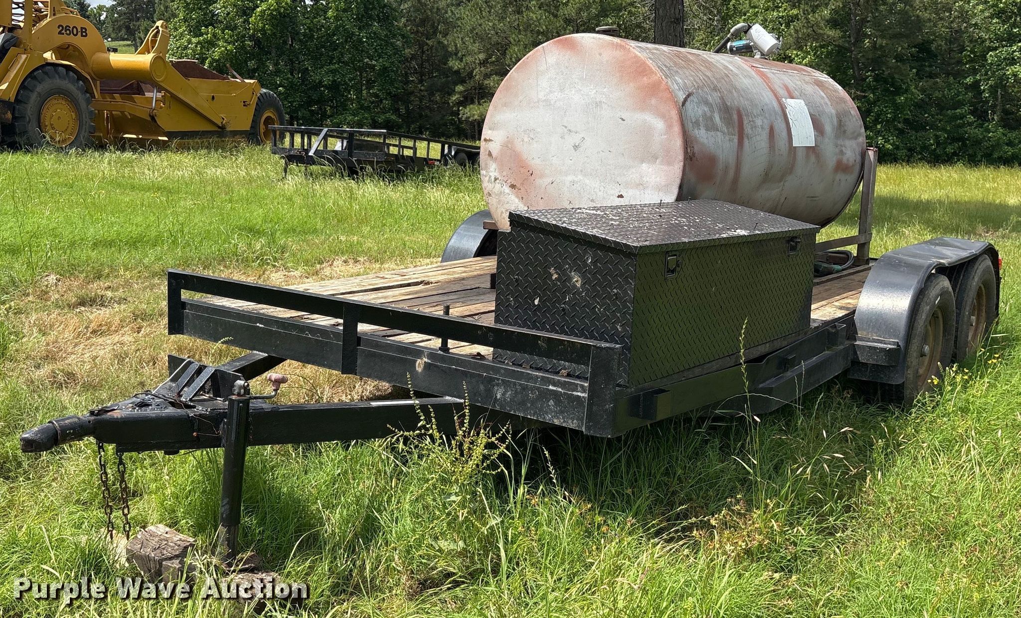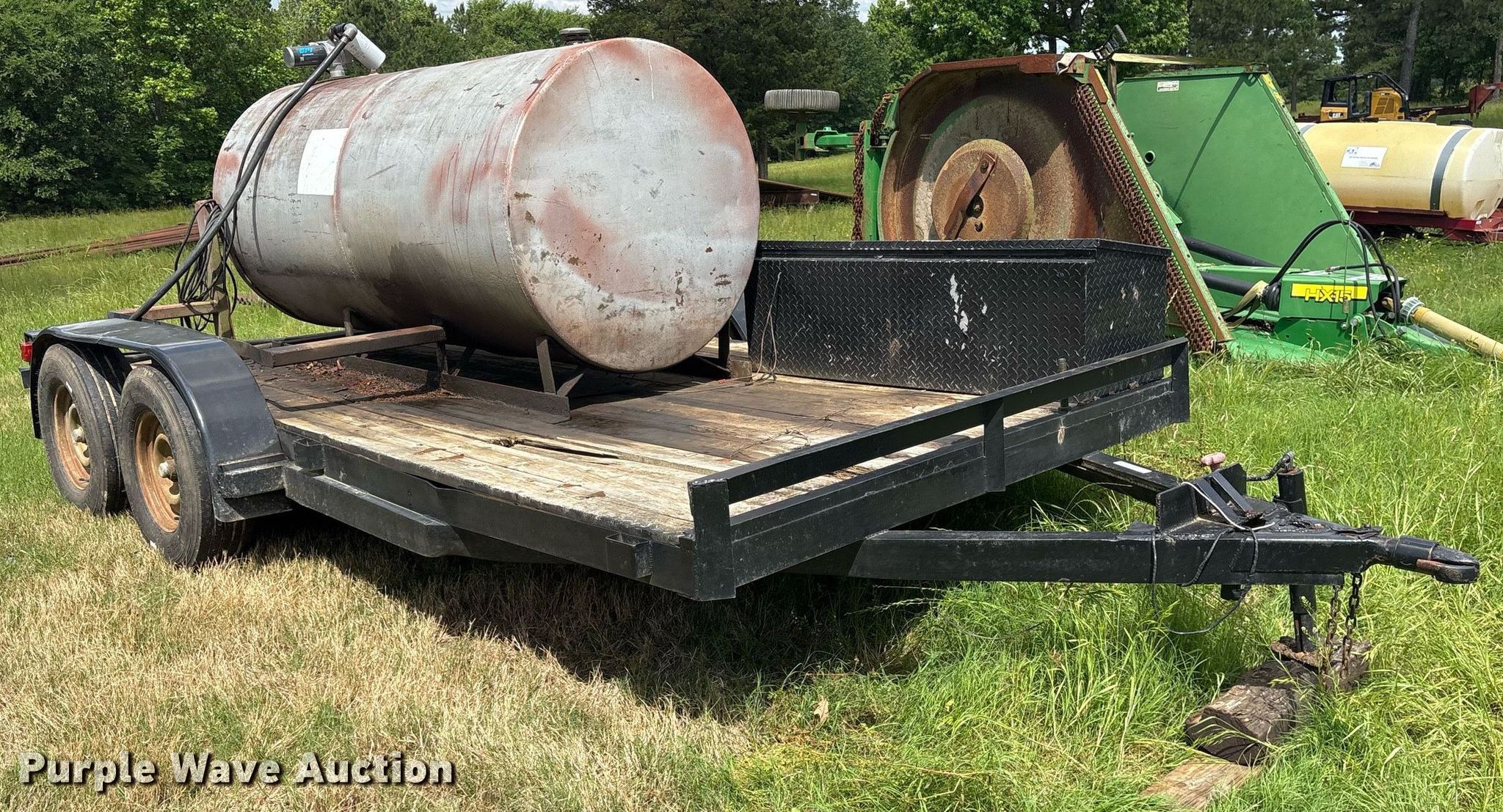 1999 Shop built utility trailer. VIN: 6775. Dimensions Overall: 17' L x 8' 6" W. Features Tank Tank type: Steel, Capacity: 500 gallons, Pump, Hose, Nozzle. Chassis Ball hitch: 2", Landing gear: Single, Suspension: Spring, Axles: Tandem, GVWR: 3,000 lbs. Tires Steel wheels, Size: ST225/75R15. Transfer of ownership documentation will be a bill of sale. Winnsboro, TX 75494