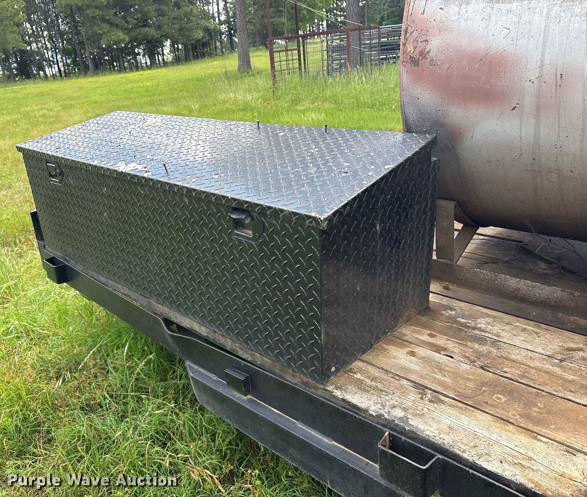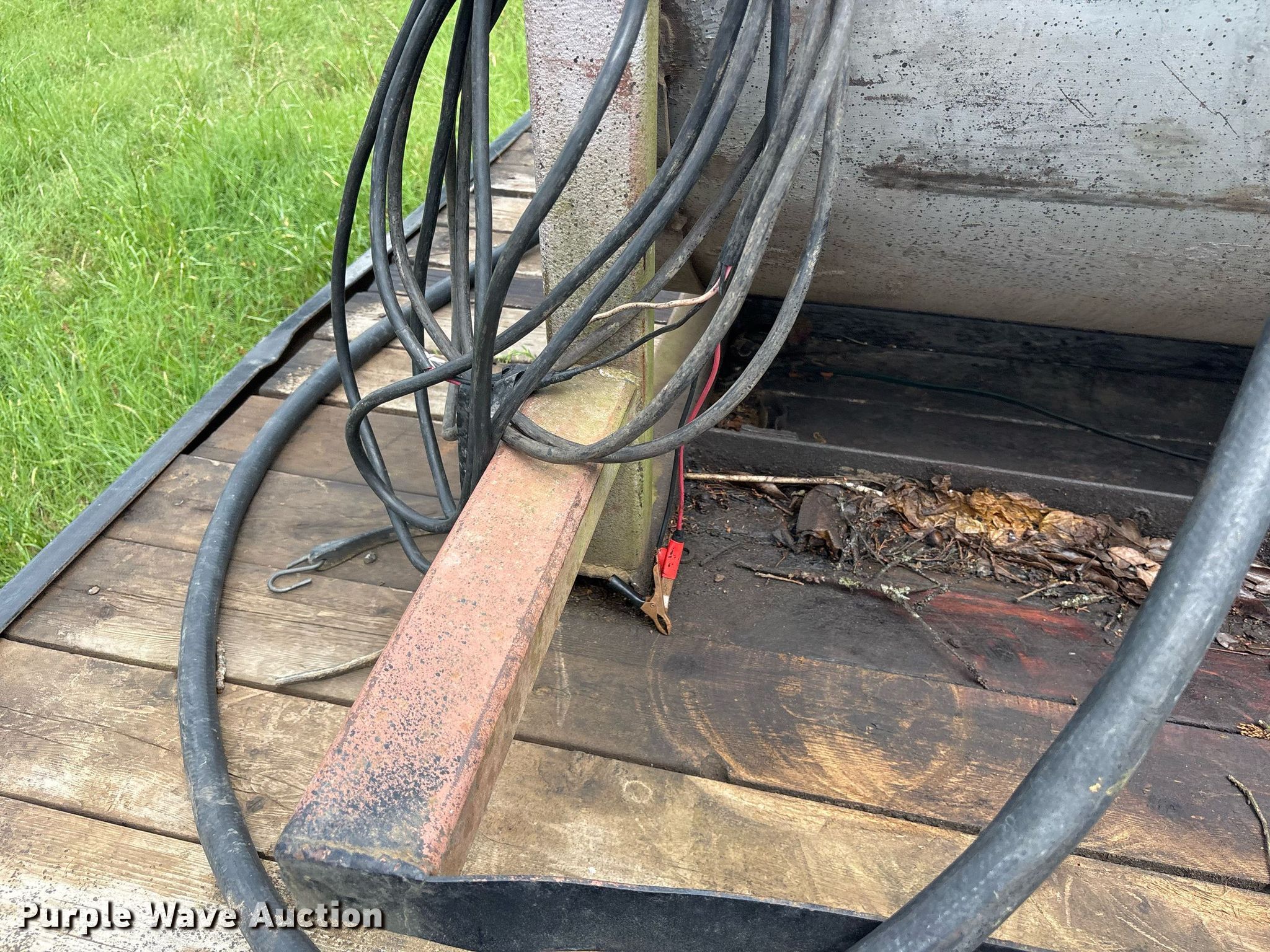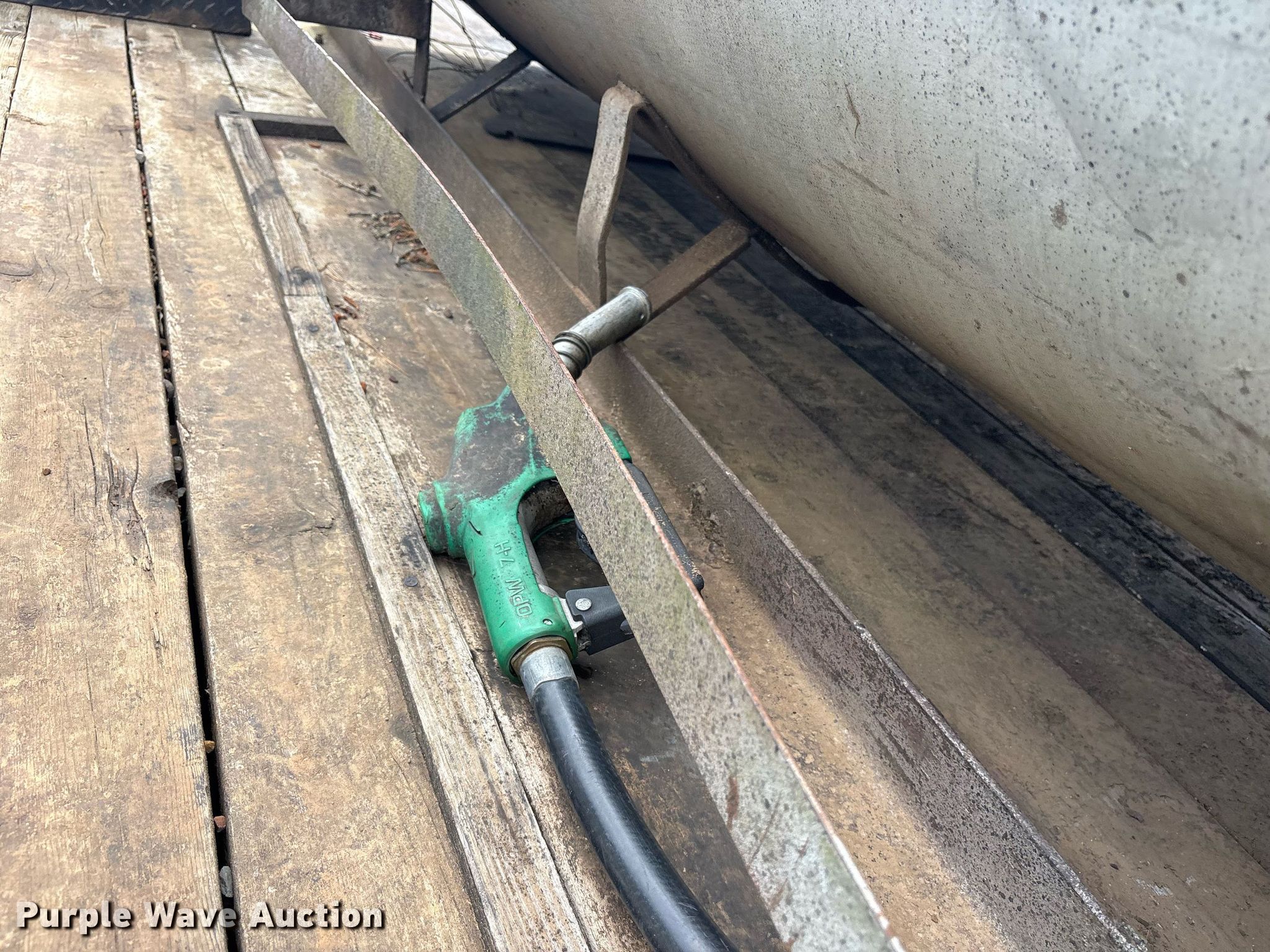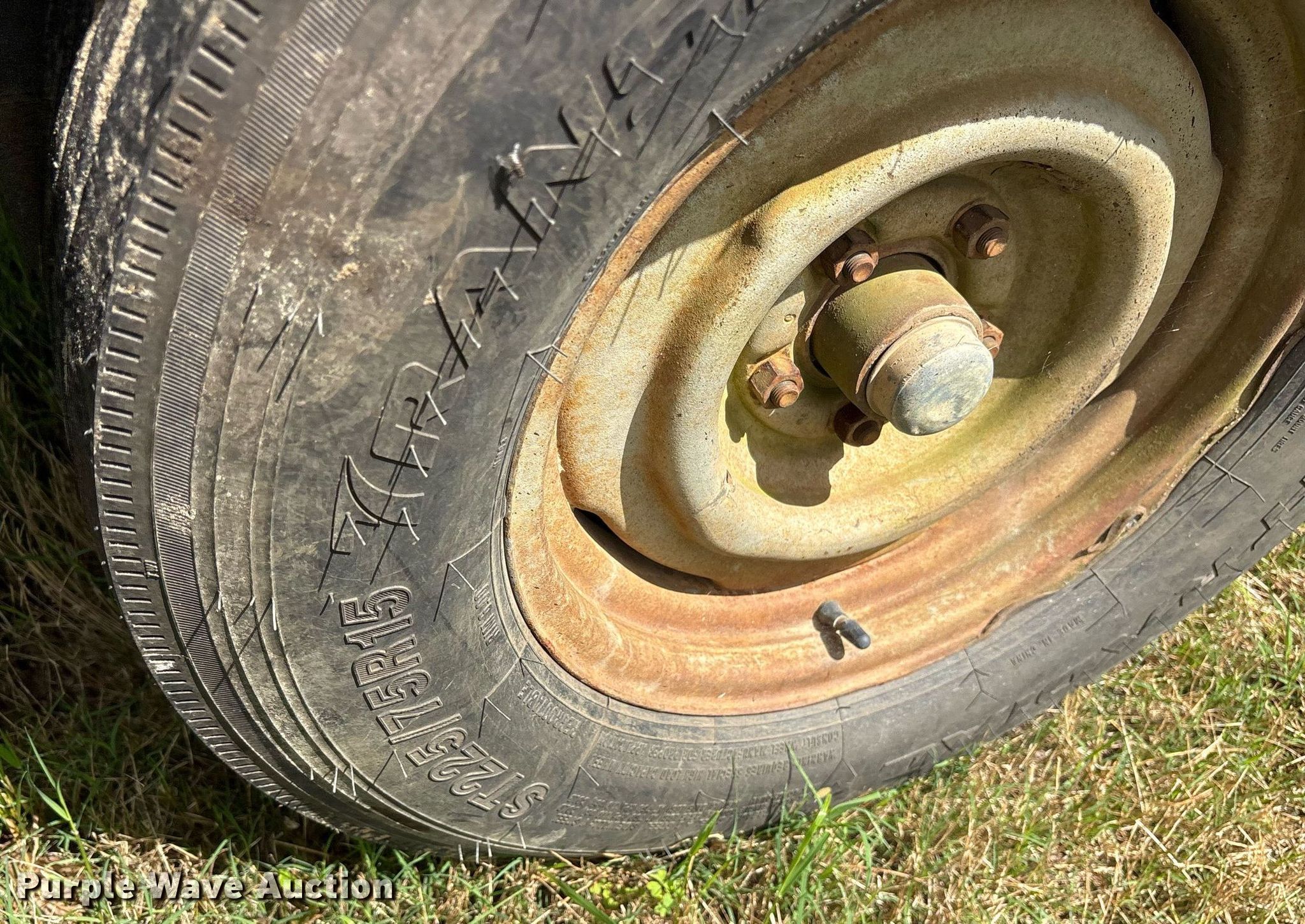 1999 Shop built utility trailer. VIN: 6775. Dimensions Overall: 17' L x 8' 6" W. Features Tank Tank type: Steel, Capacity: 500 gallons, Pump, Hose, Nozzle. Chassis Ball hitch: 2", Landing gear: Single, Suspension: Spring, Axles: Tandem, GVWR: 3,000 lbs. Tires Steel wheels, Size: ST225/75R15. Transfer of ownership documentation will be a bill of sale. Winnsboro, TX 75494
