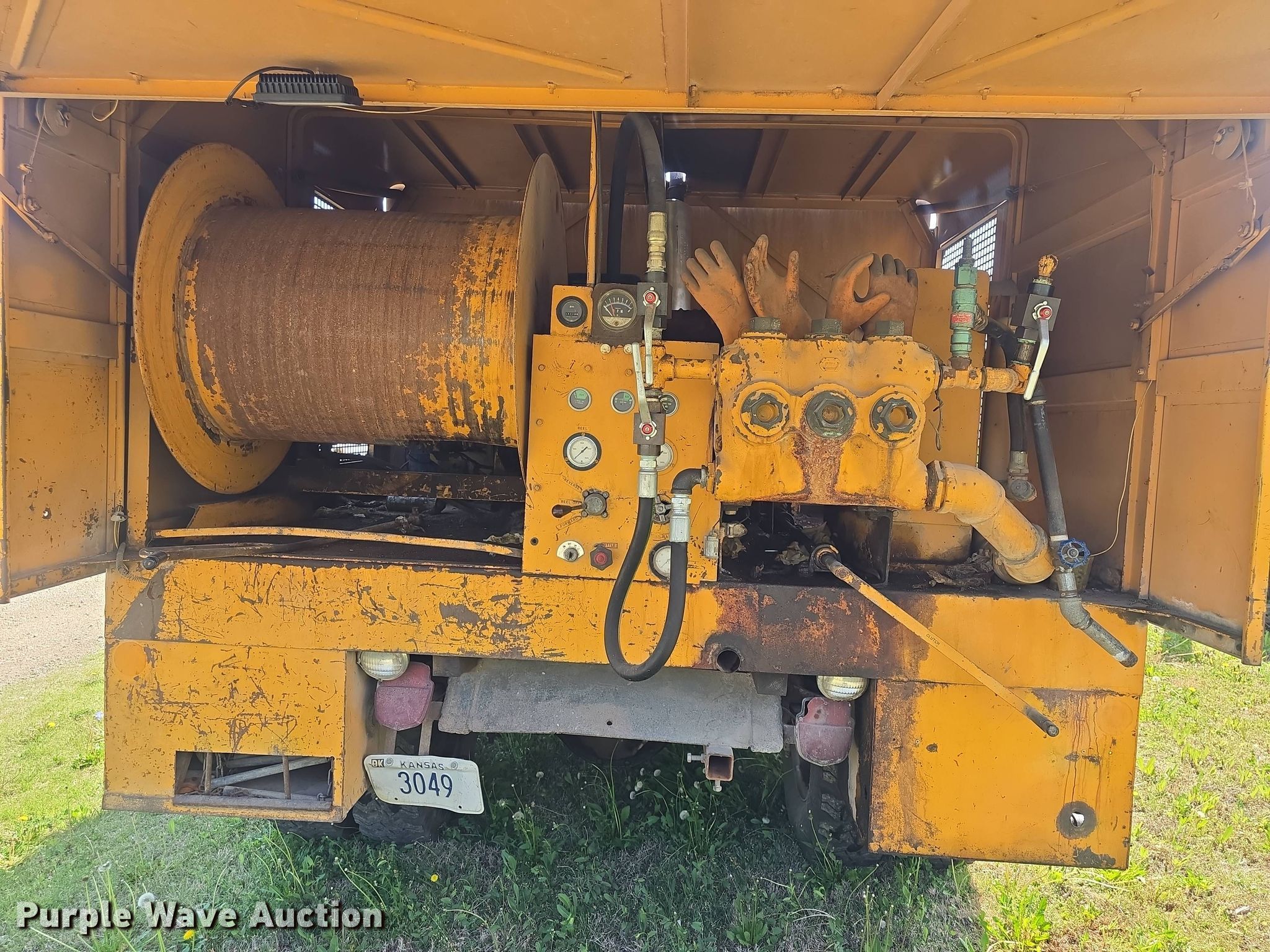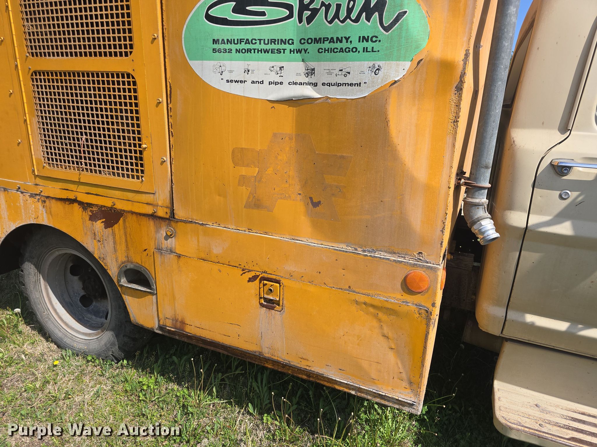 1971 Ford F600 sewer jetter truck. Miles: 36,788 on odometer, VIN: F60CCL42242. Engine Cylinders: 8, Fuel type: Gas, HP: 190. Transmission Manual, Speed: 4, plus 2. Chassis Axles: Single, Suspension: Spring, Brakes: Hydraulic, GVWR: 20,000 lbs, Wheelbase: 156". Interior Heat. Features Tank bed O'Brien, Capacity: 1,000 gallons, Engine Cylinders: 6, Fuel type: Gas, Hours: 1,677, Water pump Twin Disc, Serial: 23712, Hose reel Rear. Tires Size: 8.25-20. Notes Brake master cylinder issues, Pump radiator leak, Water tank leak. Kansas title. Enterprise, KS 67441