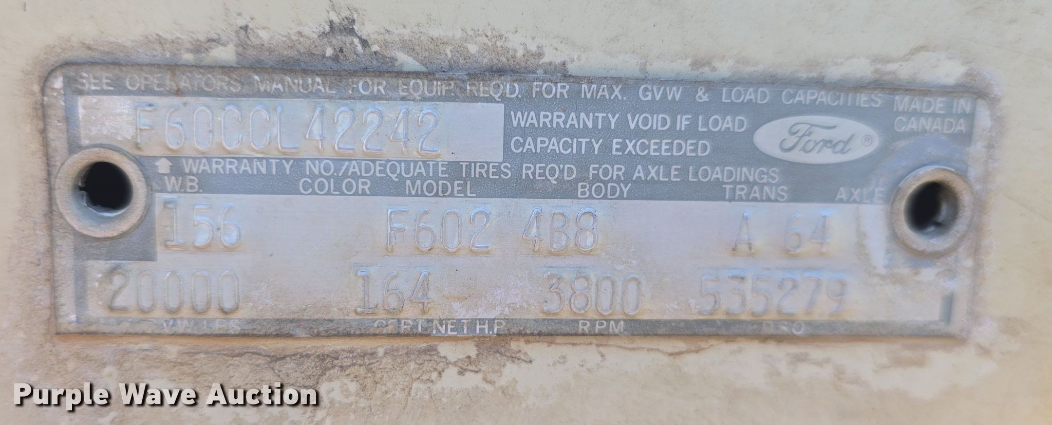 Take a look at this used 1971 Ford F600 sewer jetter truck being sold on July 8th, 2025 in the SOLD! July 08 Government Auction made by Ford. Take a look at all of the item information below or take a look at similar auctions for Construction Trucks.