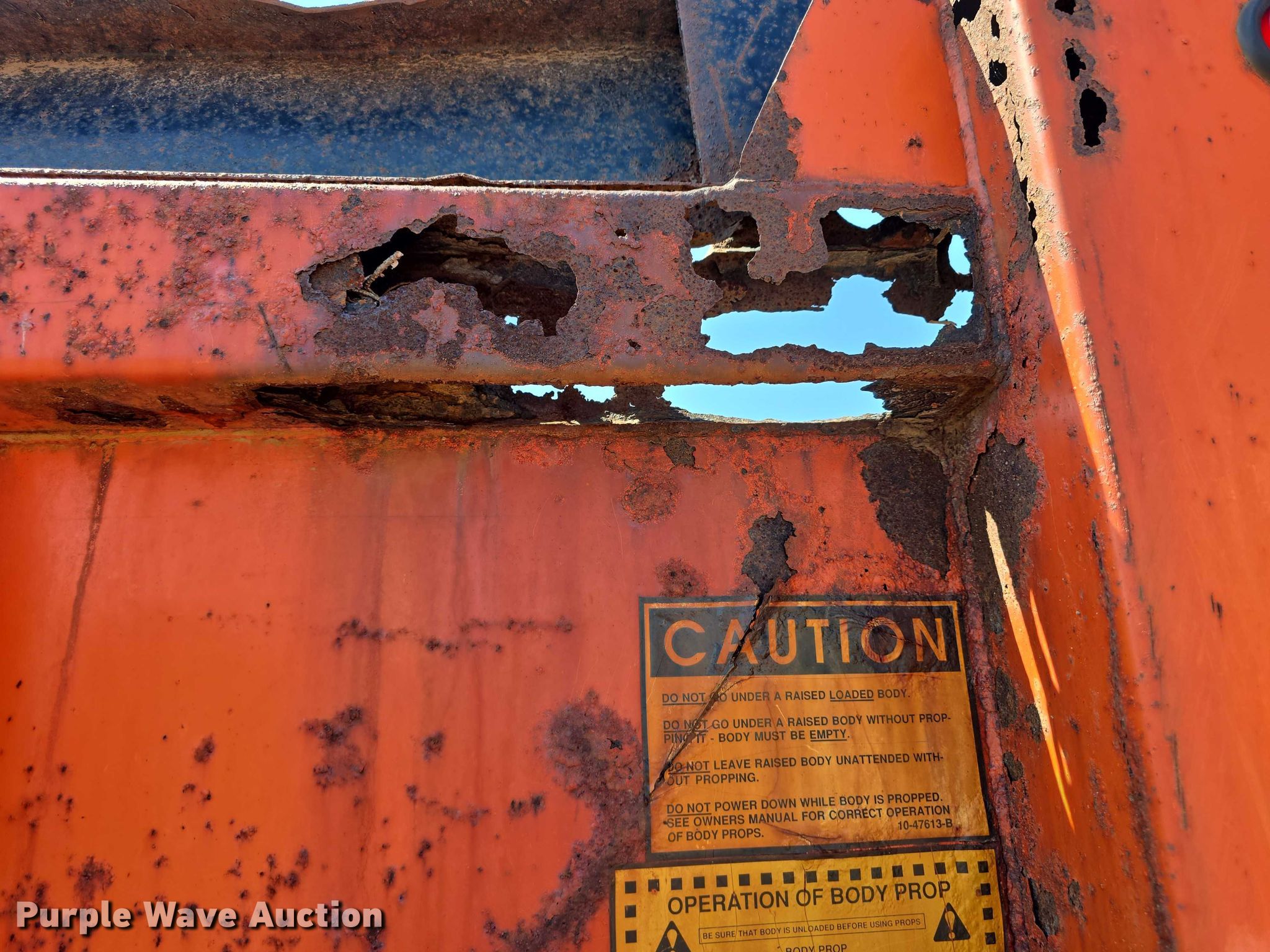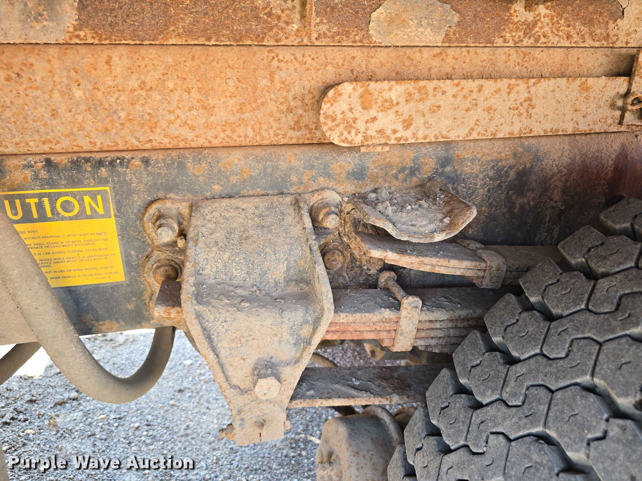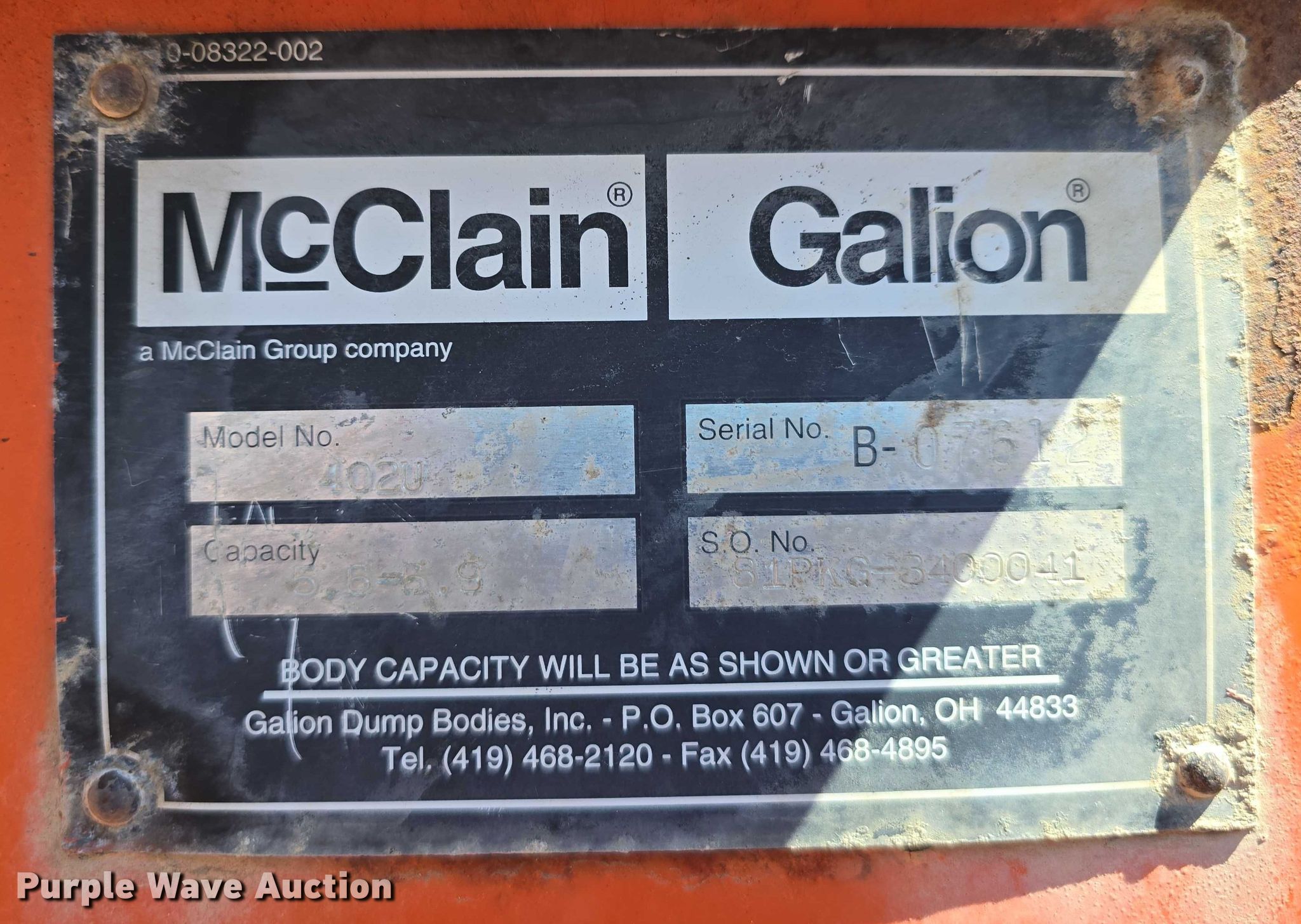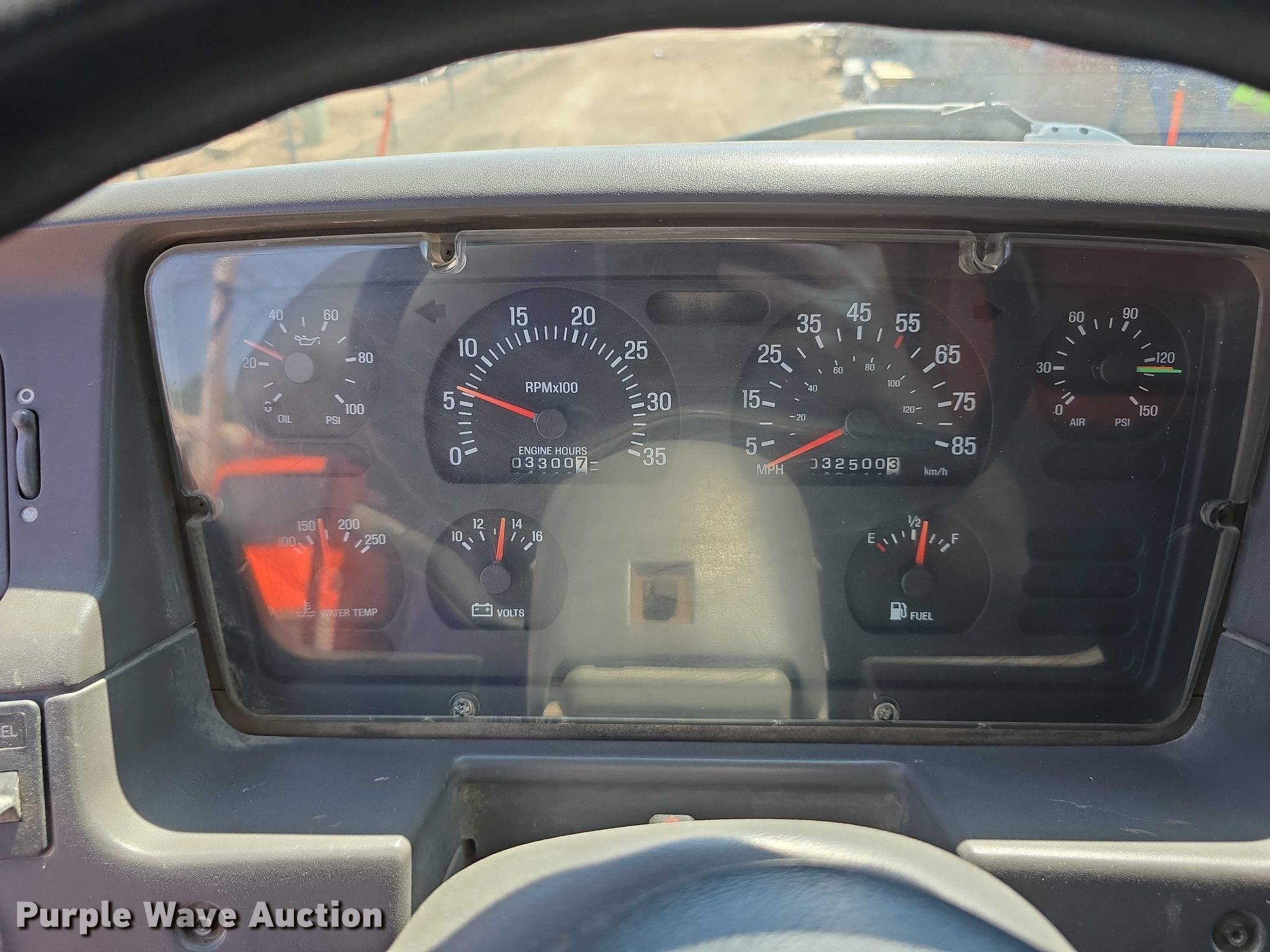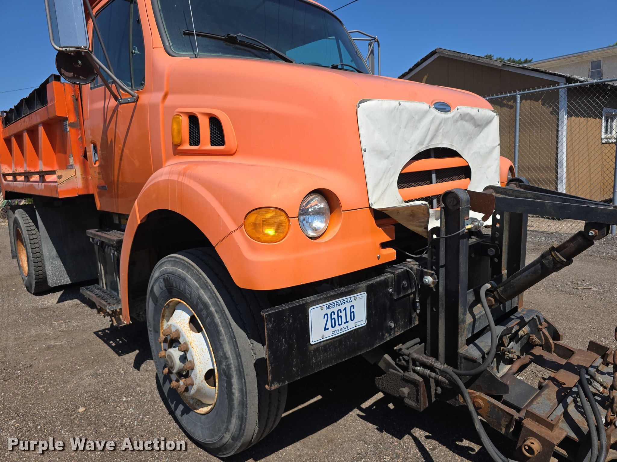 2000 Sterling L-Line dump truck. Miles: 32,500 on odometer, Hours: 3,301 on meter, VIN: 2FZHRJABXYAB00210. Engine Caterpillar 3126, Serial: 7AS69546, Displacement: 7.2L, Cylinders: 6, Fuel type: Diesel, HP: 330. Transmission Allison, Automatic. Chassis Axles: Single, Suspension: Spring, Brakes: Air, PTO, Front mount PTO, GVWR: 36,220 lbs FAWR: 13,220 lbs, RAWR: 23,000 lbs, Wheelbase: 166". Interior Heat, Cruise control. Features Dump bed McClain Galion 402U, 10' L x 96" W, Side height: 26", Side board height: 8", Bed type: Steel, Ram: Single, End gate: Manual, Plow Width: 132". Tires Size: 11R22.5. Nebraska title. City of Kearney, NE. Kearney, NE 68847