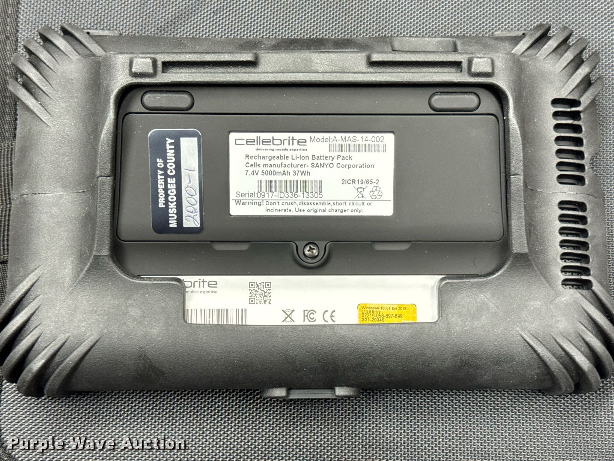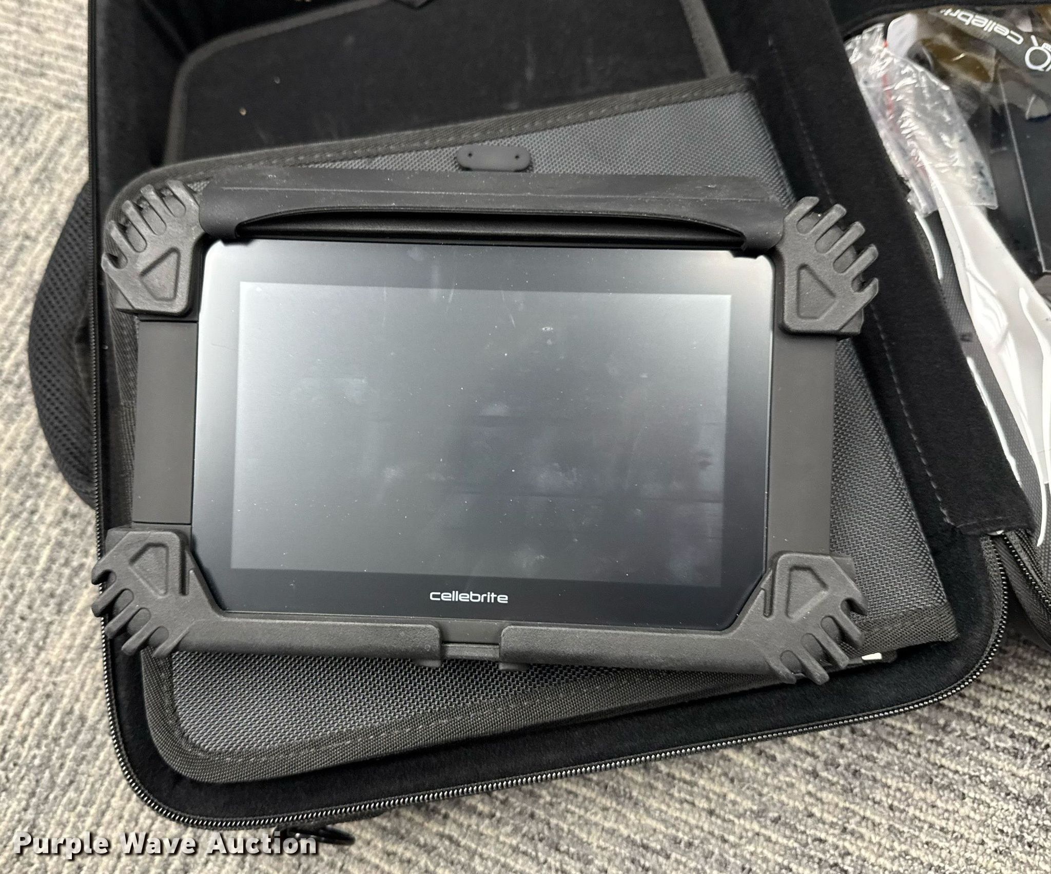 Purple Wave is selling a used Electronics in Oklahoma. This item is a Cellebrite universal forensics extraction device with the following: Serial: 7208286, (3) Cellebrite UFED SIM cards, Battery, Tablet, Case
