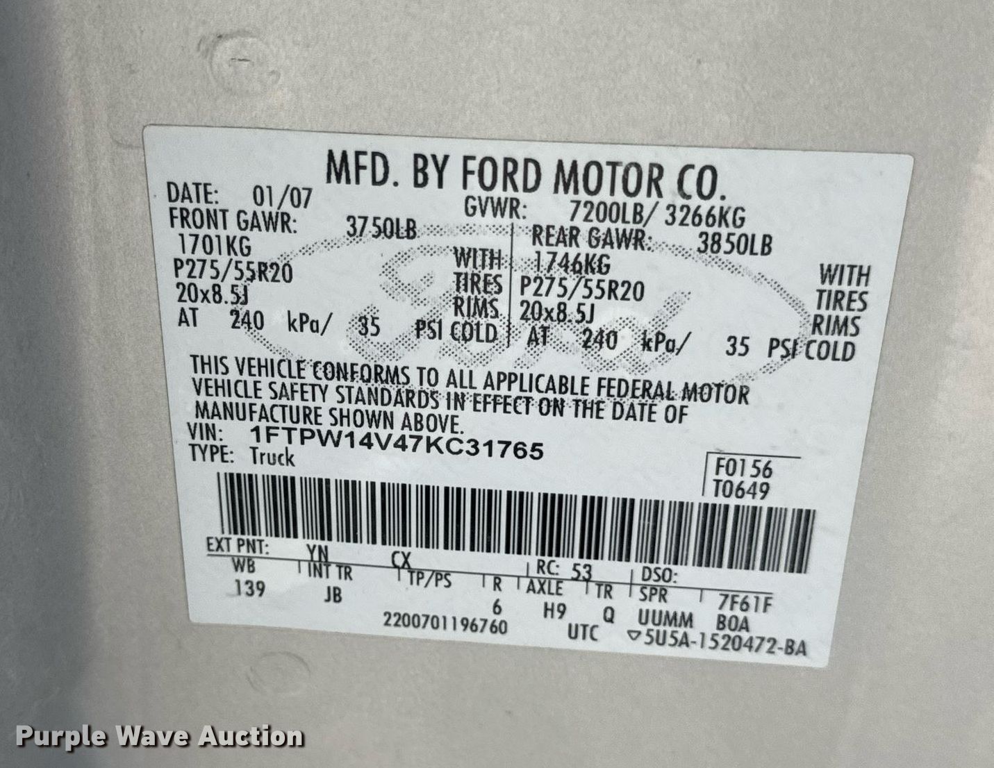 Take a look at this used 2007 Ford F150 SuperCrew pickup truck being sold on July 8th, 2025 in the SOLD! July 08 Government Auction made by Ford. Take a look at all of the item information below or take a look at similar auctions for Pickups and Vans.