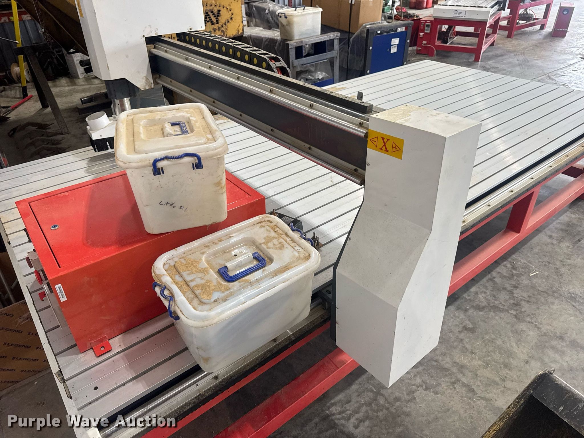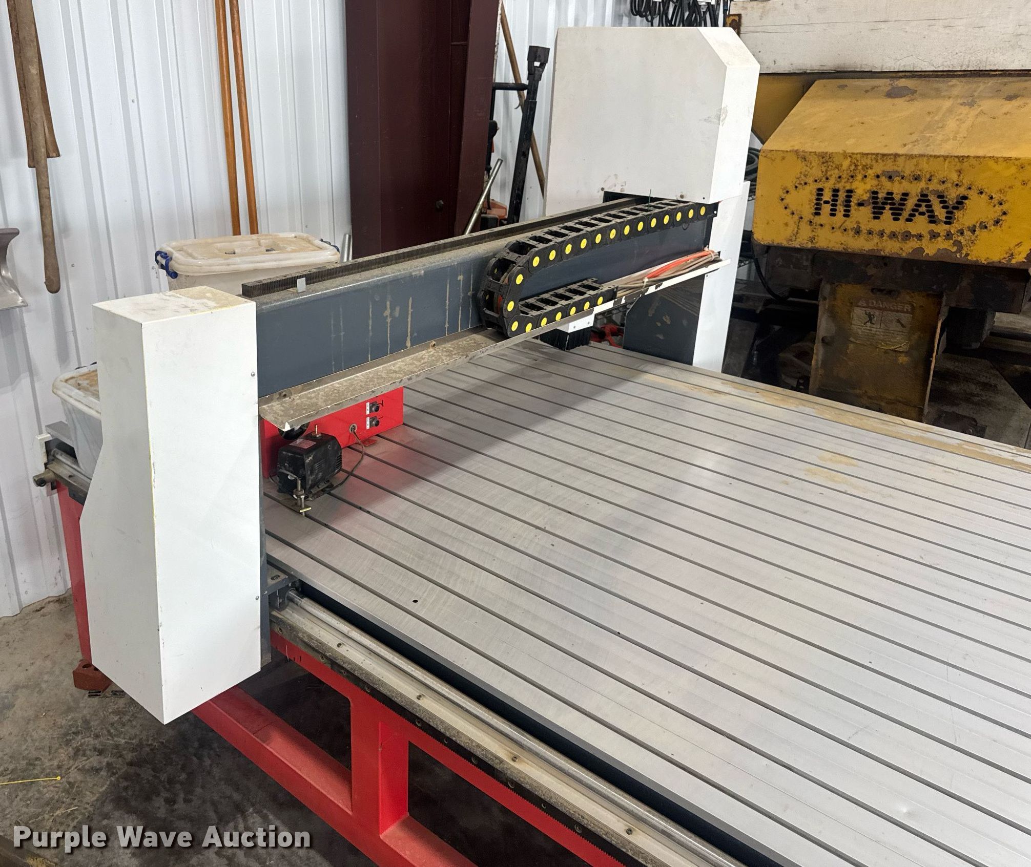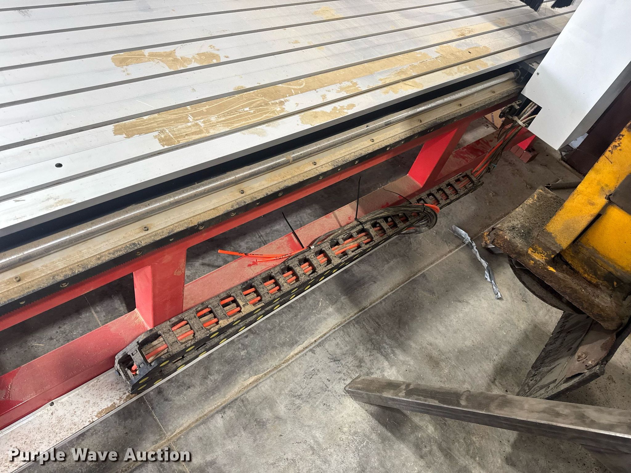 Purple Wave is selling a used Lathe CNC in Missouri. This item is a CNC router table with the following: 11' 4" L x 63.75" W, Sliding X & Y axis, Router, Control box