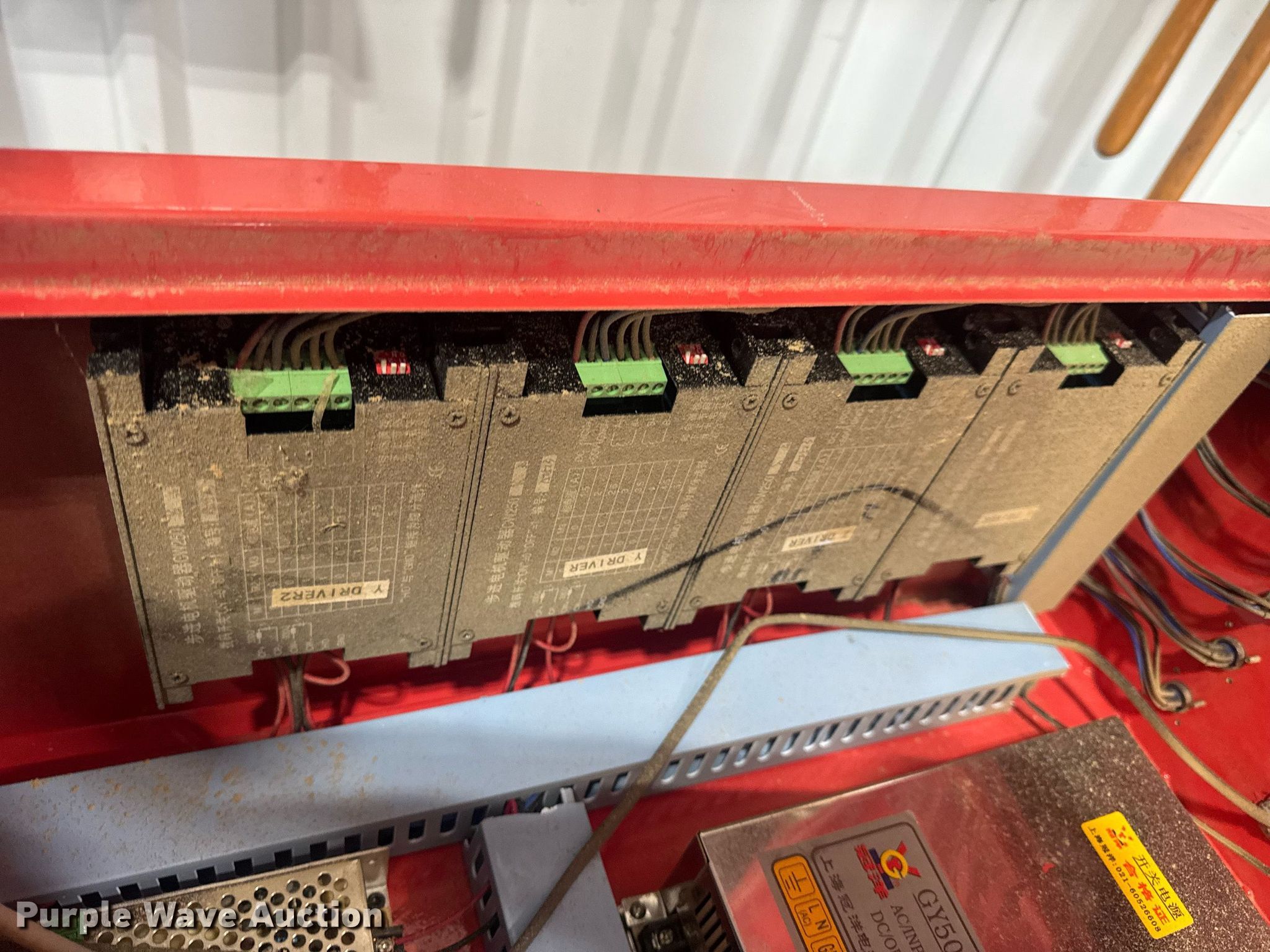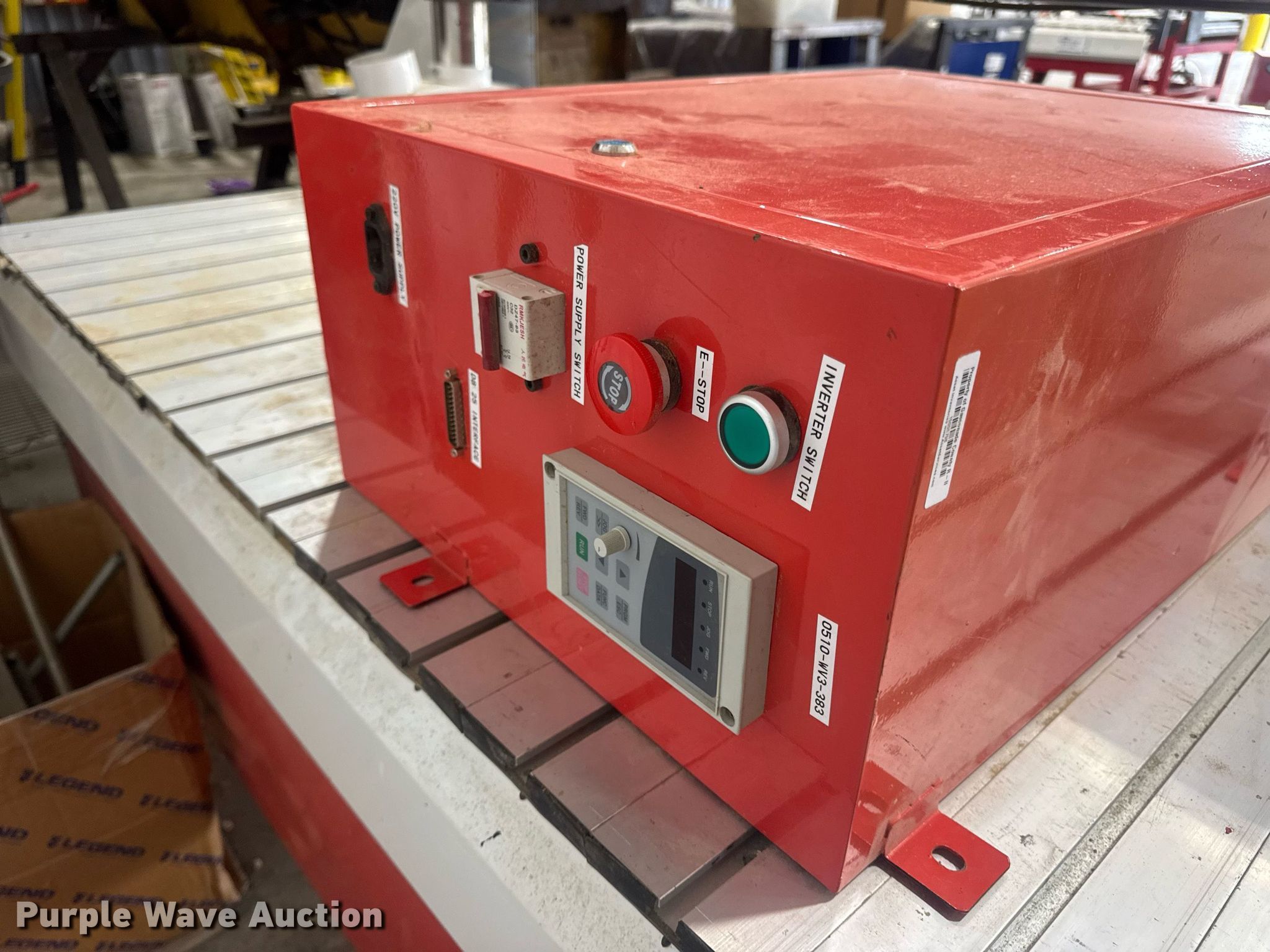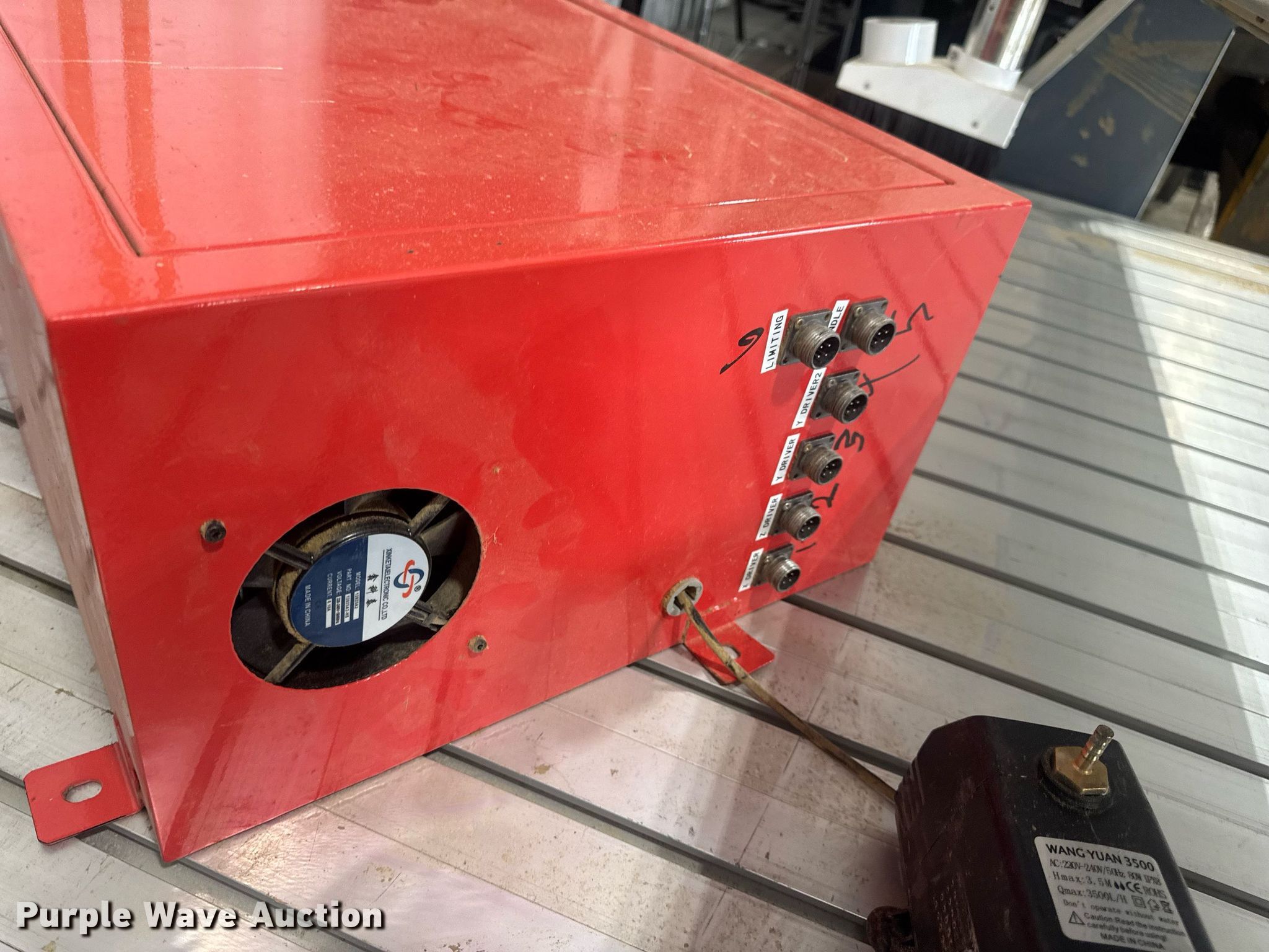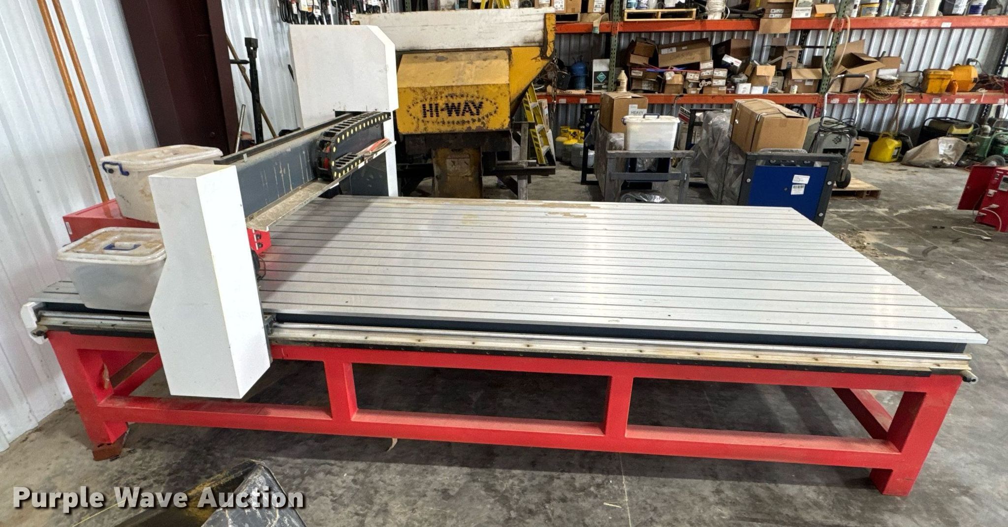 Purple Wave is selling a used Lathe CNC in Missouri. This item is a CNC router table with the following: 11' 4" L x 63.75" W, Sliding X & Y axis, Router, Control box