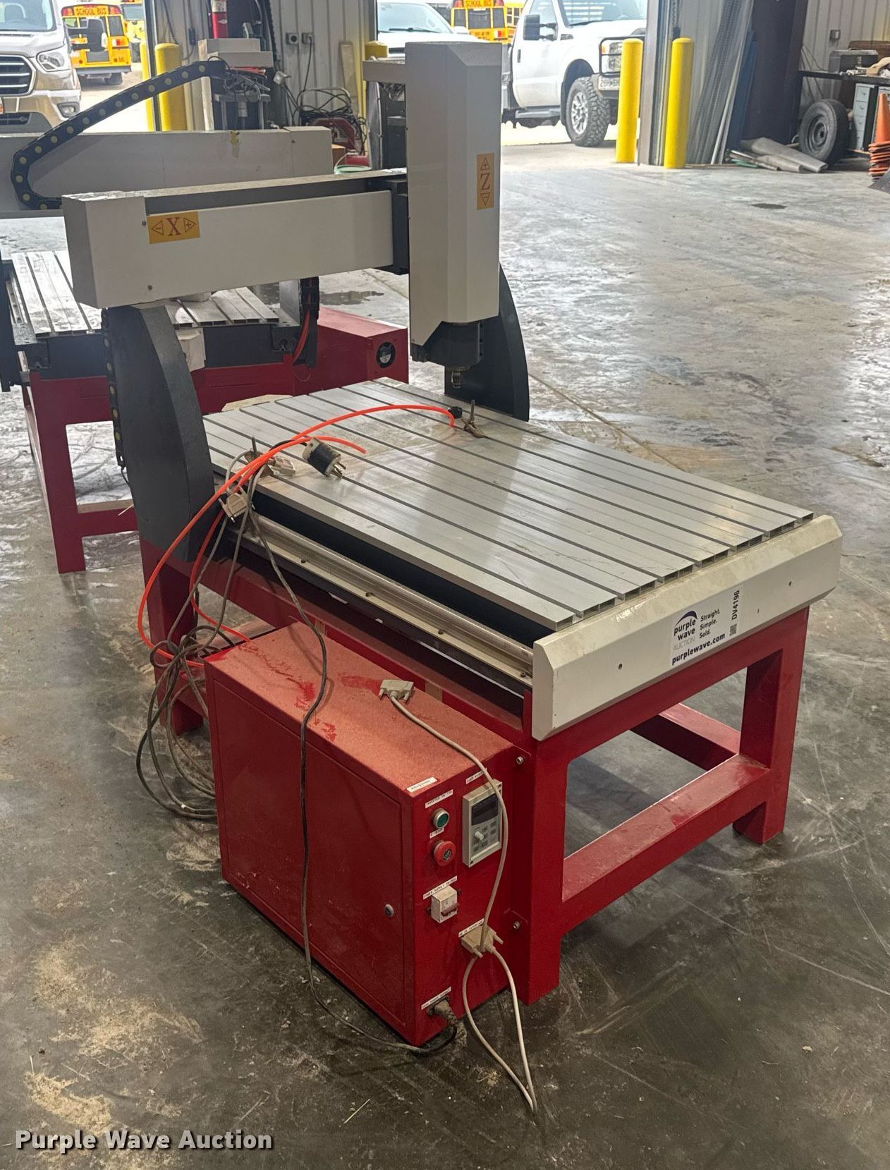 Purple Wave is selling a used Lathe CNC in Missouri. This item is a CNC router table with the following: 50.5" L x 27.75" W, Sliding X & Y axis, Router, Control box