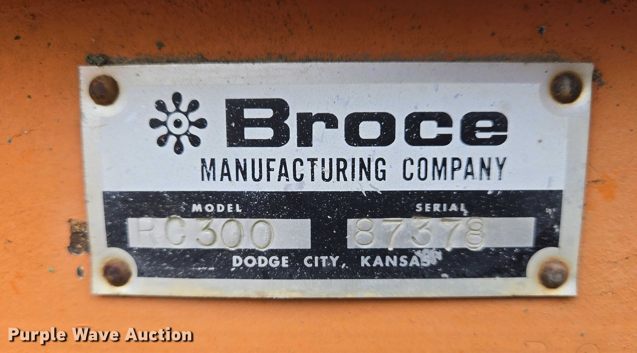 Purple Wave is selling a used Broom in Missouri. This item is a Broce Manufacturing RC300 broom with the following: Hours: 1,710 on meter, Serial: 87378
