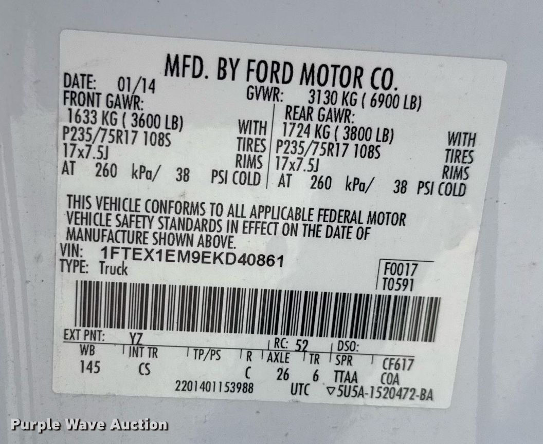 Purple Wave is selling a used 1/2 Ton Pickup or Van in Texas. This item is a 2014 Ford F150 XL SuperCab pickup truck with the following: Miles: 57,957 on odometer, VIN: 1FTEX1EM9EKD40861, Unit #: 51101
