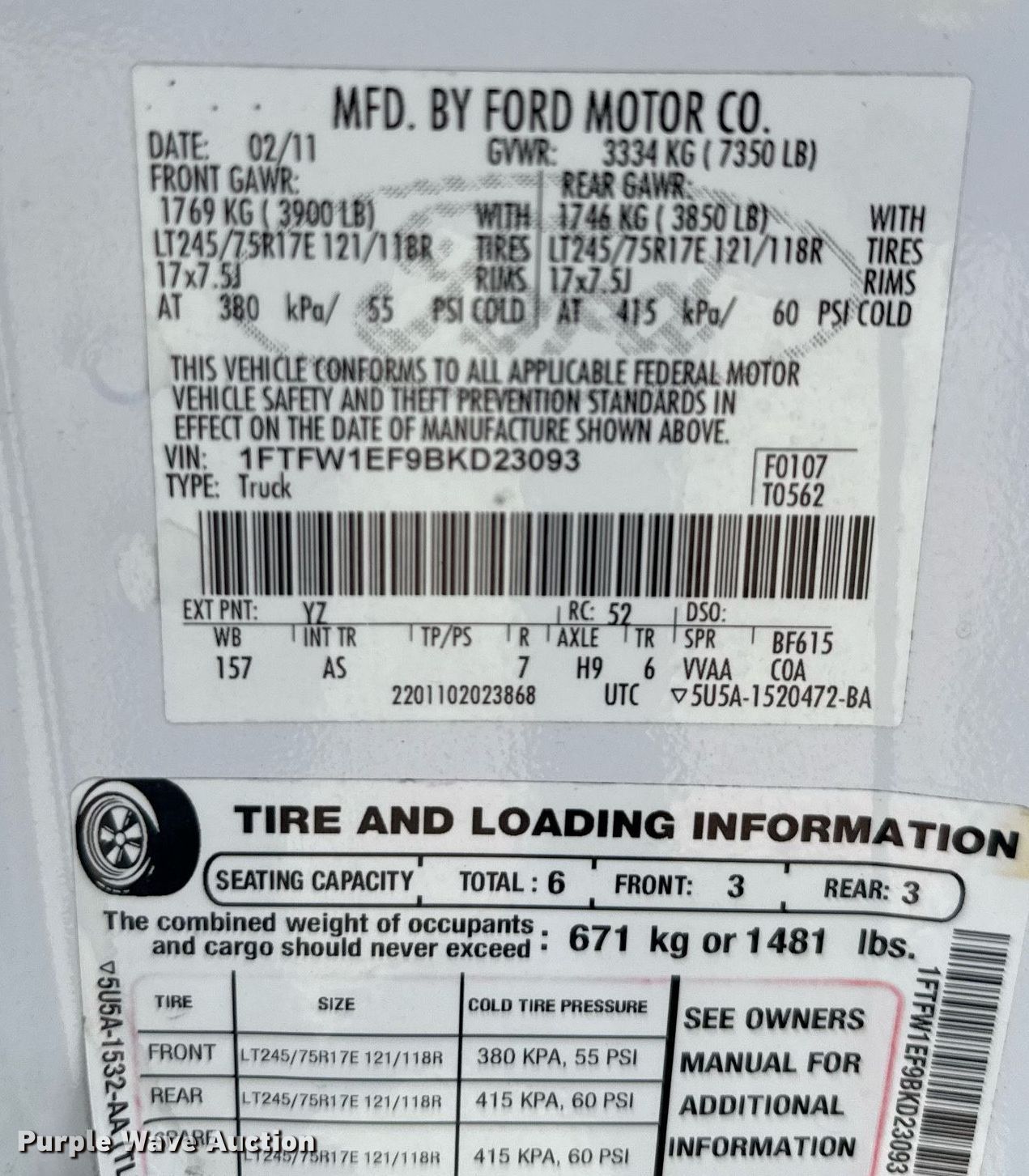 - VIN: 1FTFW1EF9BKD23093
