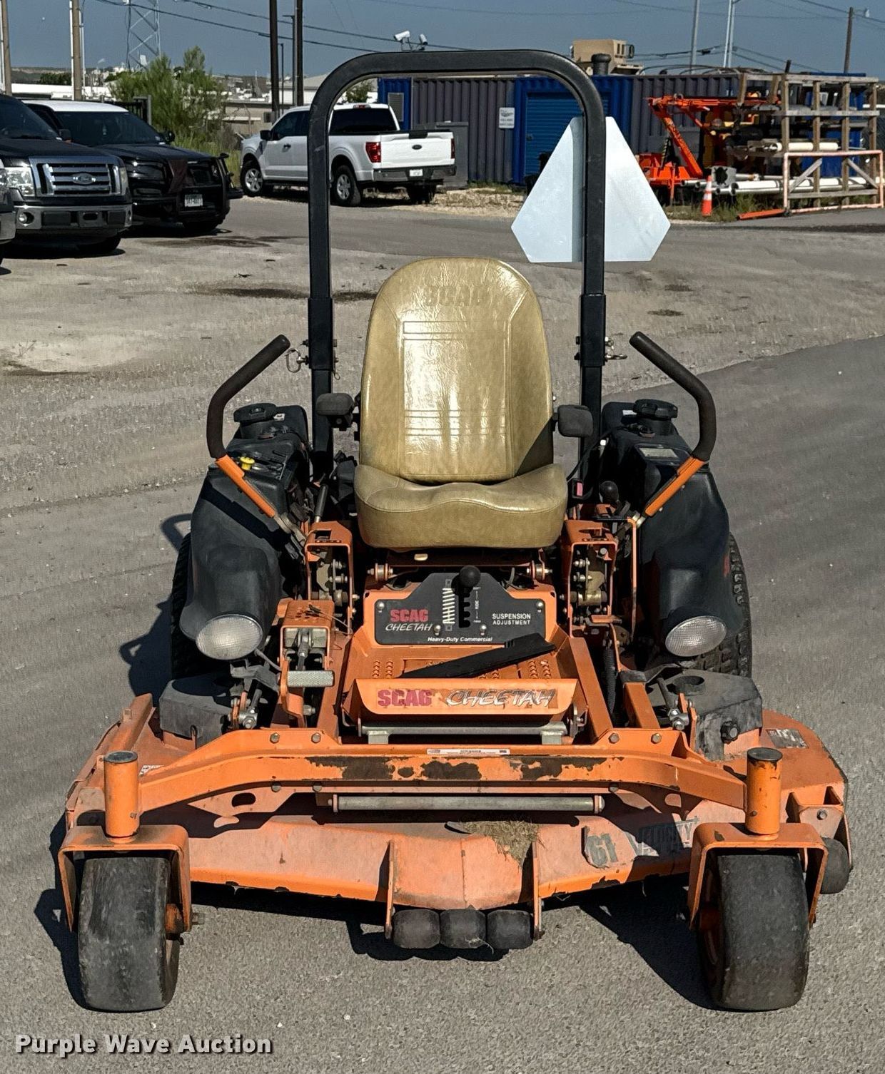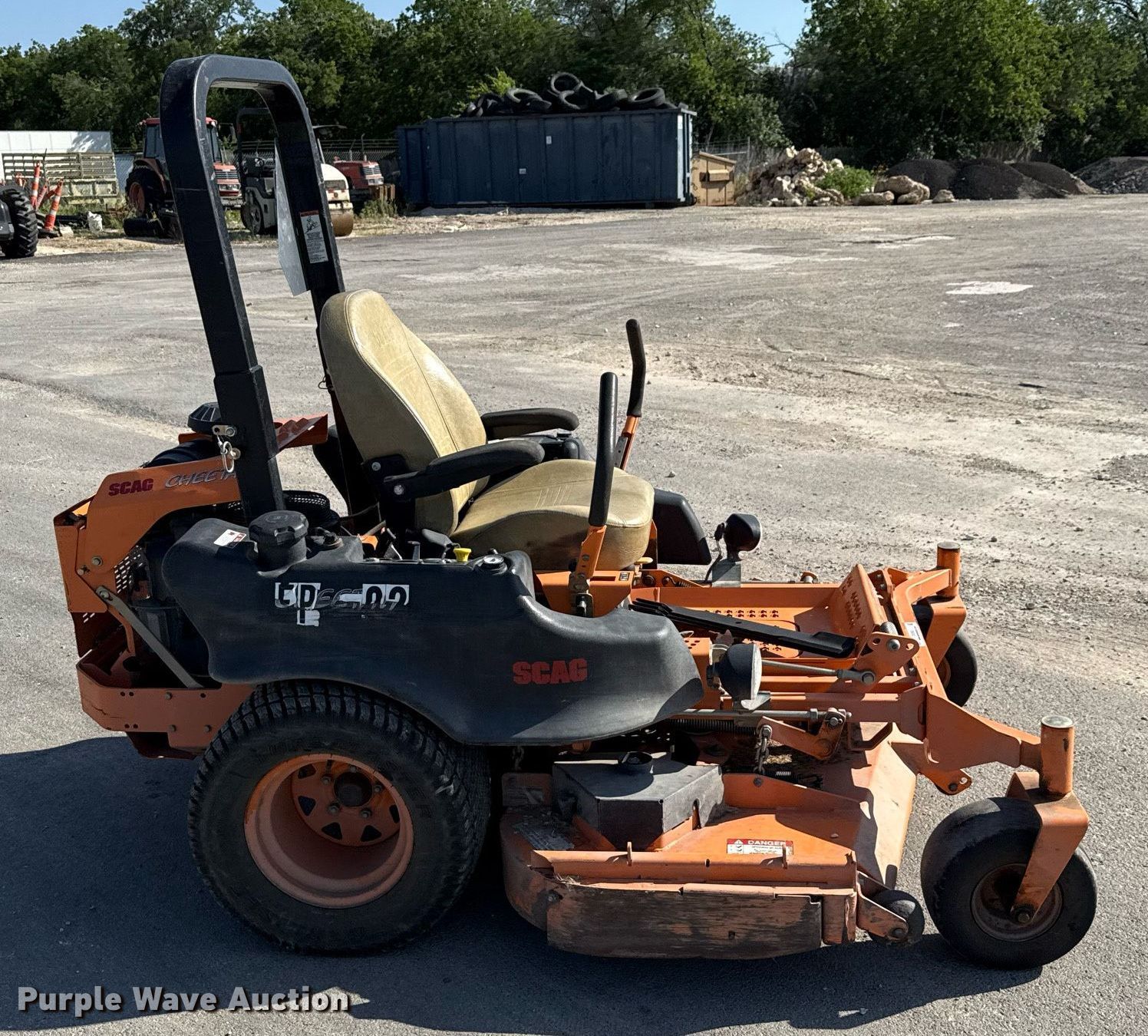 Purple Wave is selling a used Commercial Turf Mower in Texas. This item is a Scag Cheetah ZTR lawn mower with the following: Hours: 906 on meter, Cutting width: 61", Serial: K0301401, Unit #: FP02