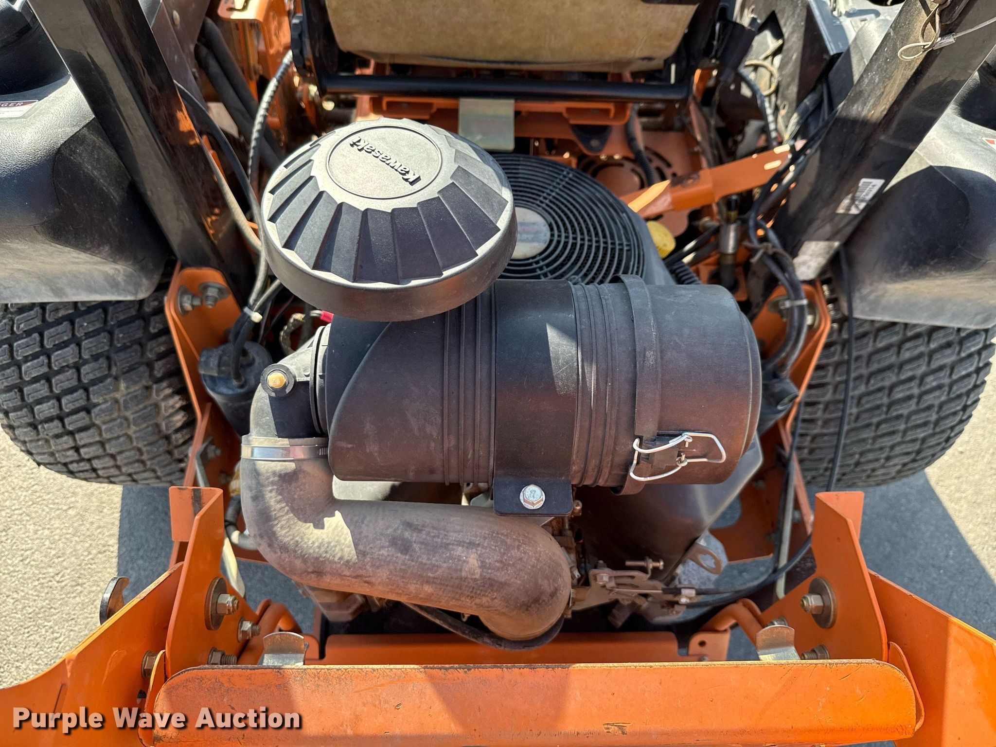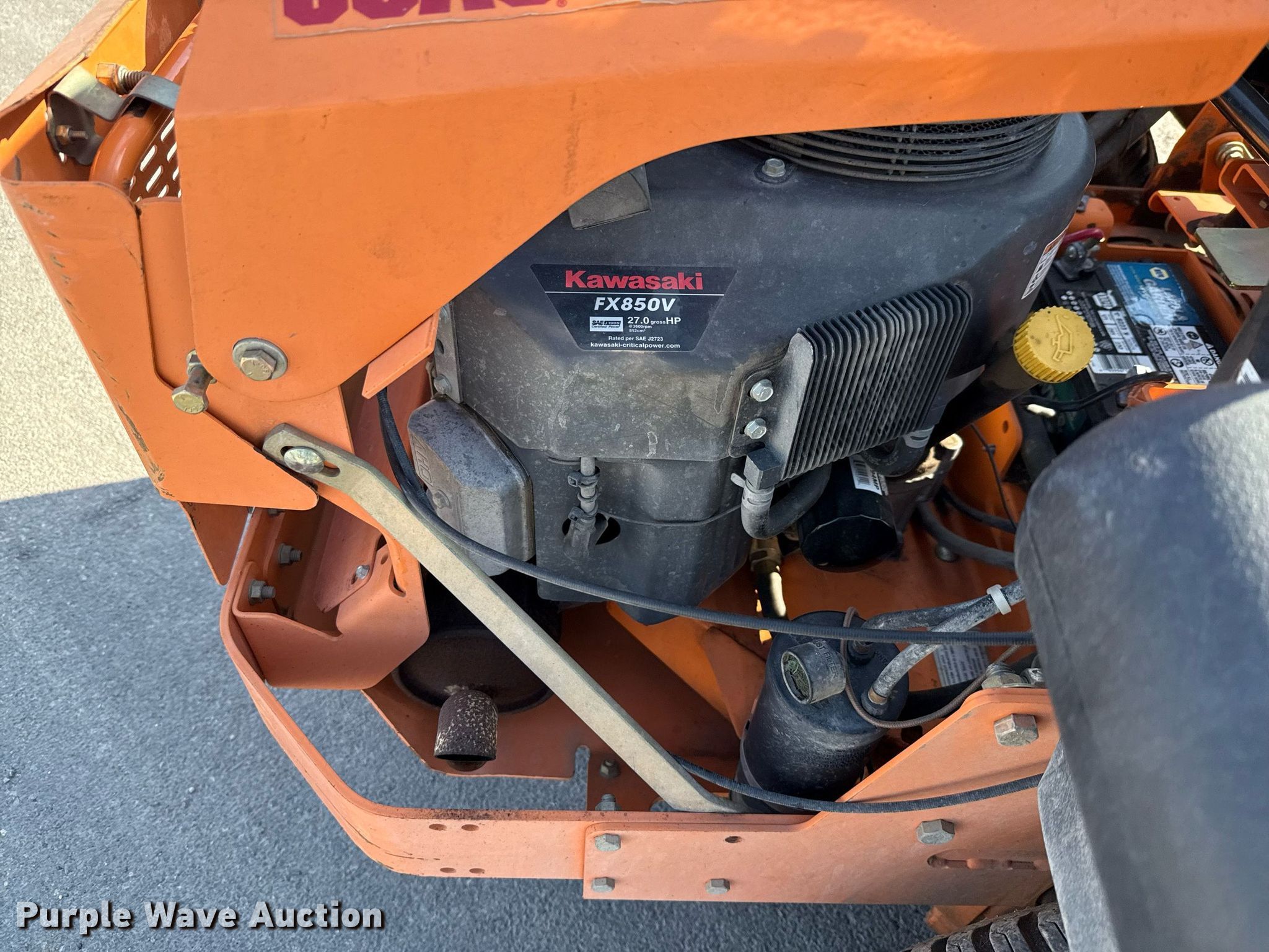 Scag Cheetah ZTR lawn mower. Hours: 906 on meter, Cutting width: 61", Serial: K0301401, Unit #: FP02. Engine Kawasaki FX850V, Displacement: 852 cc, Cylinders: 2, Fuel type: Gas, HP: 27. Transmission Hydrostatic. Operators station OROPS. Tires Front: 13x6.50-6/4.50, Rear: 24x12.00-12. Notes Dead battery, Unit starts but dies. City of New Braunfels. New Braunfels, TX 78130