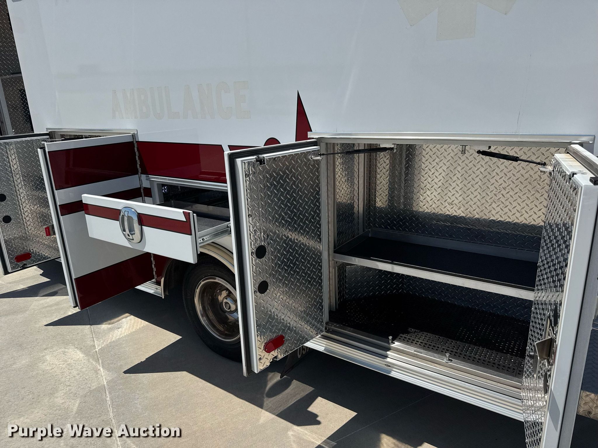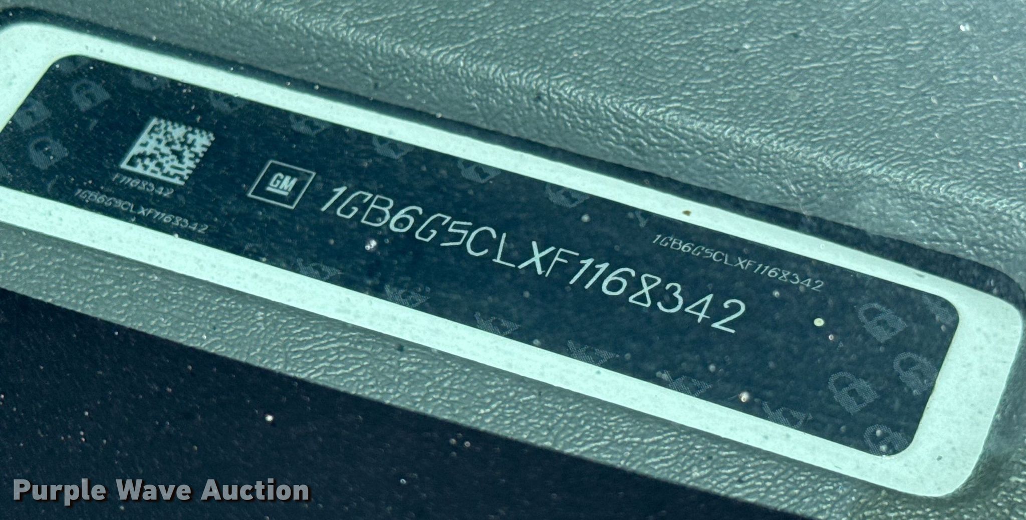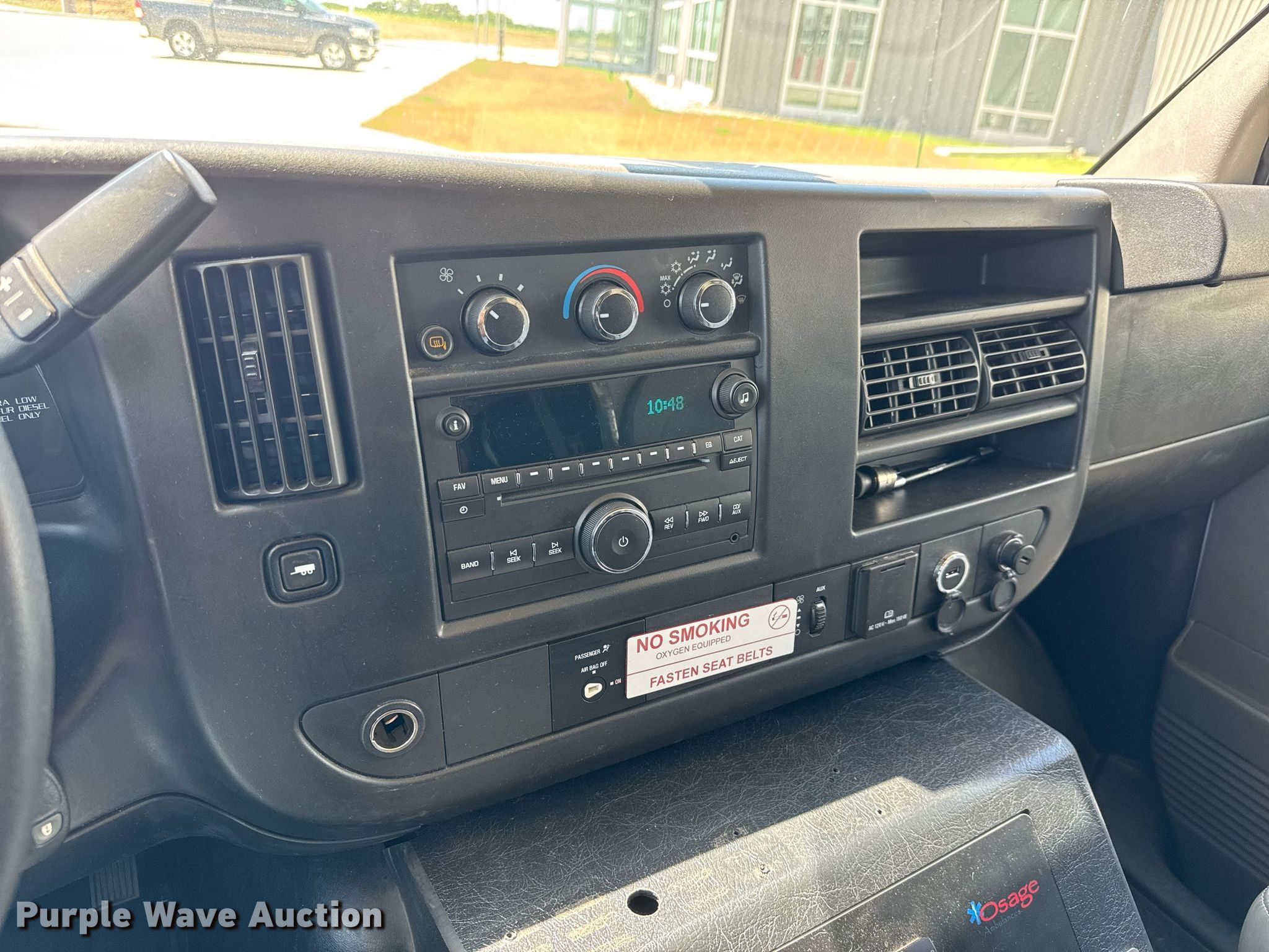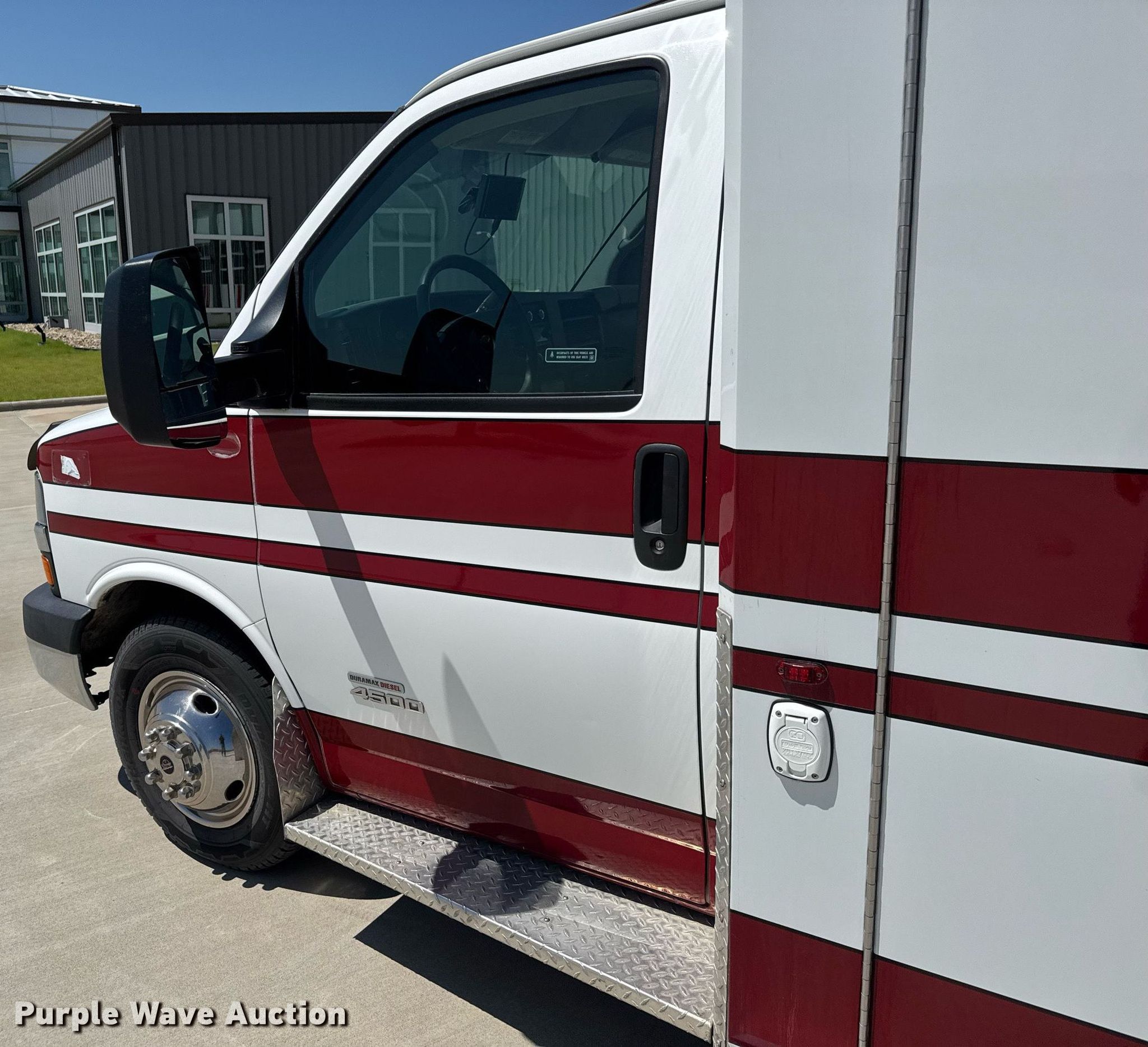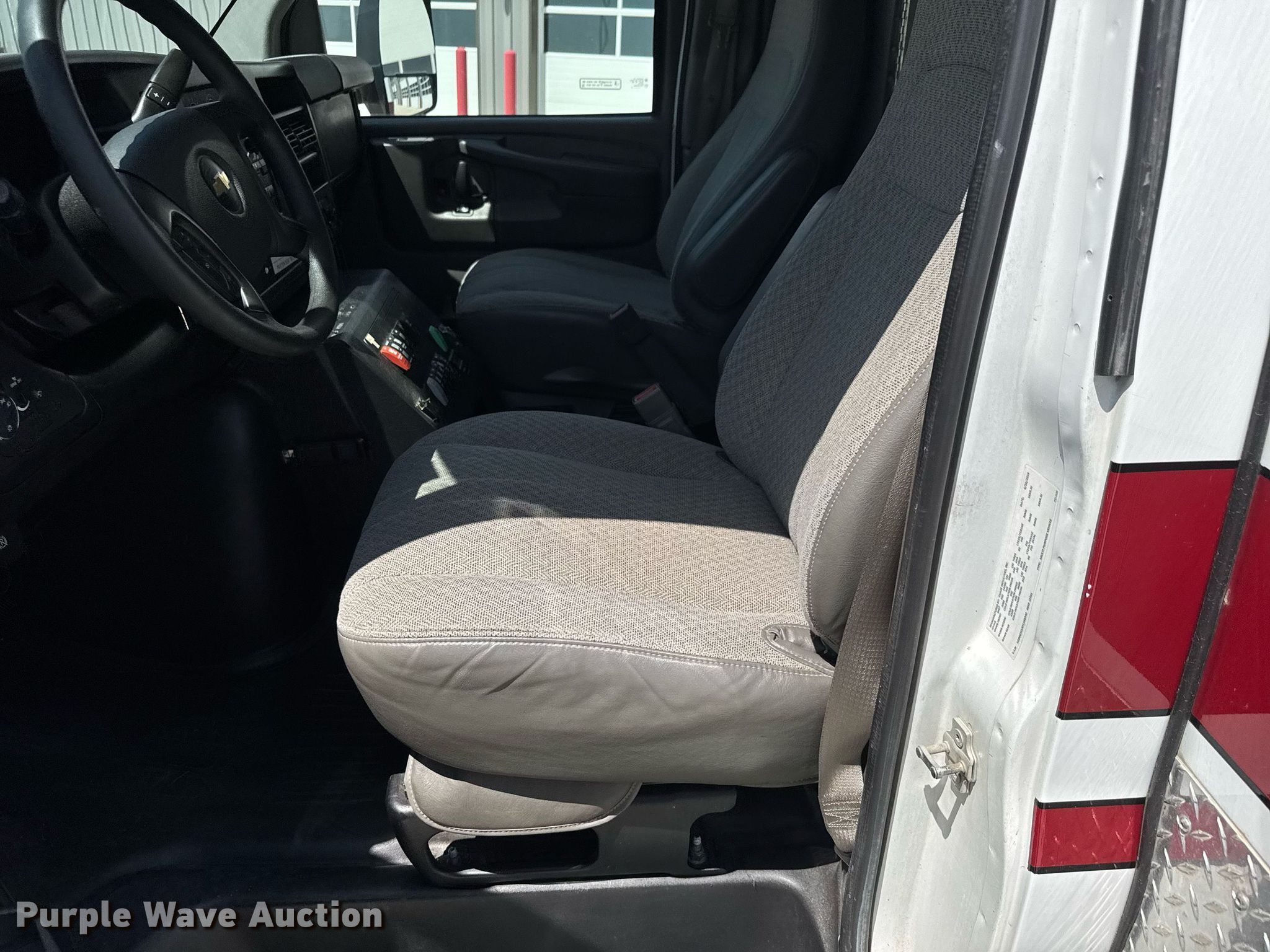 2015 Chevrolet Express G4500 ambulance. Miles: 110,323 on odometer, Hours: 5,068 on meter, VIN: 1GB6G5CLXF1168342. Engine Displacement: 6.6L, Cylinders: 8, Fuel type: Diesel. Transmission Automatic. Chassis Axles: Single, Suspension: Spring, Brakes: Hydraulic, GVWR: 14,200 lbs. Interior AC, Heat, Heated mirrors, Power windows, Power locks, Cruise control, Backup camera, Auxiliary controls. Features Ambulance body Osage Industries, Oxygen hookups. Tires Size: 225/75R16. Notes Dash warning indicator: Check engine, Windshield chipped or cracked, Turbo issue, overboost. Kansas title. Title distribution may be delayed up to 14 days from verification of funds. Pratt, KS 67124