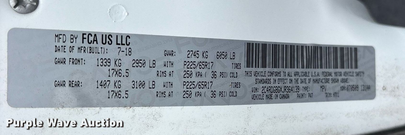 Purple Wave is selling a used Passenger Vehicle in Oklahoma. This item is a 2018 Dodge Grand Caravan handicap accessible van with the following: Miles: 116,354 on odometer, VIN: 2C4RDGBGXJR364139, Unit #: 64139