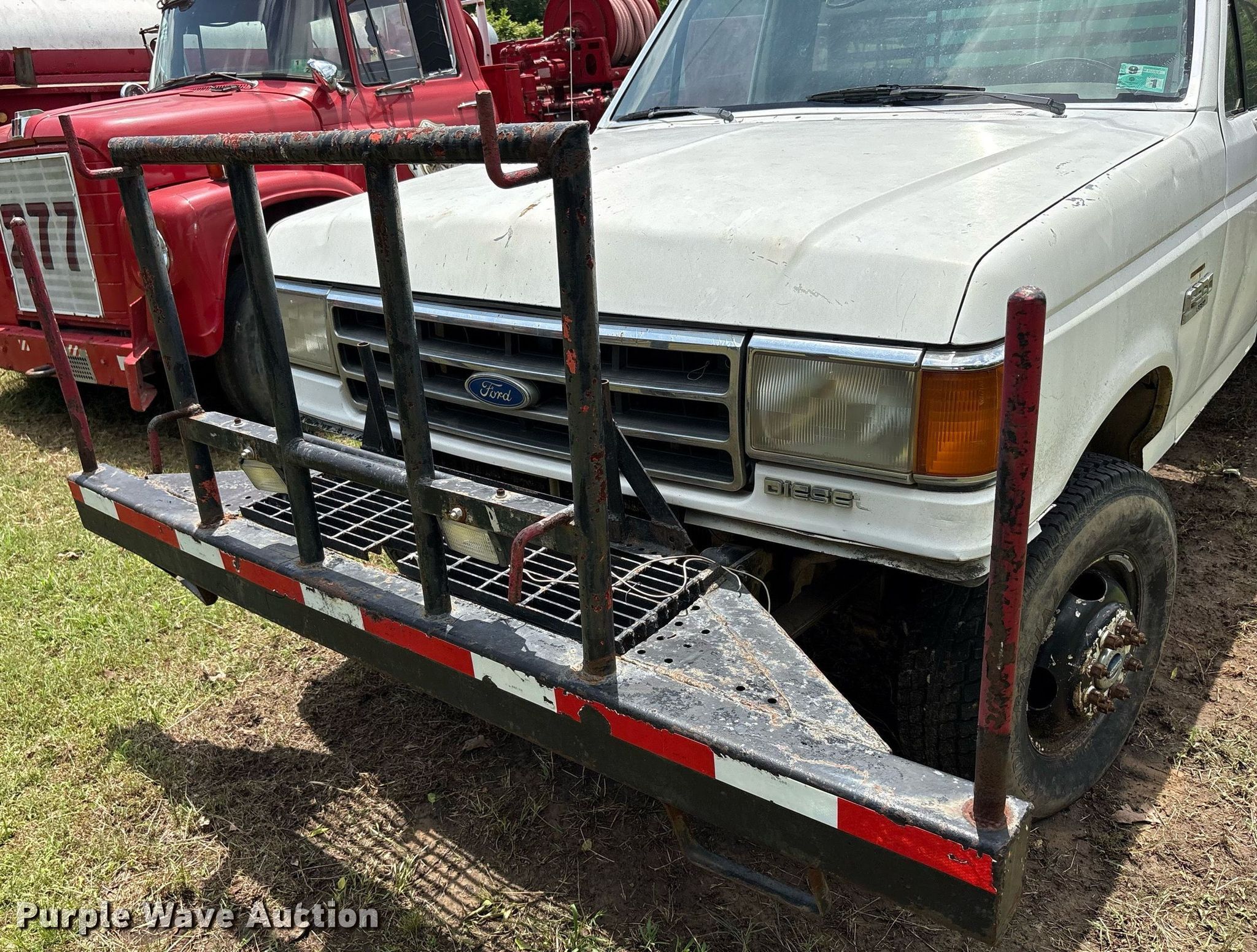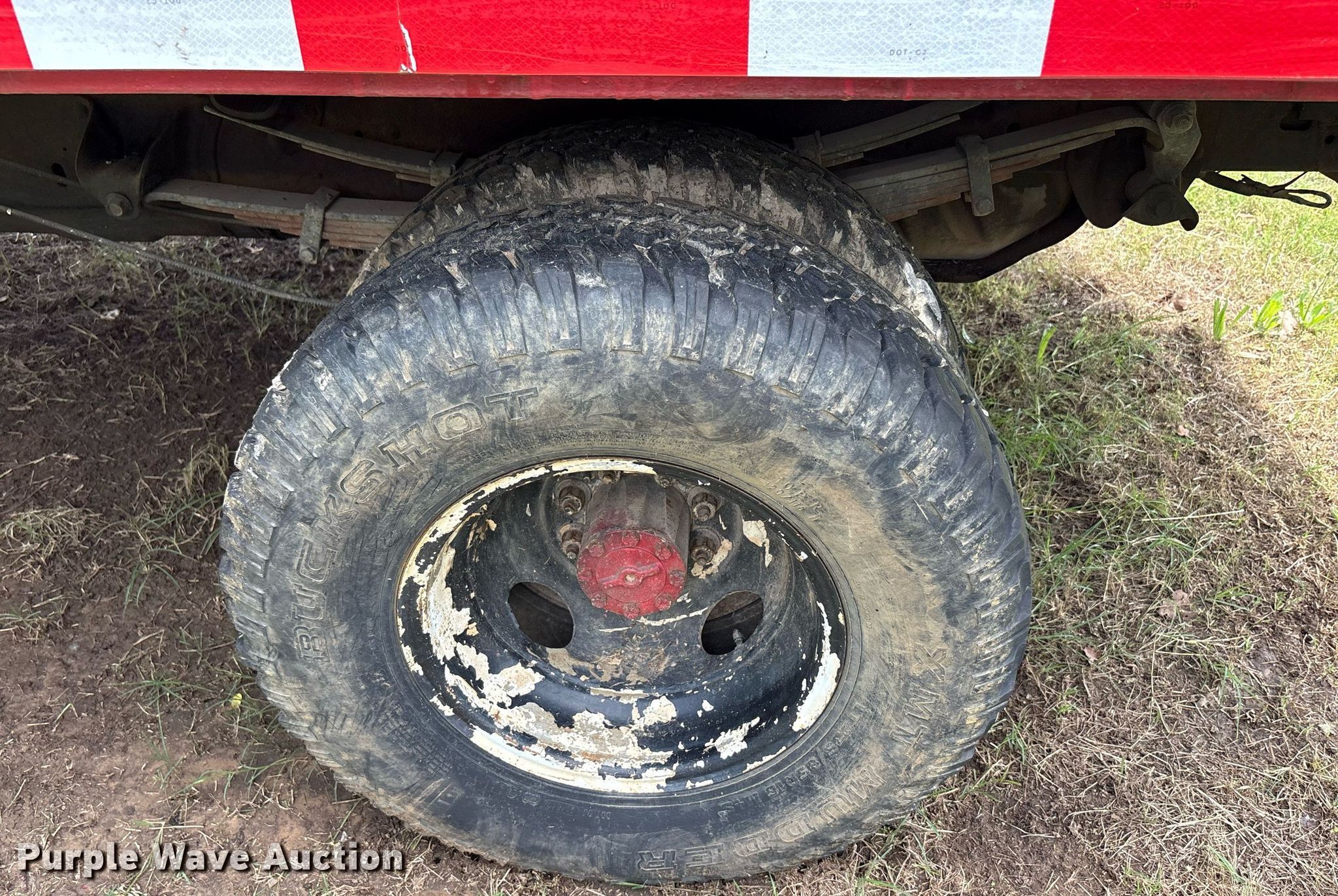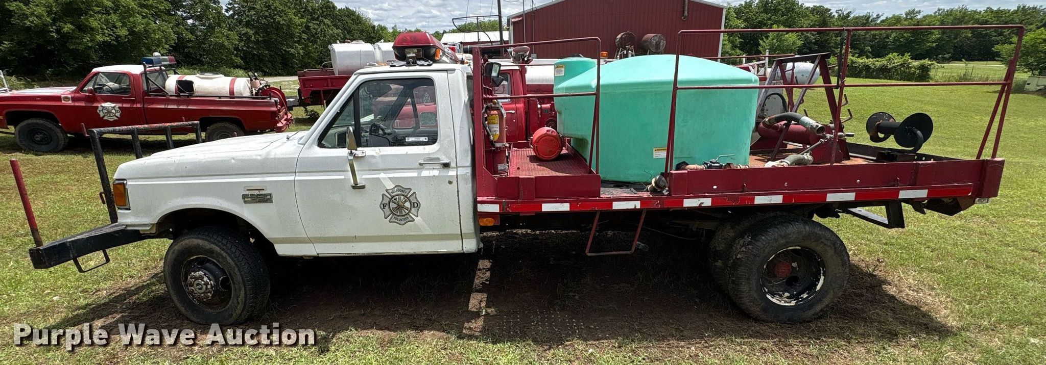 1990 Ford F350 Lariat brush fire truck. Miles: 25,051 on odometer, VIN: 1FDKF38M7LNA18482. Engine Displacement: 7.3L V8 OHV, Cylinders: 8, Fuel type: Diesel. Transmission Manual, Speed: 5, Four wheel drive. Interior AC, Heat, Cruise control, Auxiliary controls. Features Flatbed 11' 1" L, Tank Capacity: 400 gallons, Hose reel, Accumulator valves. Tires Size: 235/85R16. Notes Non-operational engine, blown , Non-operational unit Unit must be towed or hauled. Oklahoma title. Nelagoney Fire Department. Pawhuska, OK 74056