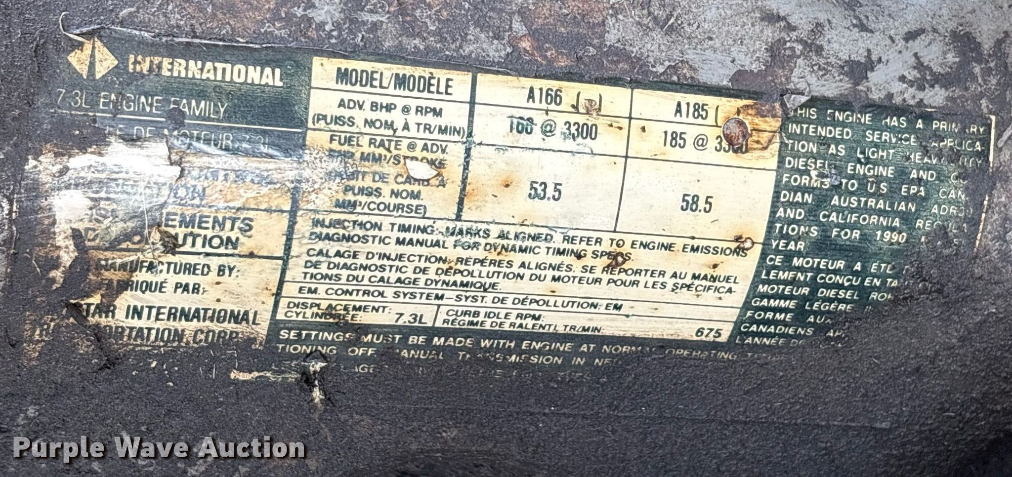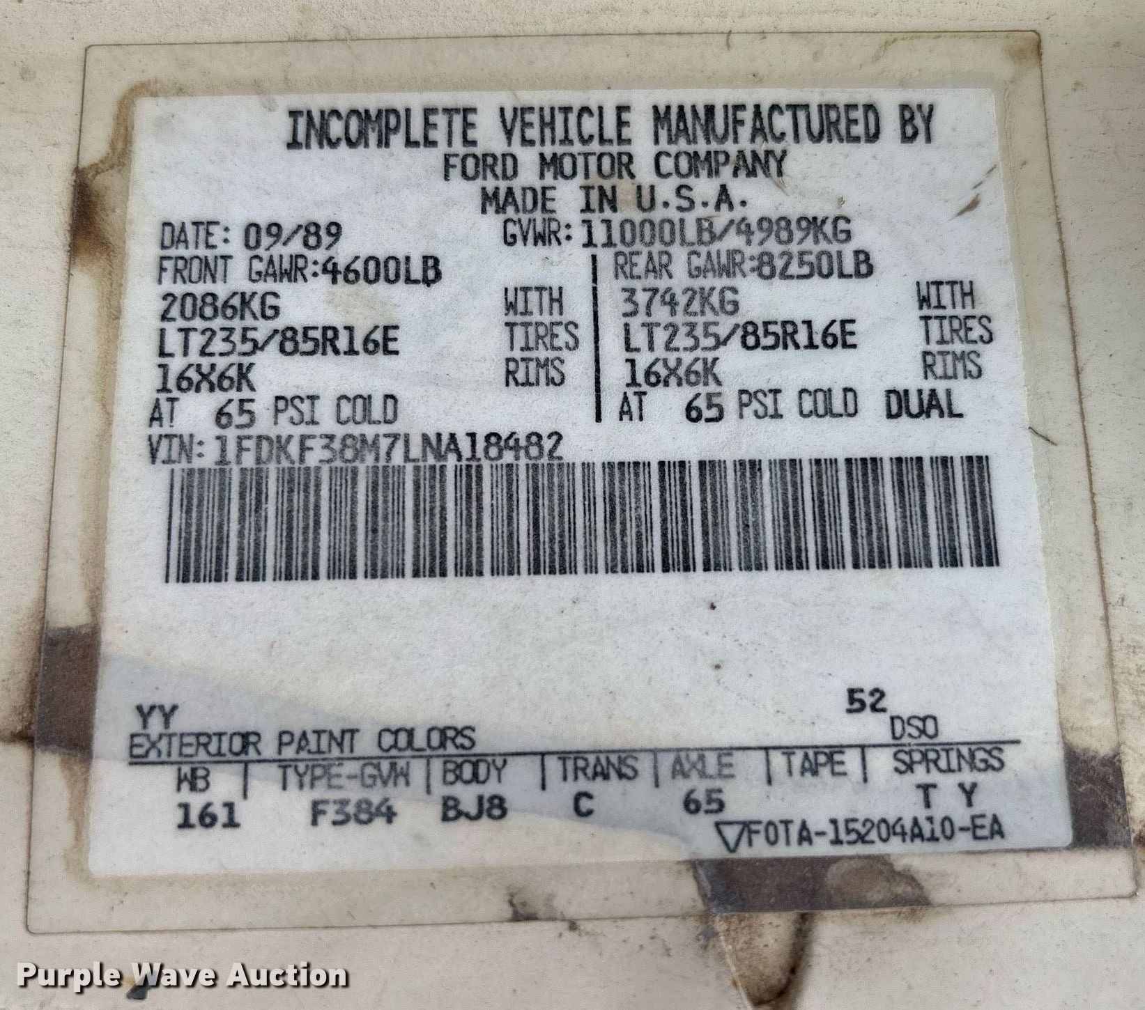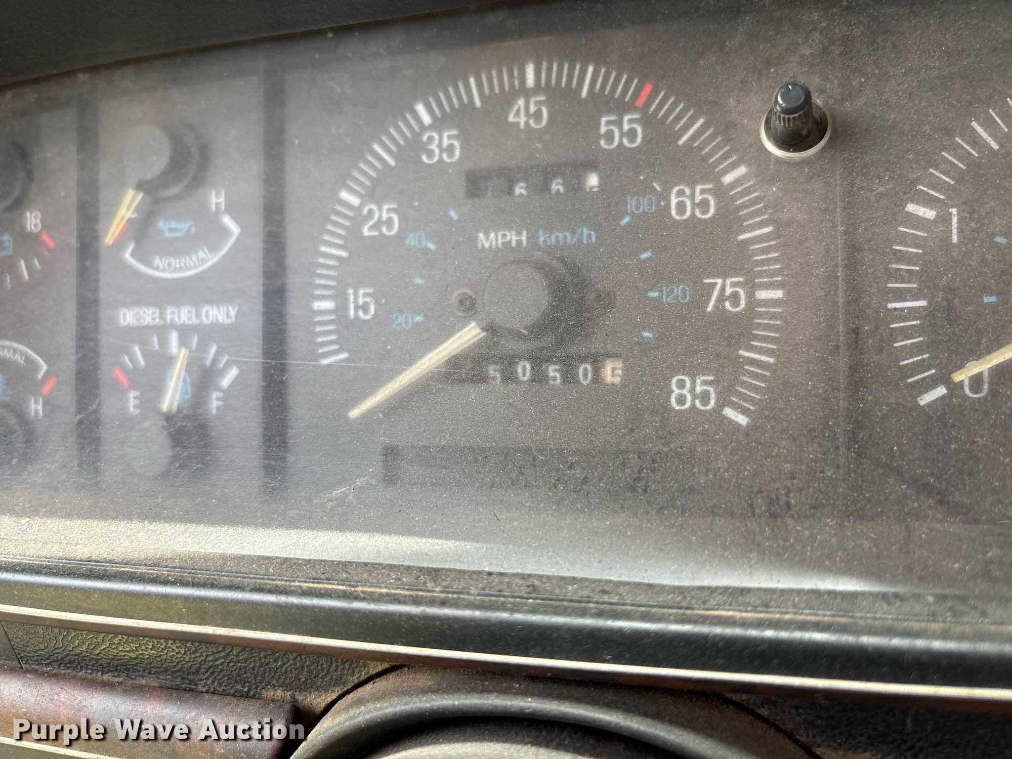 1990 Ford F350 Lariat brush fire truck. Miles: 25,051 on odometer, VIN: 1FDKF38M7LNA18482. Engine Displacement: 7.3L V8 OHV, Cylinders: 8, Fuel type: Diesel. Transmission Manual, Speed: 5, Four wheel drive. Interior AC, Heat, Cruise control, Auxiliary controls. Features Flatbed 11' 1" L, Tank Capacity: 400 gallons, Hose reel, Accumulator valves. Tires Size: 235/85R16. Notes Non-operational engine, blown , Non-operational unit Unit must be towed or hauled. Oklahoma title. Nelagoney Fire Department. Pawhuska, OK 74056