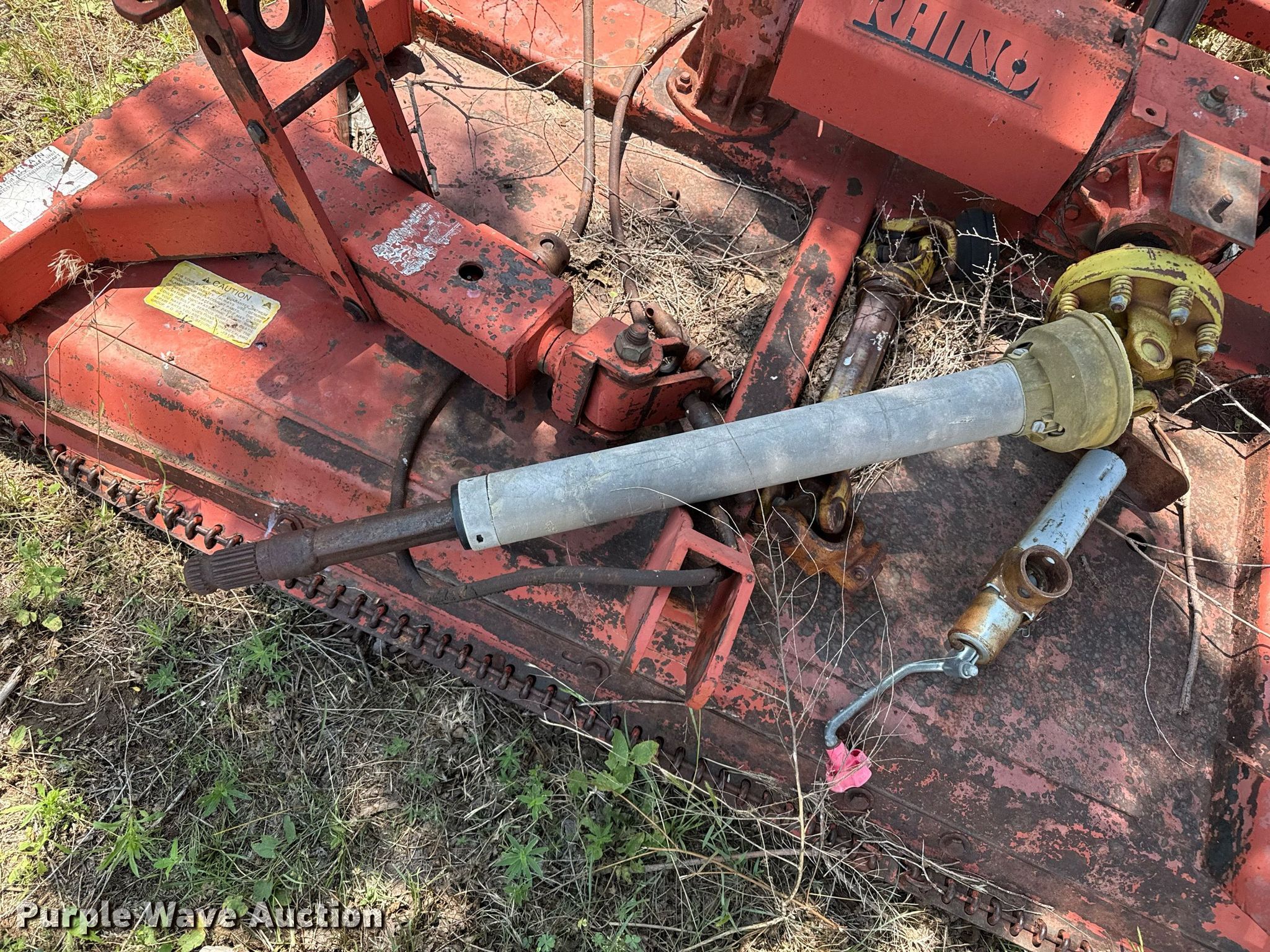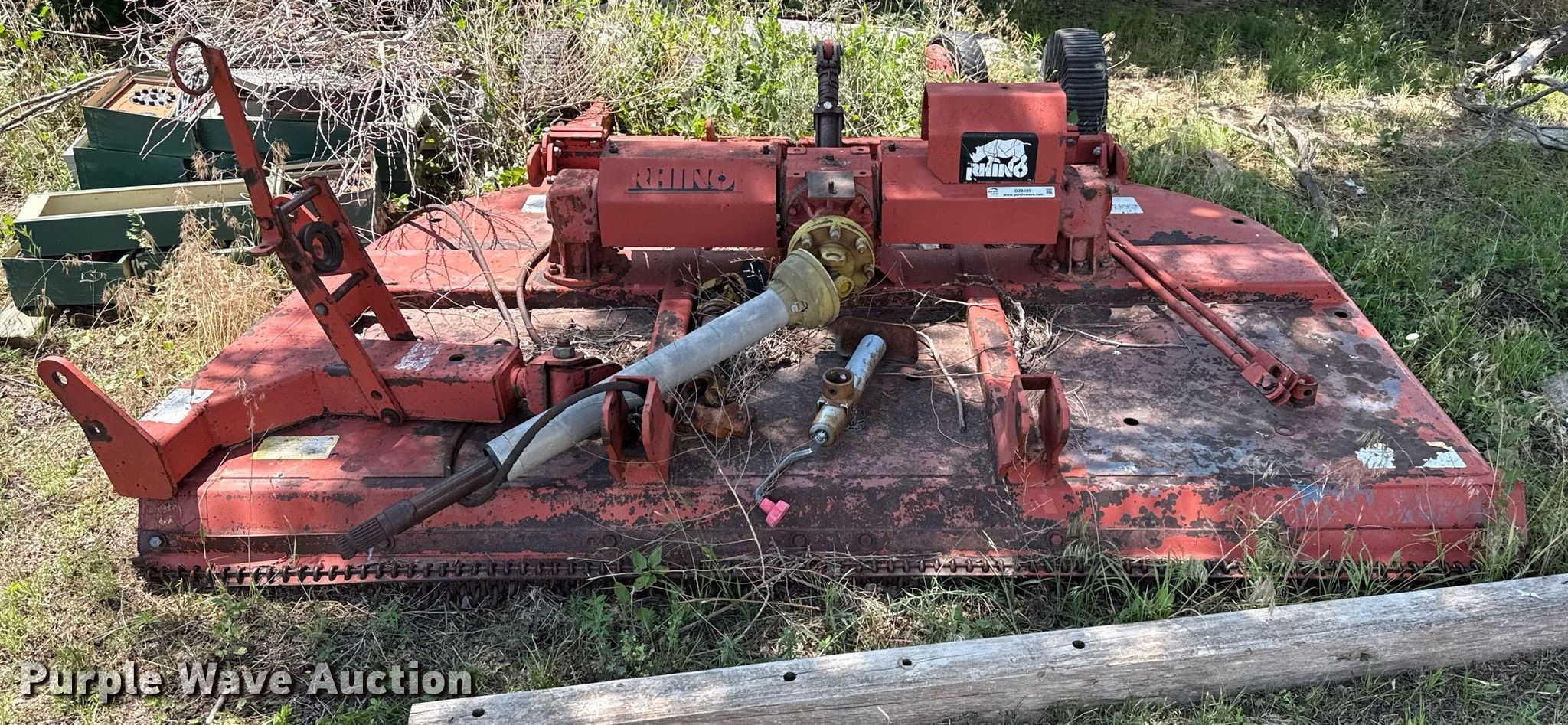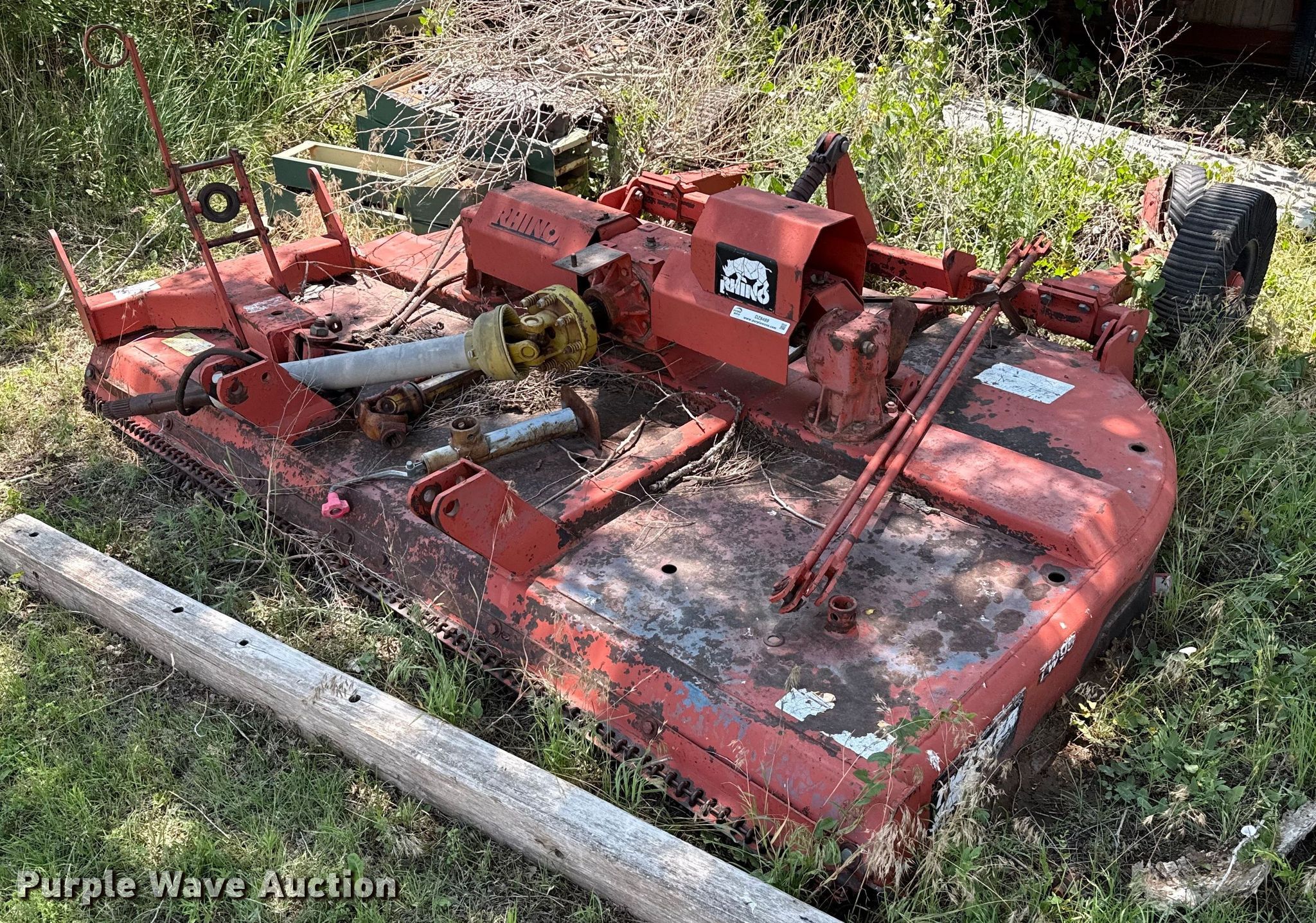 Purple Wave is selling a used Mower, Cutter, Shredder in Oklahoma. This item is a Rhino rotary mower with the following: Width: 8', Hydraulic lift, Hitch: Three point