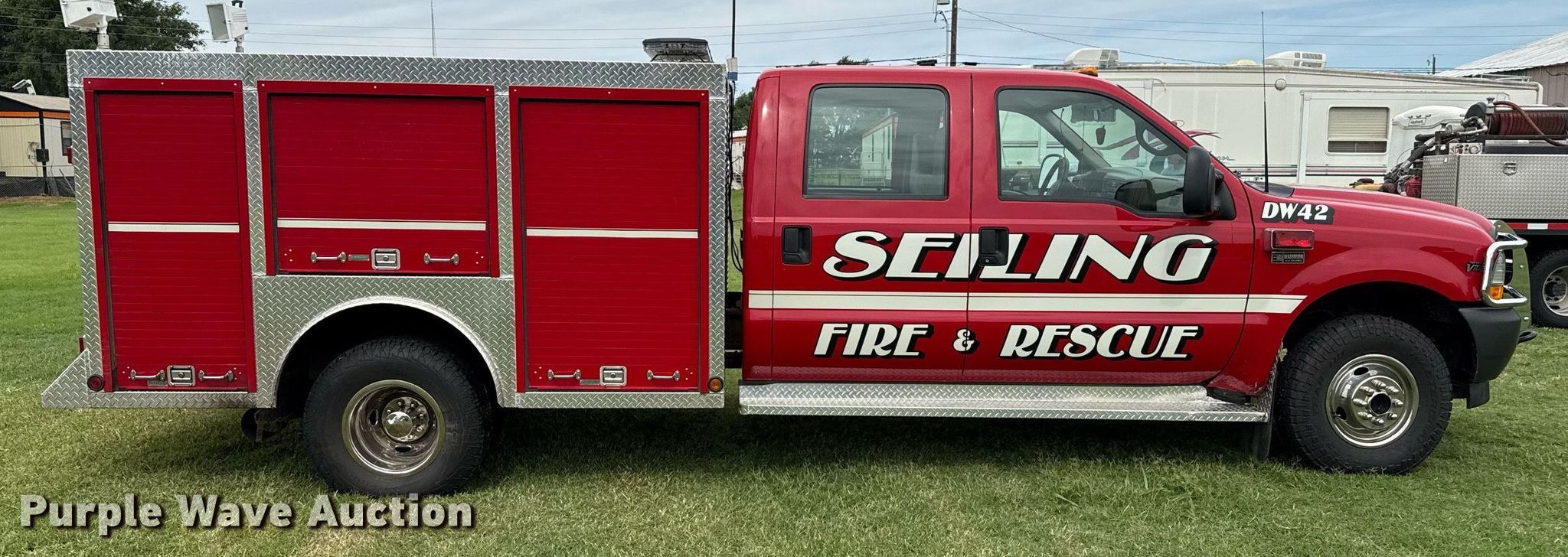 Purple Wave is selling a used Fire Truck or Emergency Vehicle in Oklahoma. This item is a 2002 Ford F350 rescue vehicle with the following: Miles: 13,494 on odometer, VIN: 1FDWW37S42EA31898