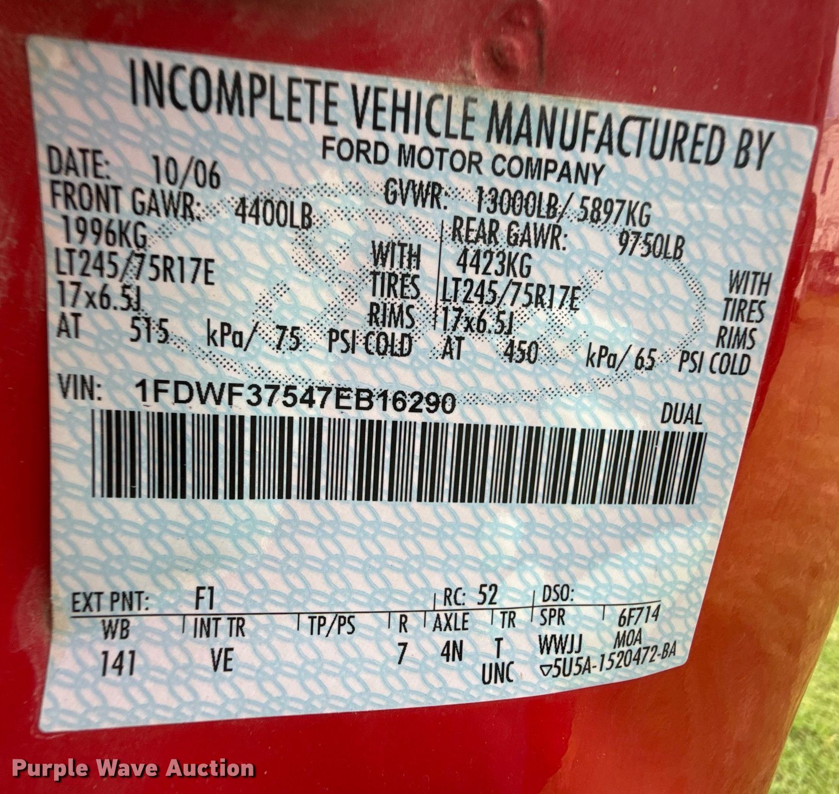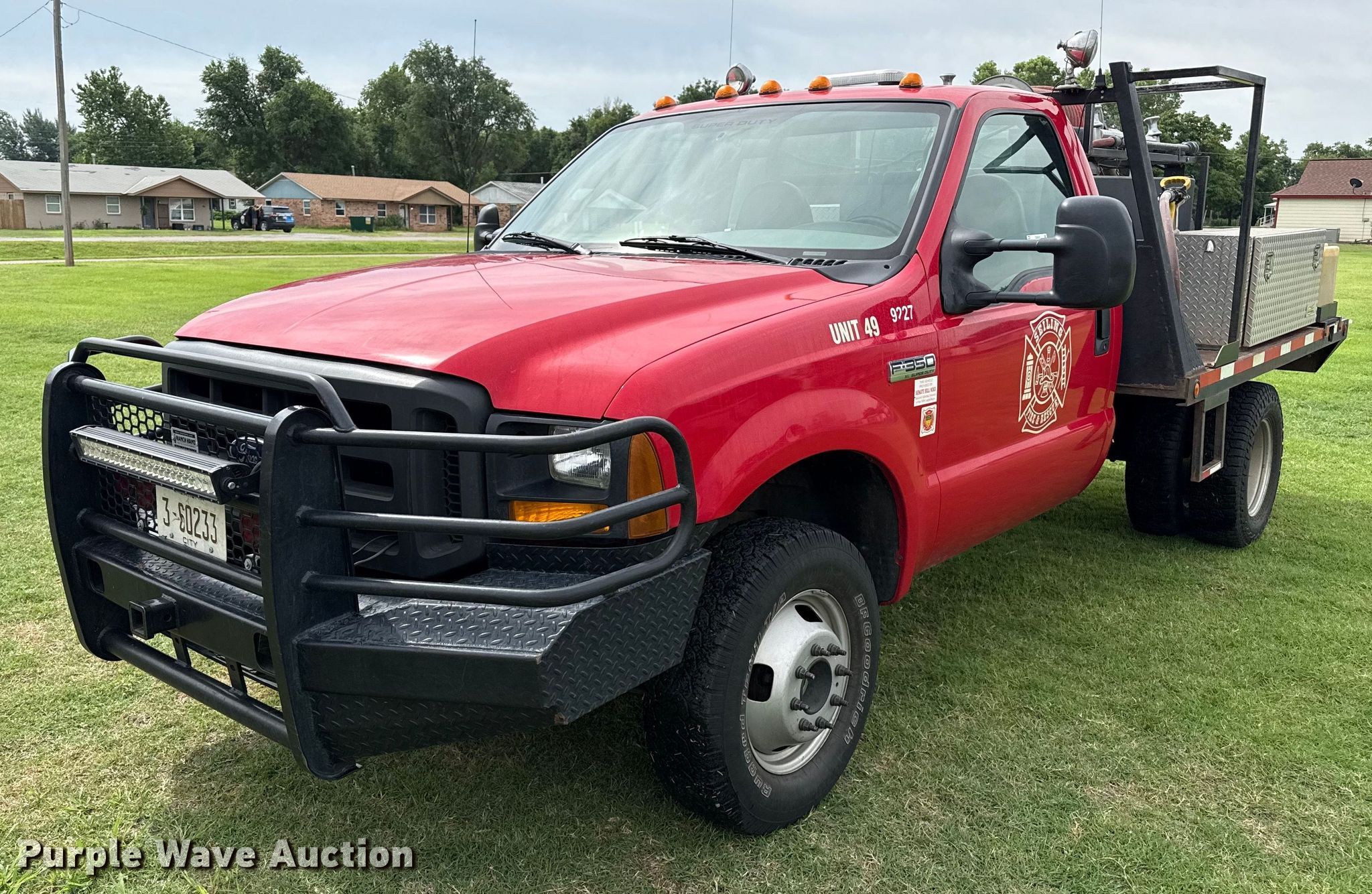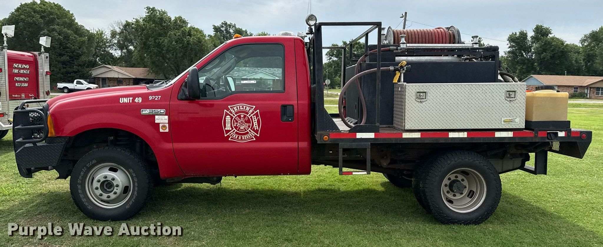 2007 Ford F350 Super Duty XL brush fire truck. Miles: 24,473 on odometer, VIN: 1FDWF37547EB16290. Engine Displacement: 5.4L, Cylinders: 8, Fuel type: Gas. Transmission Automatic. Chassis Four wheel drive, Axles: Single, Suspension: Spring, Brakes: Hydraulic, GVWR: 13,000 lbs, Wheelbase: 141". Interior AC, Heat, Cruise control, Auxiliary controls. Features Fire truck body Tank, Pump, PA/ siren controls. Tires Size: 245/75R17. Notes Dash warning indicator: ABS, Rear tire flat. Oklahoma title. Title distribution may be delayed up to 30 days from verification of funds. Town of Seiling. Seiling, OK 73663