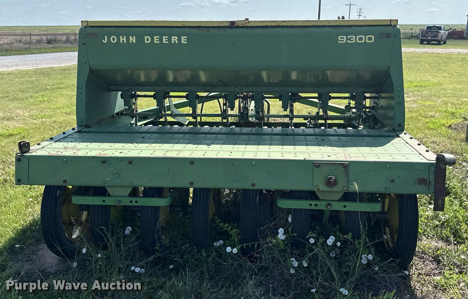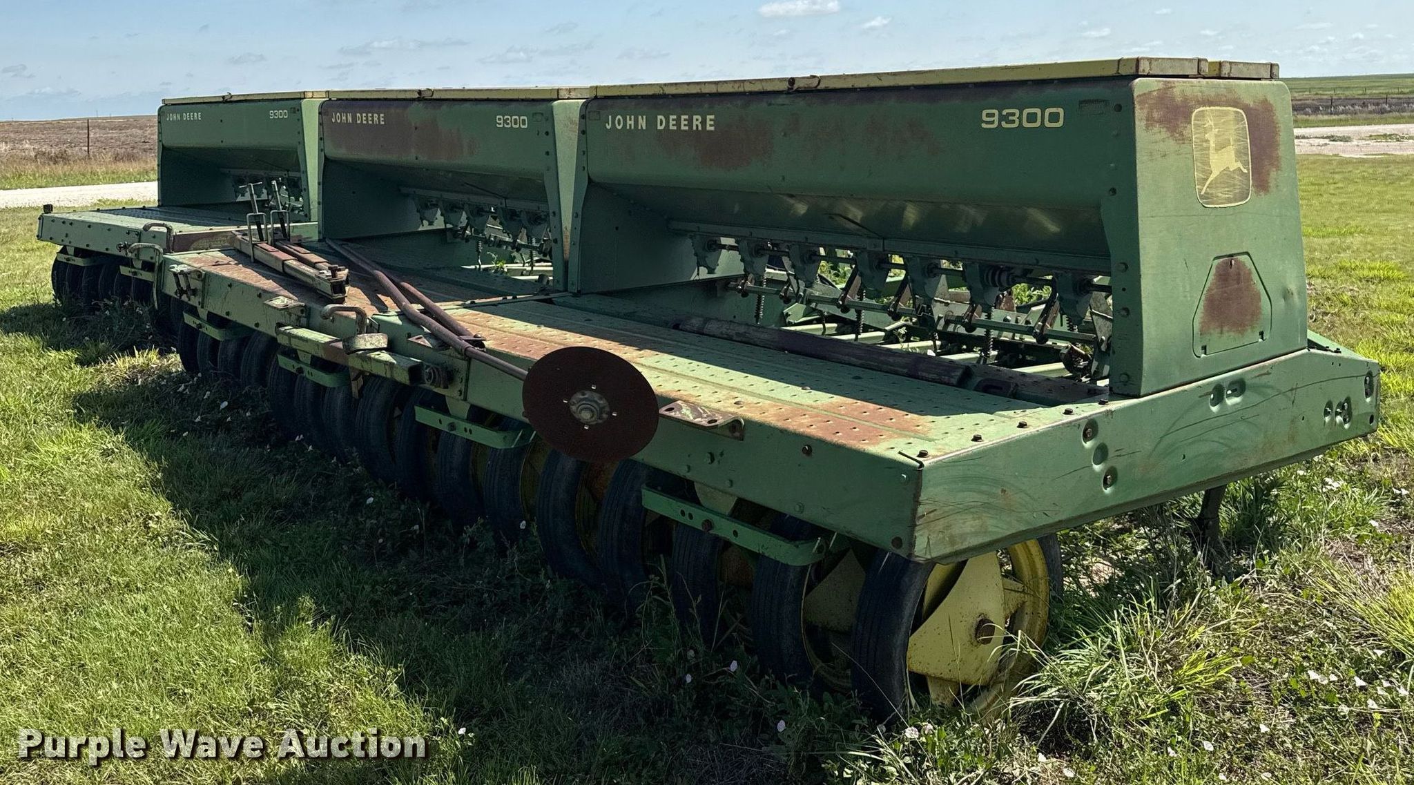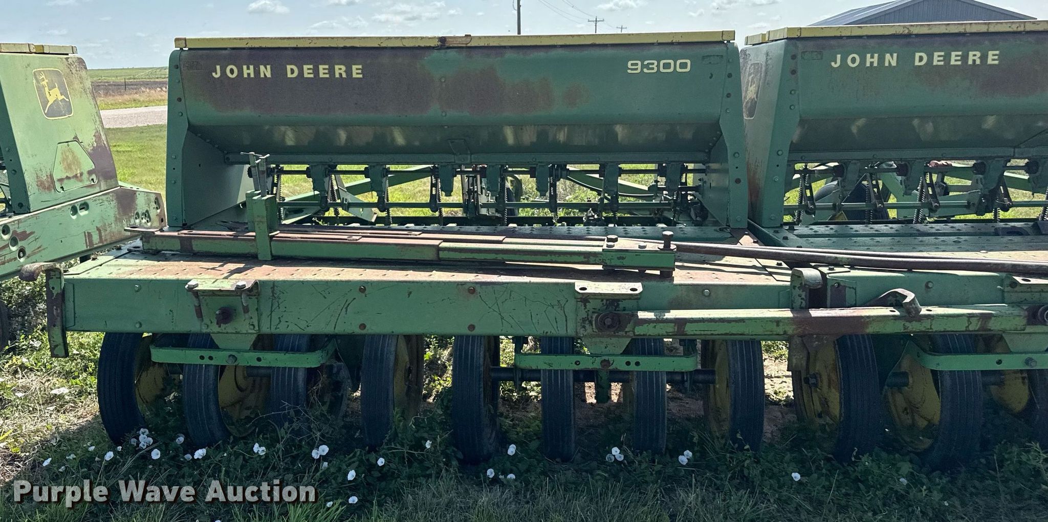 Purple Wave is selling a used Grain Drill or Seeder in Texas. This item is a John Deere 9300 grain drill with the following: Width: 20', Row units: 24, Row spacing: 10"