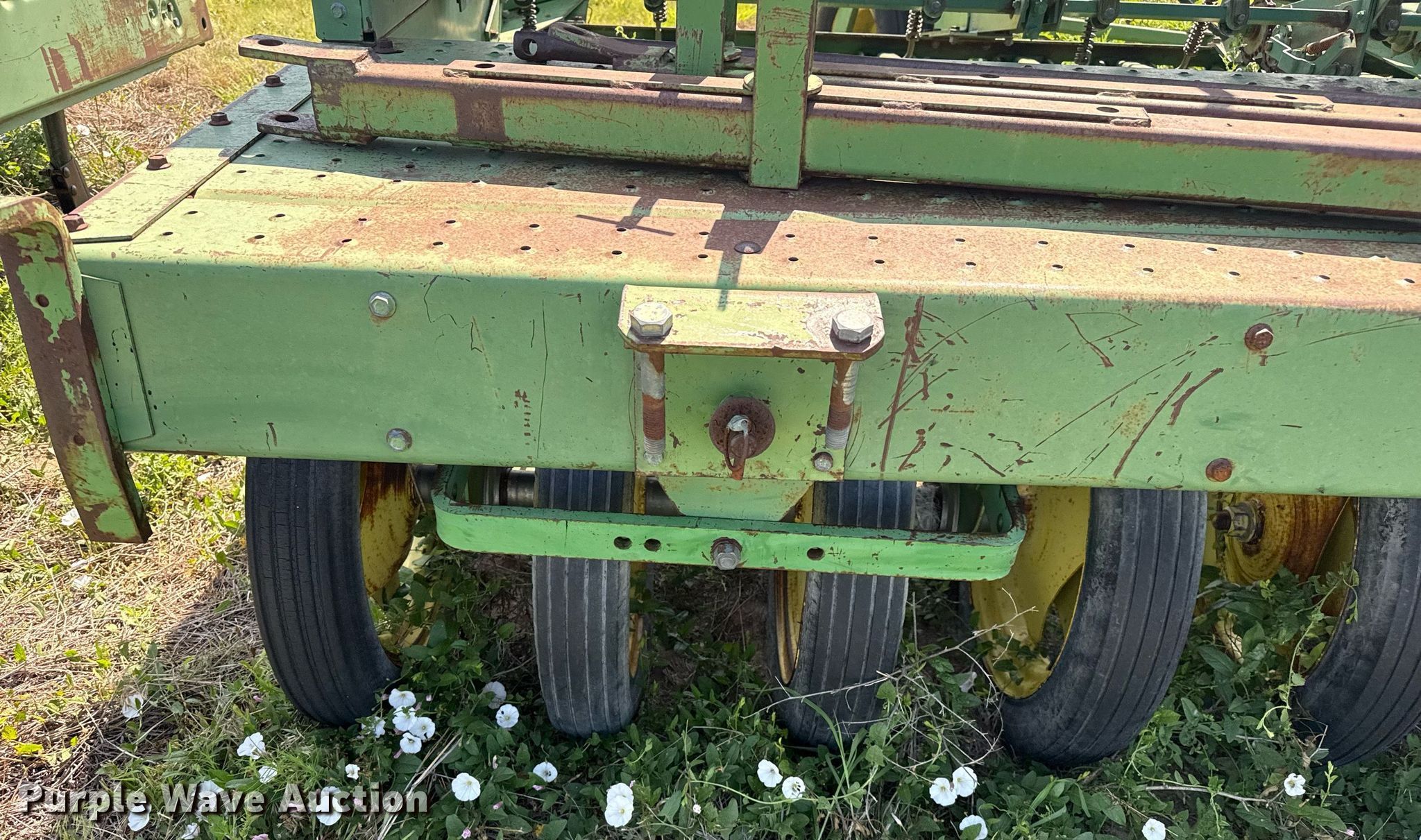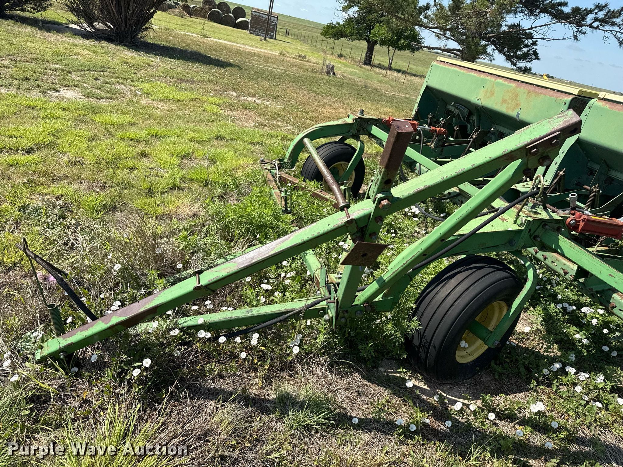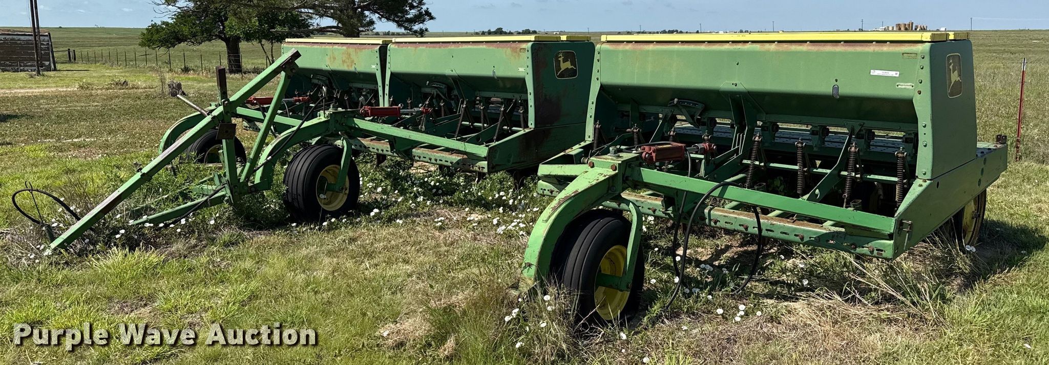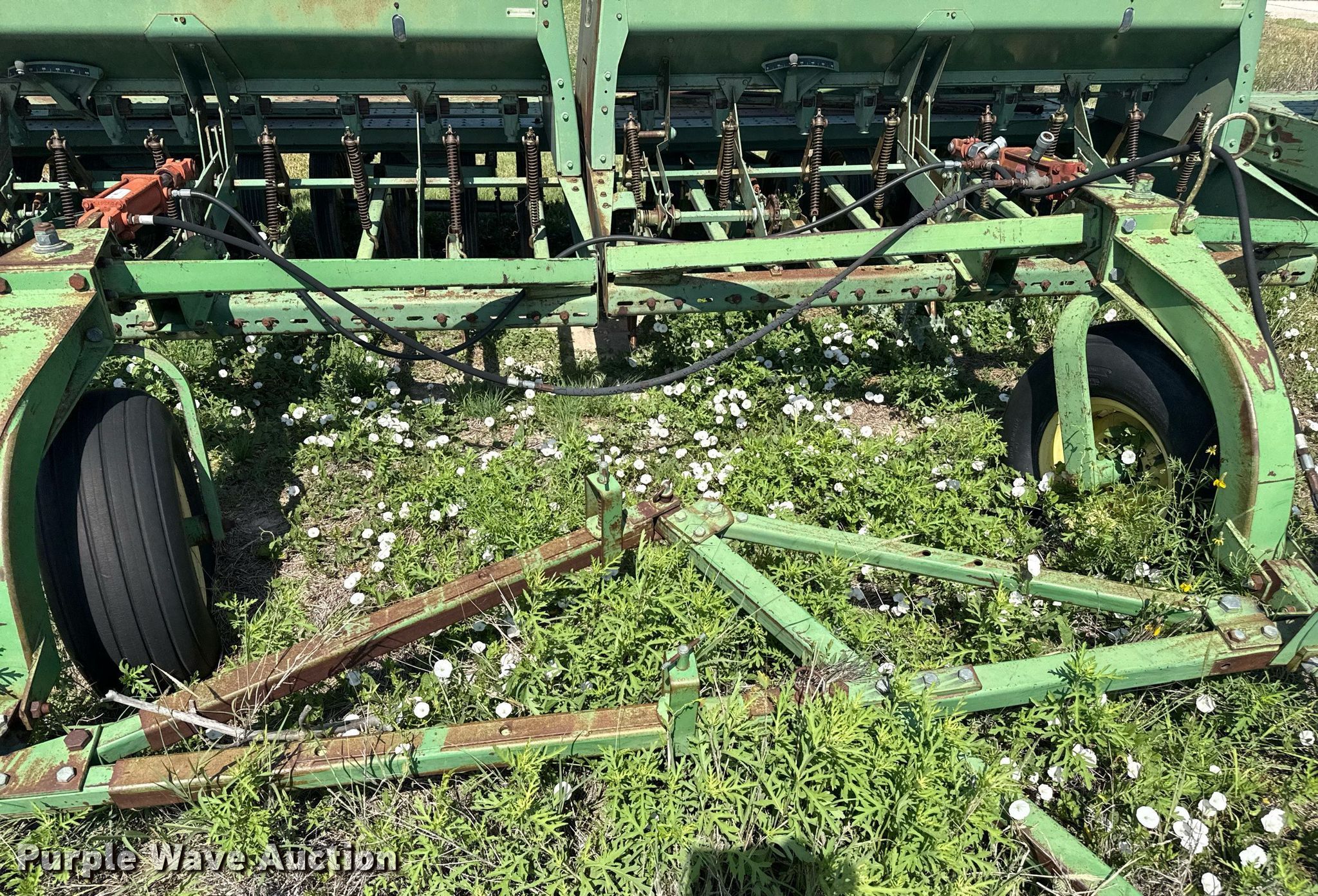 Purple Wave is selling a used Grain Drill or Seeder in Texas. This item is a John Deere 9300 grain drill with the following: Width: 20', Row units: 24, Row spacing: 10"